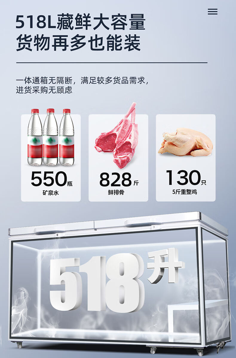 Iosn German imported quality high-end freezer commercial freezer large capacity refrigerated freezing horizontal single temperature refrigerator fresh-keeping freezer deep-freezing high-end model丨1.68 meters丨-45 to 518 upgrade