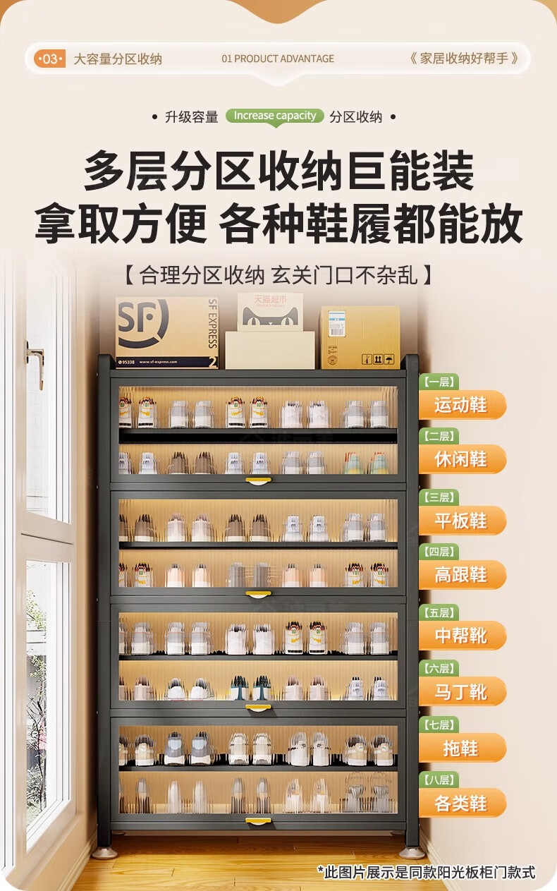 Jiangwei all-steel shoe cabinet entrance door entry cabinet multi-layer home storage cabinet one-piece wall-closed entrance cabinet 42cm deeper gray 11 layers long 100 high 184cm