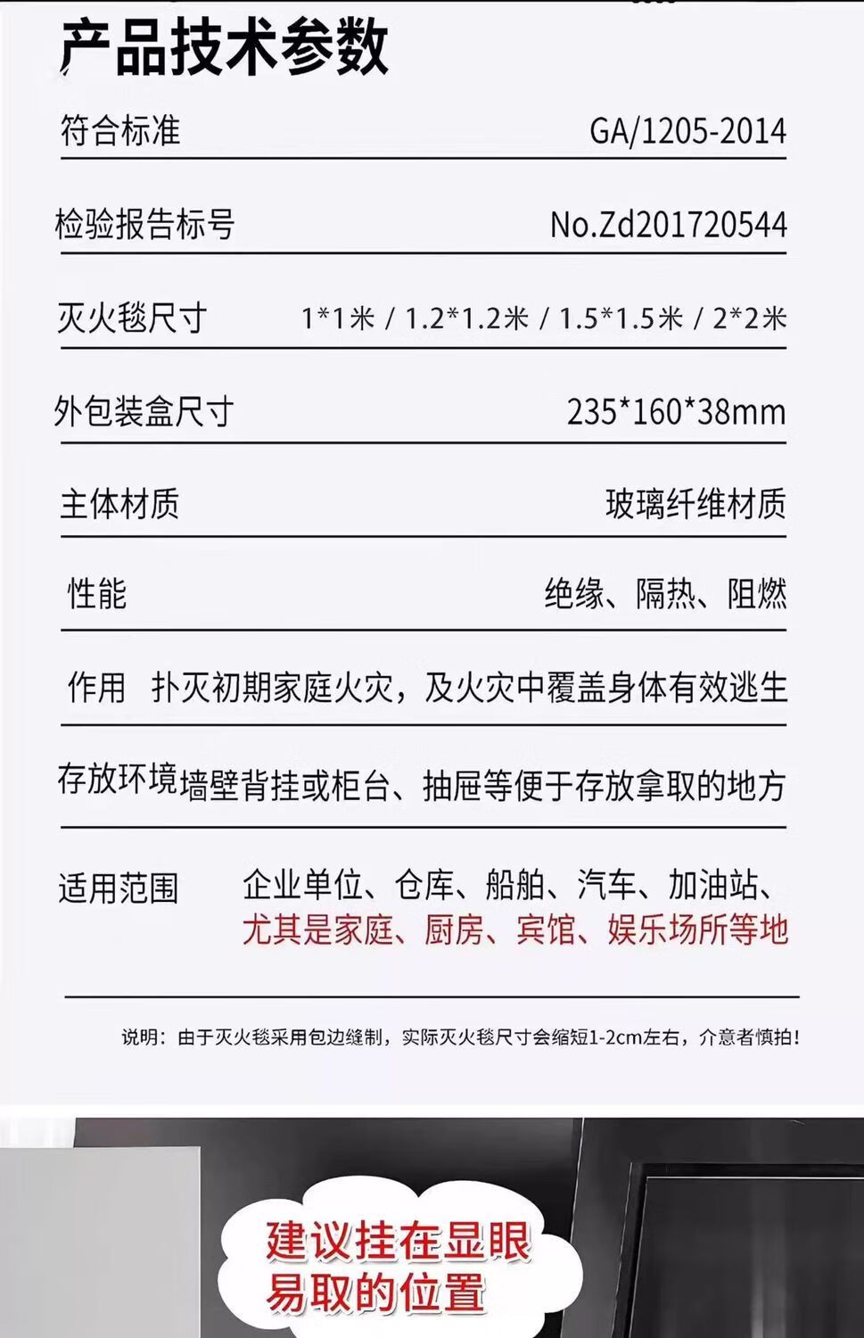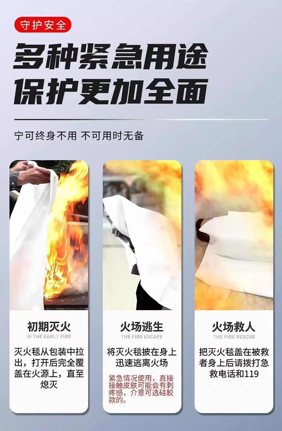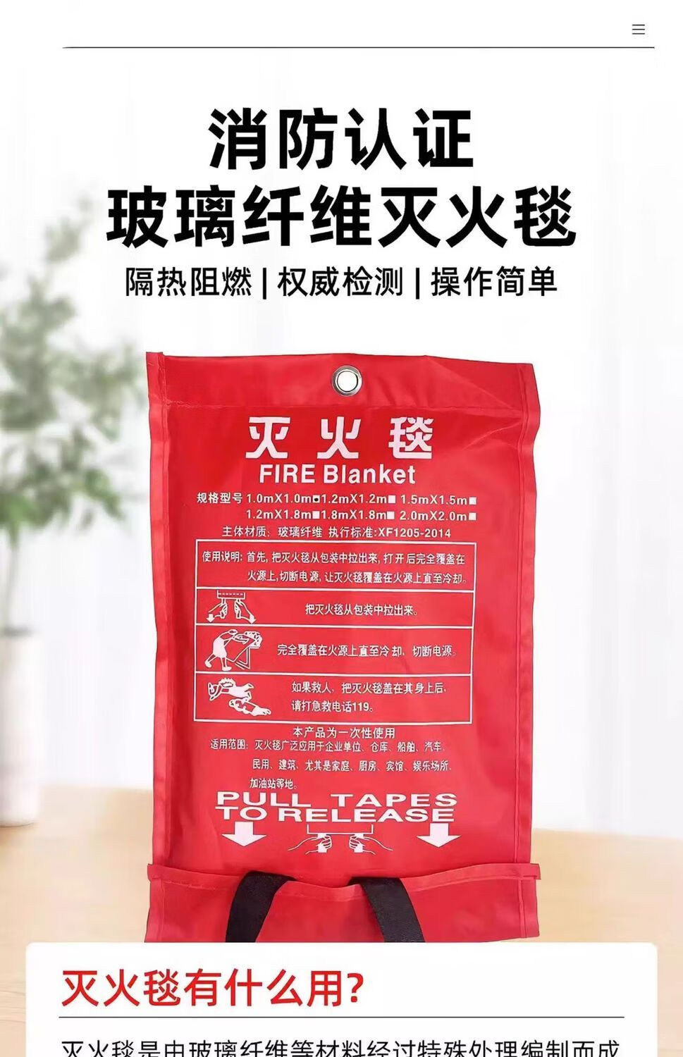 Fire blanket, fire-fighting special national standard certified commercial kitchen escape flame retardant equipment mask glass 100*100CM high quality thickened