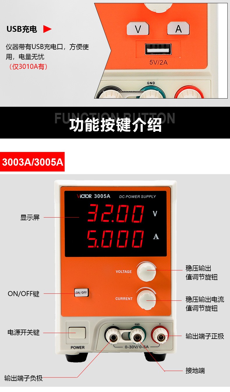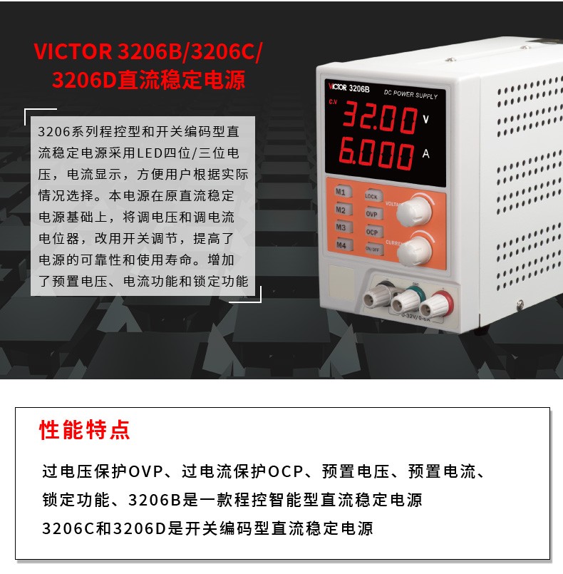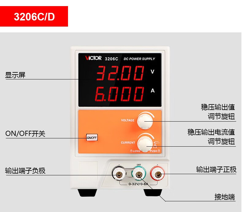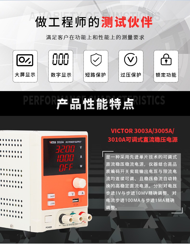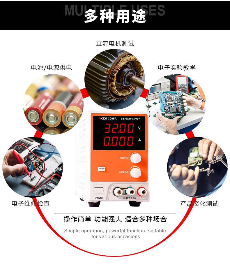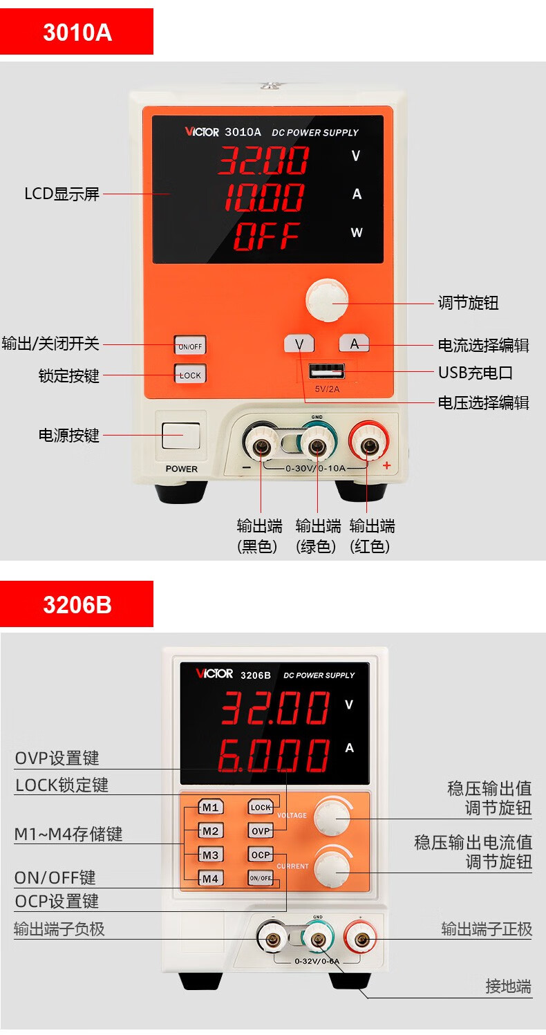 Victory Instrument DC stabilized power supply high-precision output voltage and current adjustable DC power regulator constant voltage and constant current preset VICTOR 3305 dual-channel adjustable 30V5A + one channel fixed 5V1A
