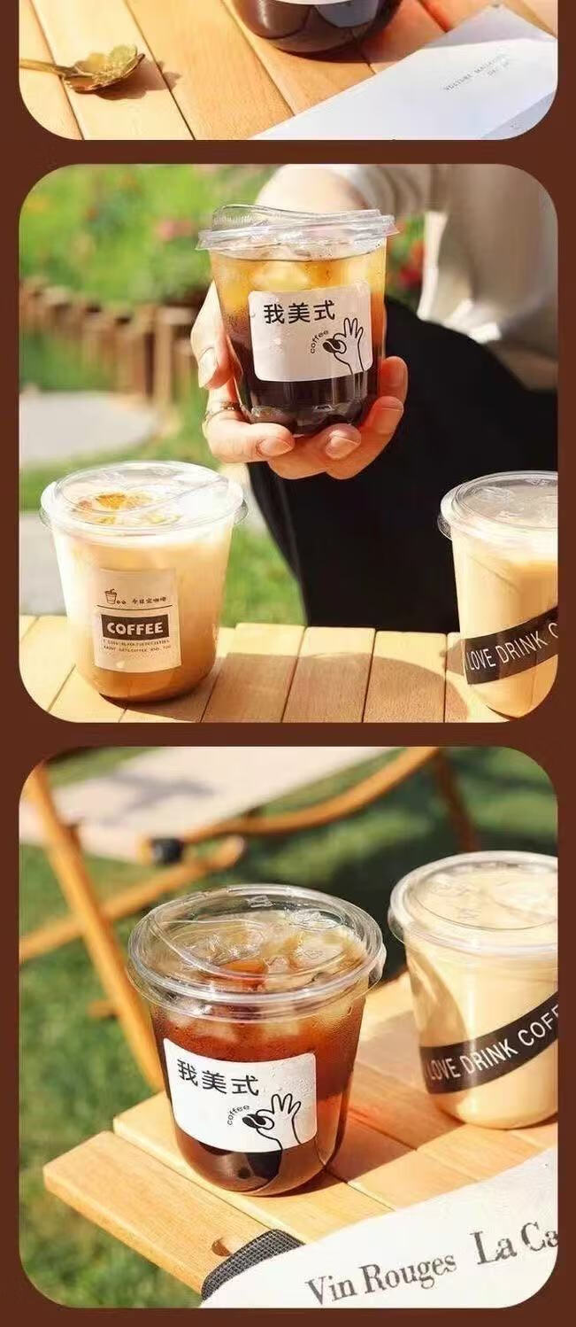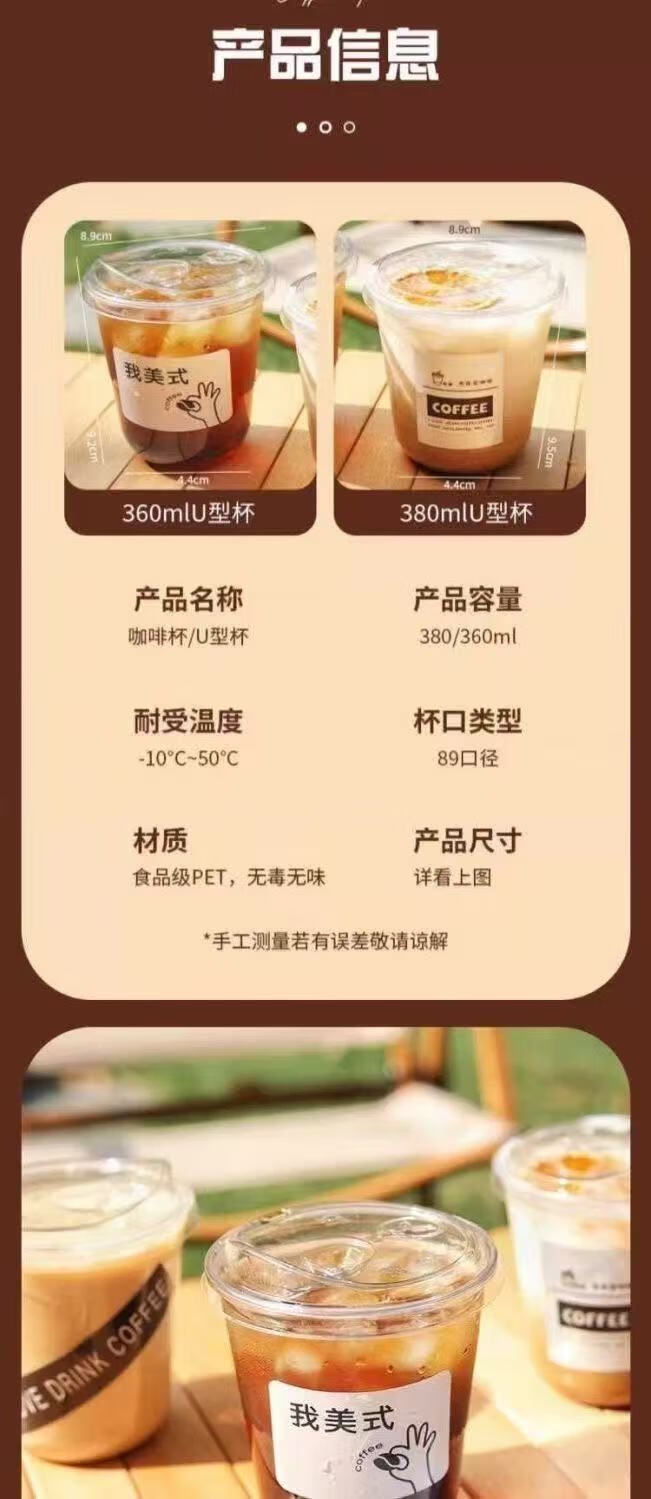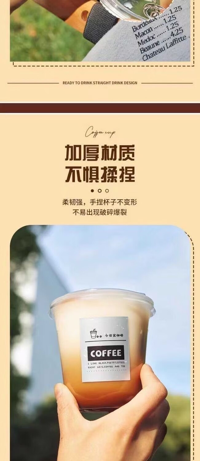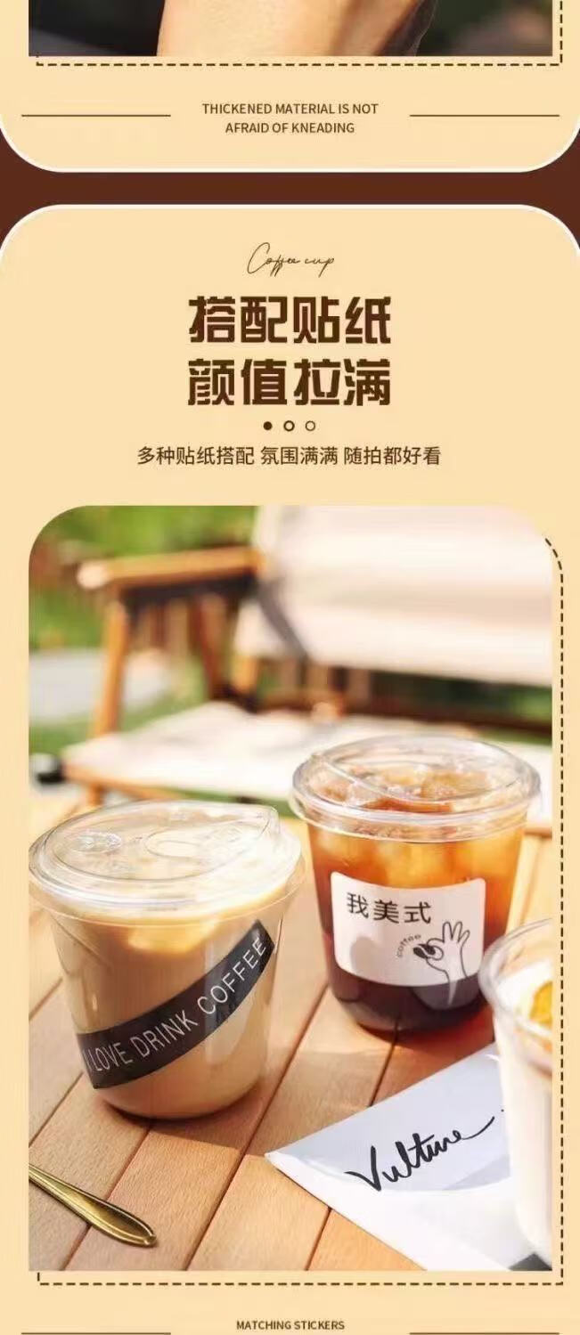 Disposable coffee and milk tea cup with lid, homemade drink cup, 90 caliber U-shaped cup, picnic internet celebrity packaged take-out cup, 400ml coffee and milk tea cup + direct drinking lid + straw + leak-proof paper 20 sets / free random stickers
