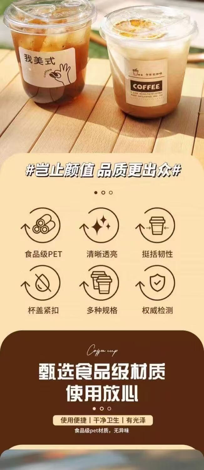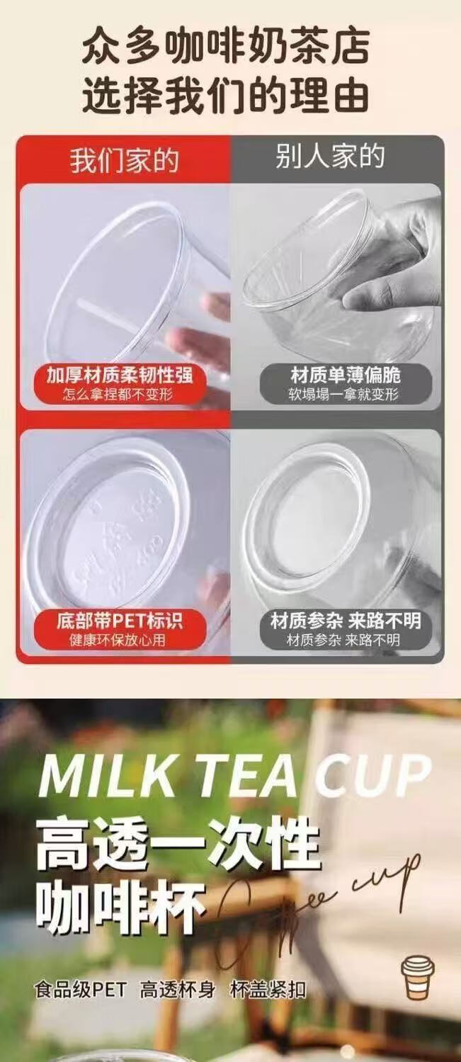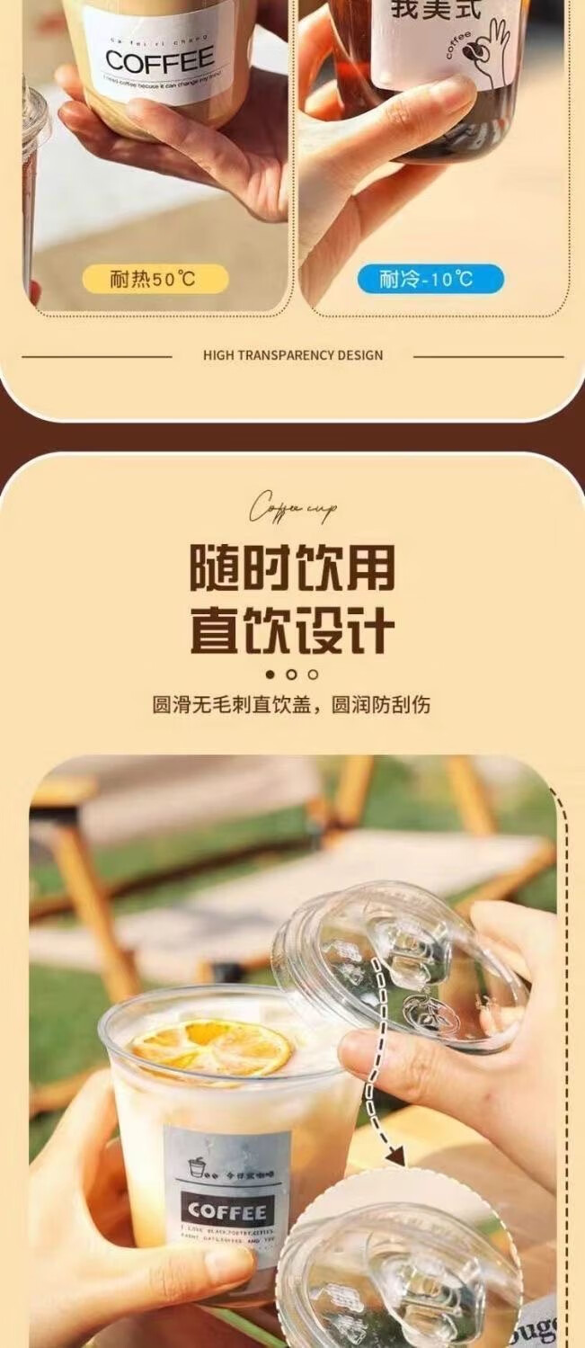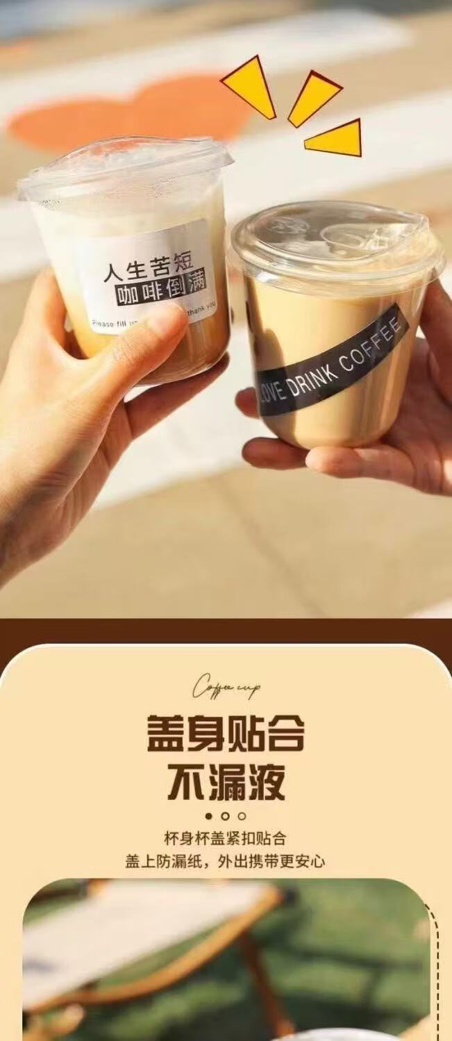 Disposable coffee and milk tea cup with lid, homemade drink cup, 90 caliber U-shaped cup, picnic internet celebrity packaged take-out cup, 400ml coffee and milk tea cup + direct drinking lid + straw + leak-proof paper 20 sets / free random stickers