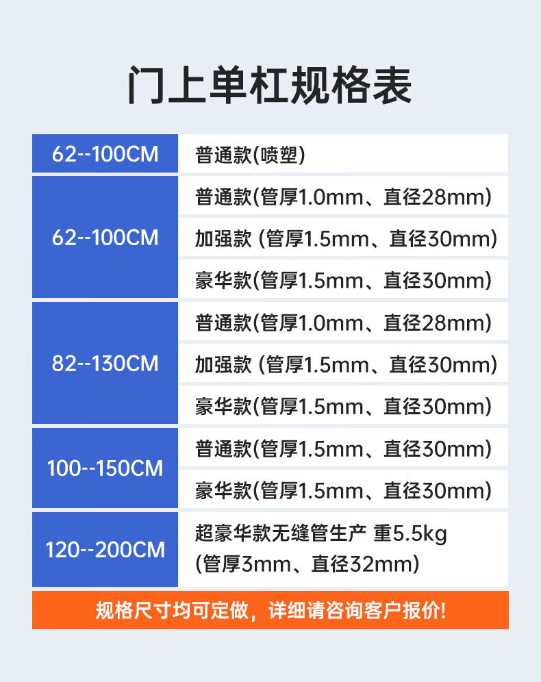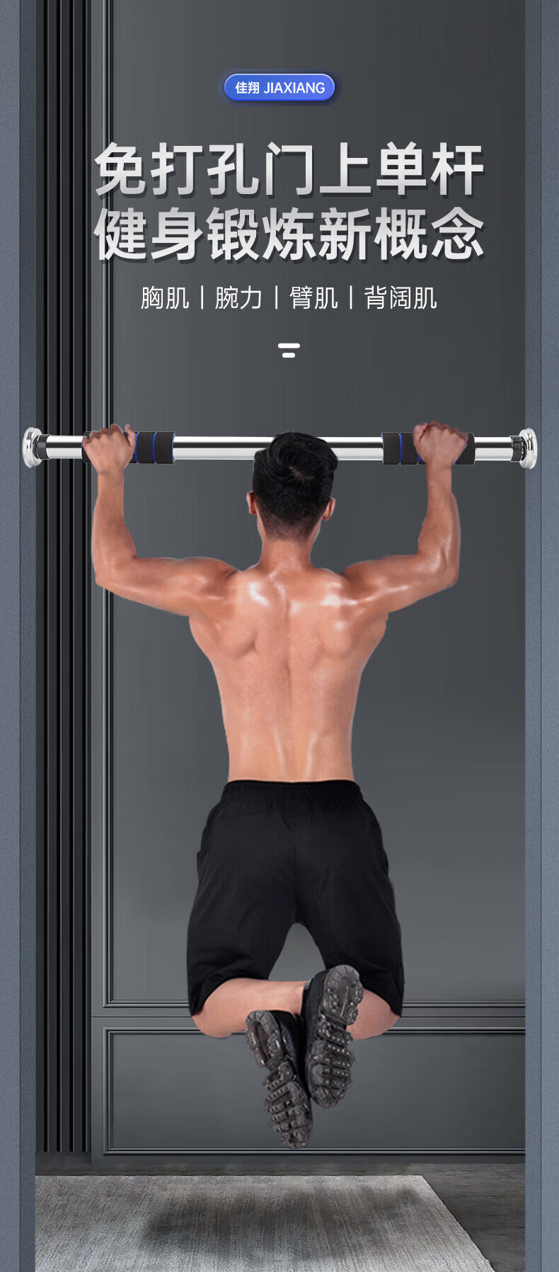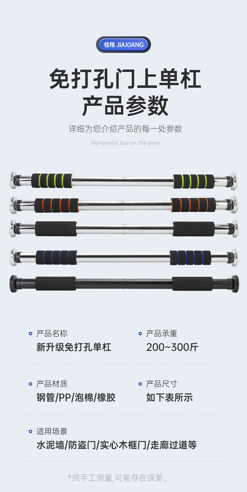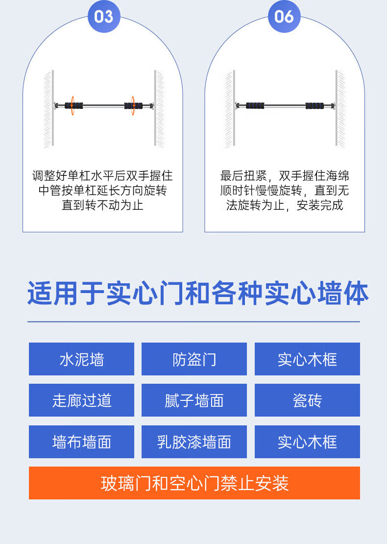 Xu Qixing's home indoor adult fitness equipment without punching the door horizontal bar pull-up door frame trainer color installation-free thickened bar (64-100cm)