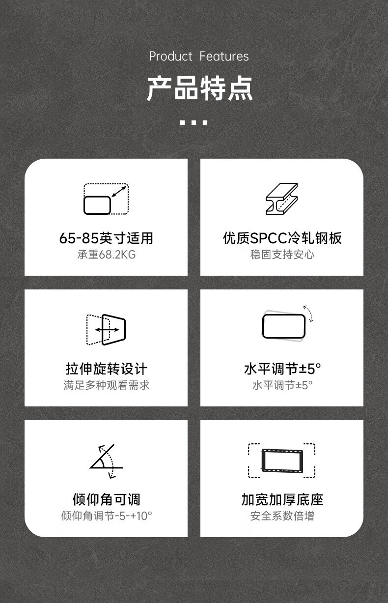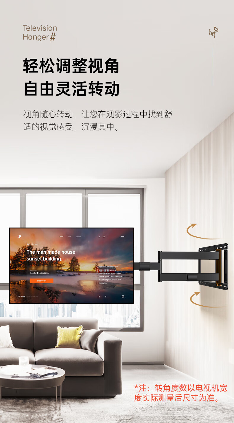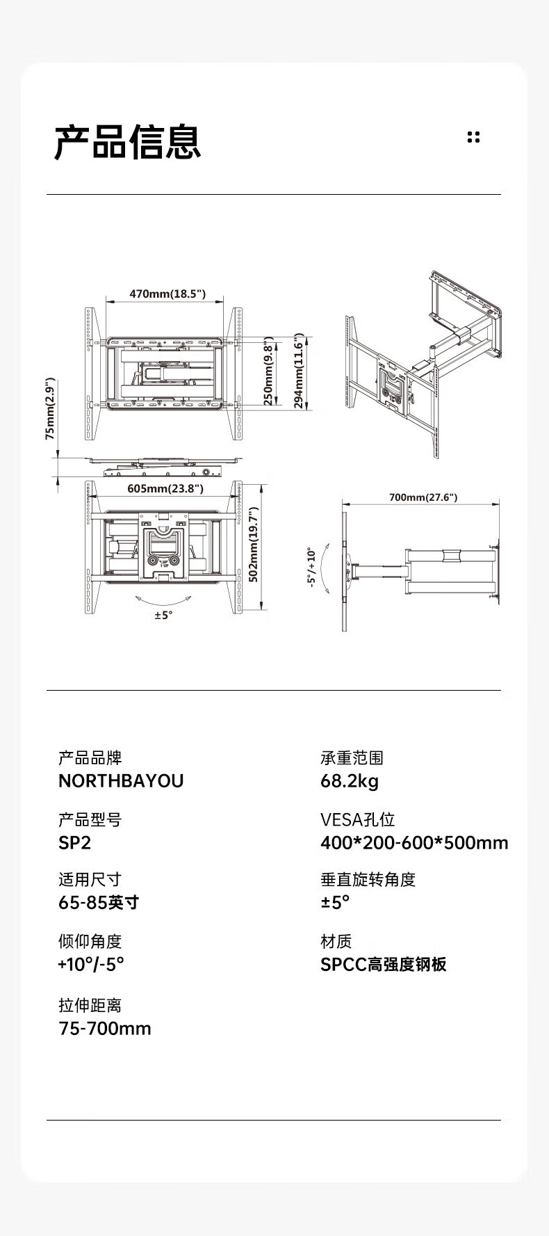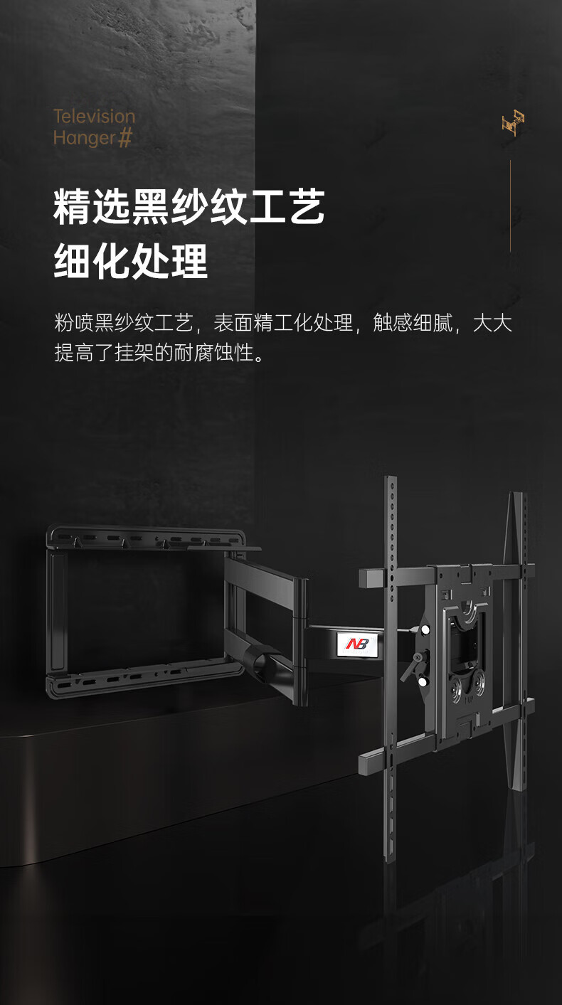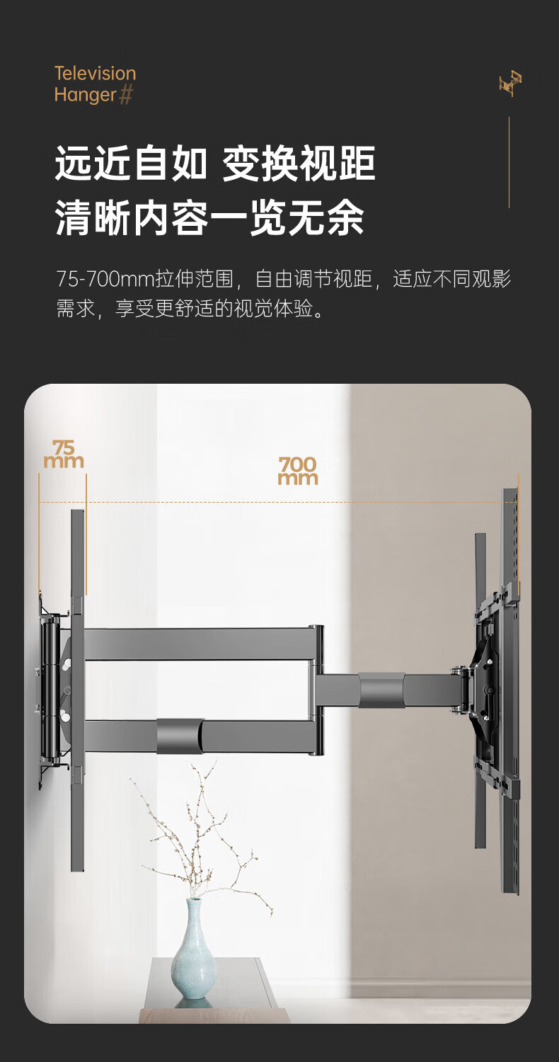 NB TV bracket wall-mounted telescopic hanger 90-degree rotation angle left and right 65-86 inches long arm SP2 black 75-110 inches