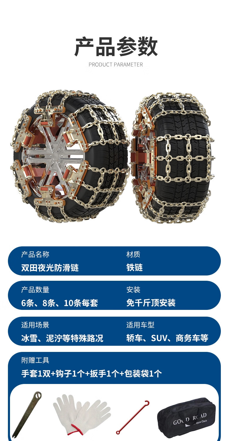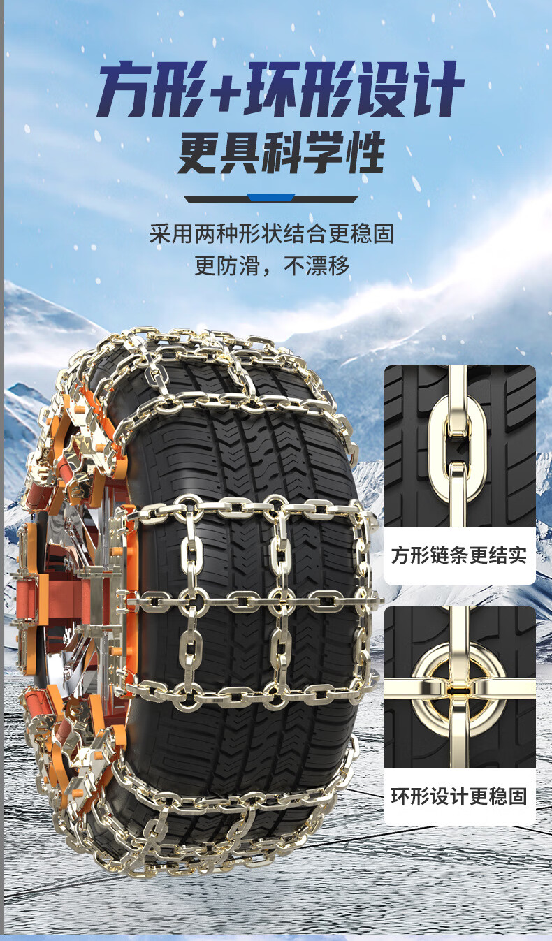 Square canopy car anti-skid chain tires car off-road vehicle SUV thickened pickup truck does not damage tires tires snow 8 pairs of double field luminous 205-235 tires (medium size)