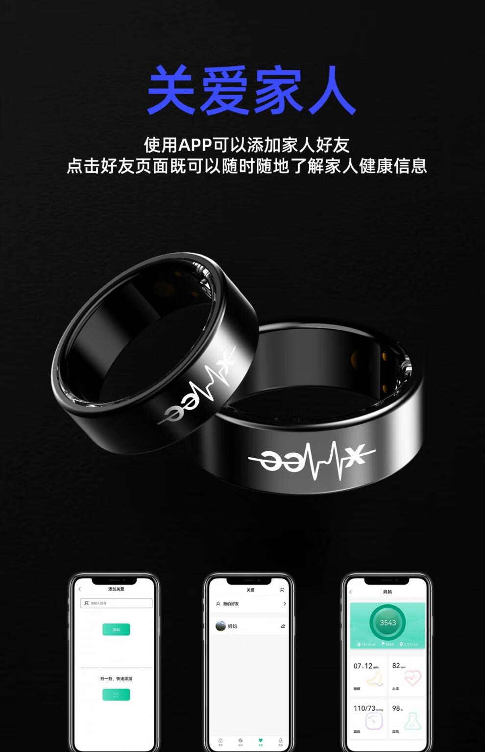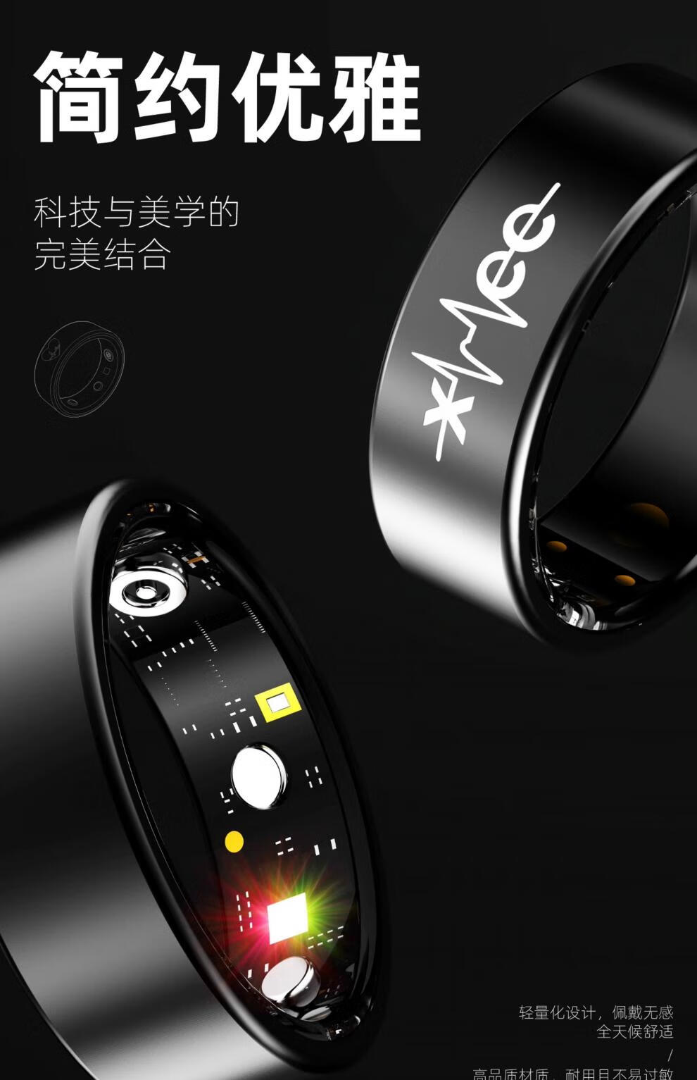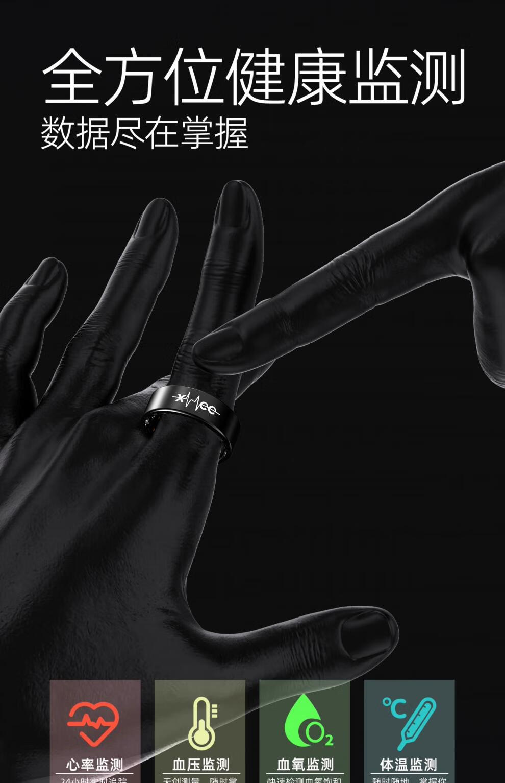 Huaqiangbei smart ring ECG blood sugar 25-year-old ECG smart ring non-invasively measures blood sugar, blood pressure, sleep blood oxygen, heart rate, multiple modes, dynamic health and safety monitoring ring, narrow edge upgrade - flagship model, non-invasive automatic detection of blood pressure/blood sugar/blood oxygen/No. 11 (diameter 20.6, finger circumference 64)