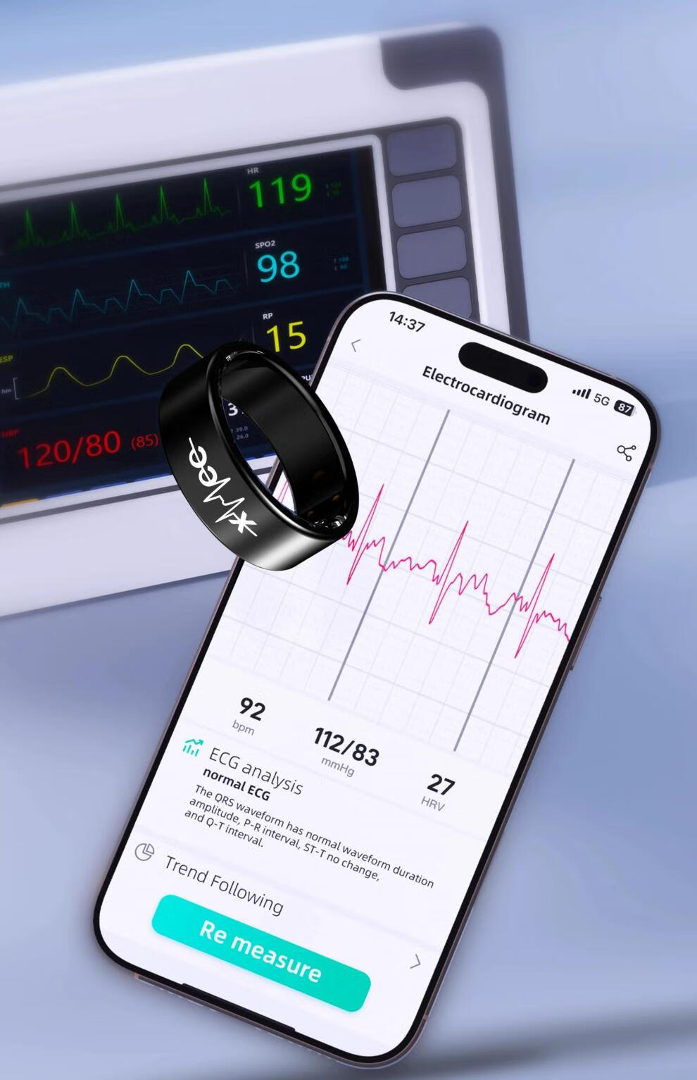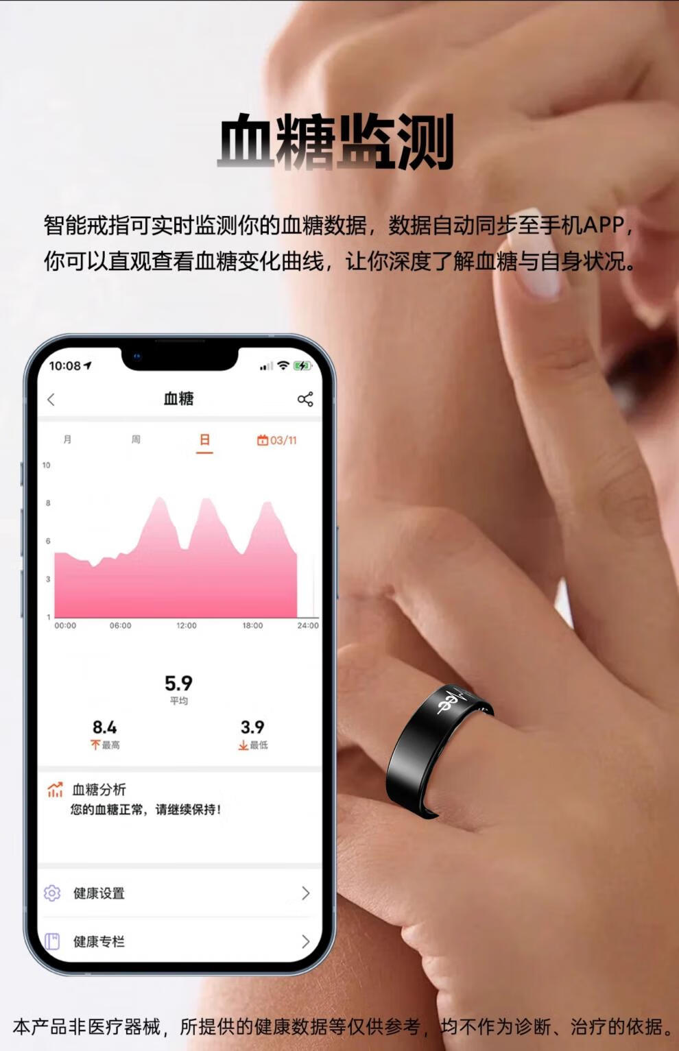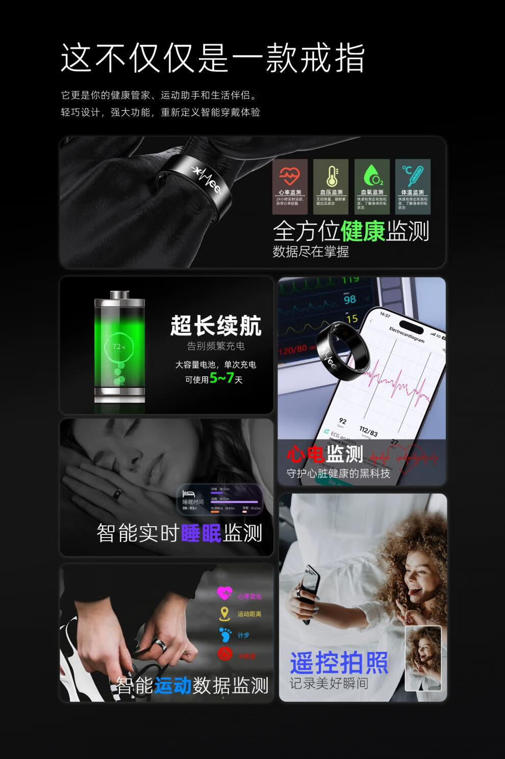 Huaqiangbei smart ring ECG blood sugar 25-year-old ECG smart ring non-invasively measures blood sugar, blood pressure, sleep blood oxygen, heart rate, multiple modes, dynamic health and safety monitoring ring, narrow edge upgrade - flagship model, non-invasive automatic detection of blood pressure/blood sugar/blood oxygen/No. 11 (diameter 20.6, finger circumference 64)