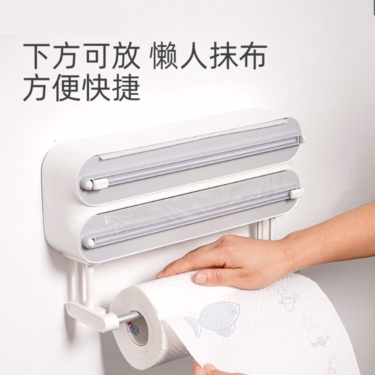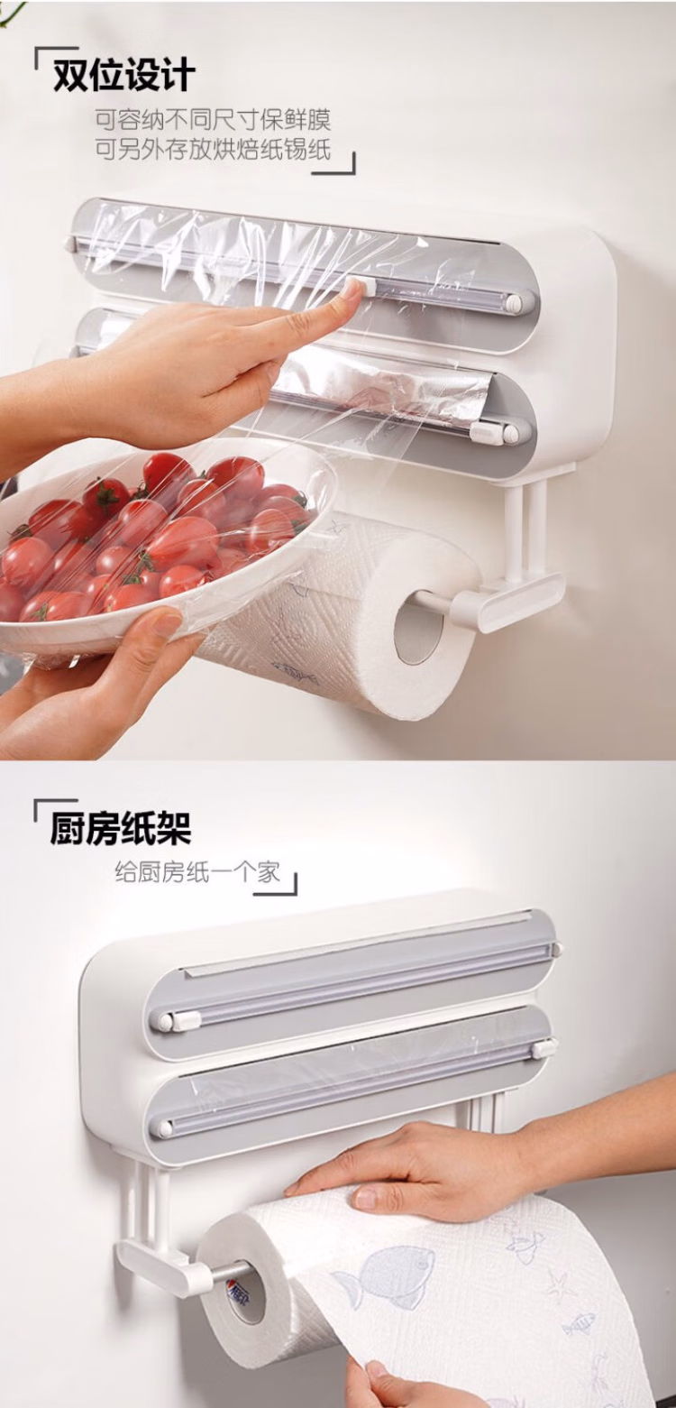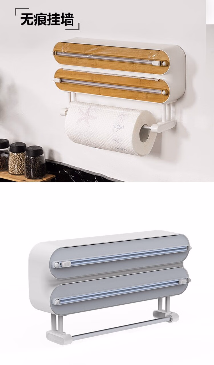 DEATKN German double-layer cling film cutter three-in-one household multi-functional magnetic refrigerator wall-mounted kitchen paper towel holder default