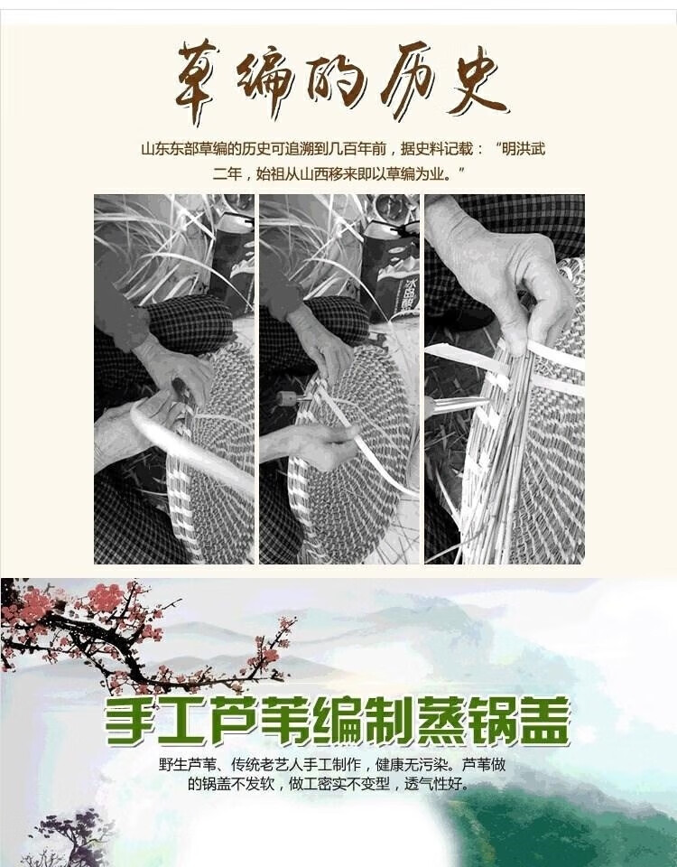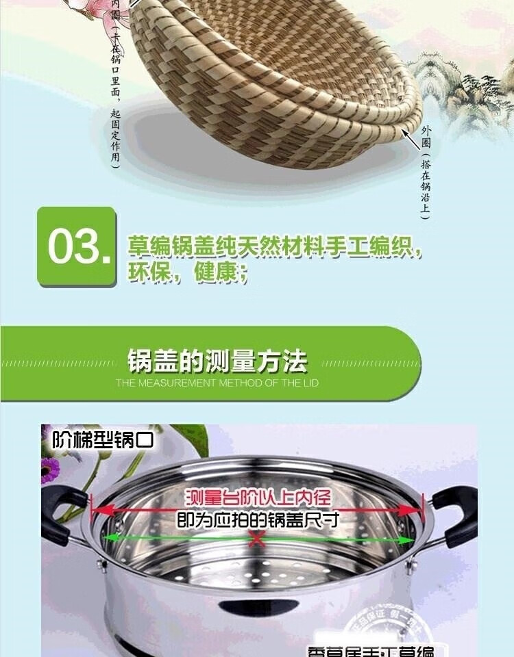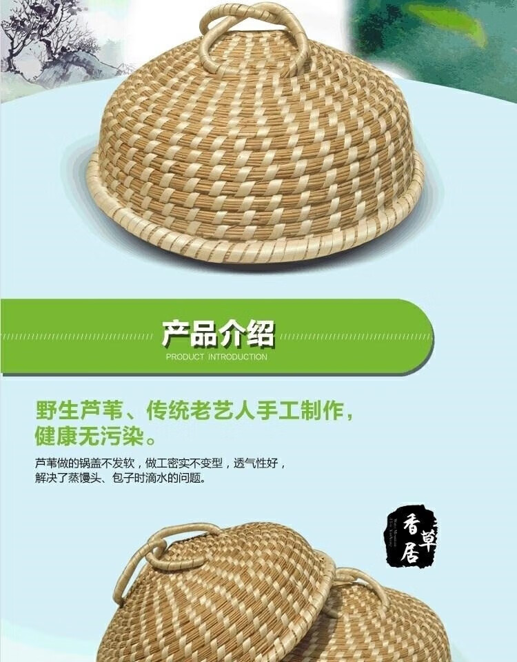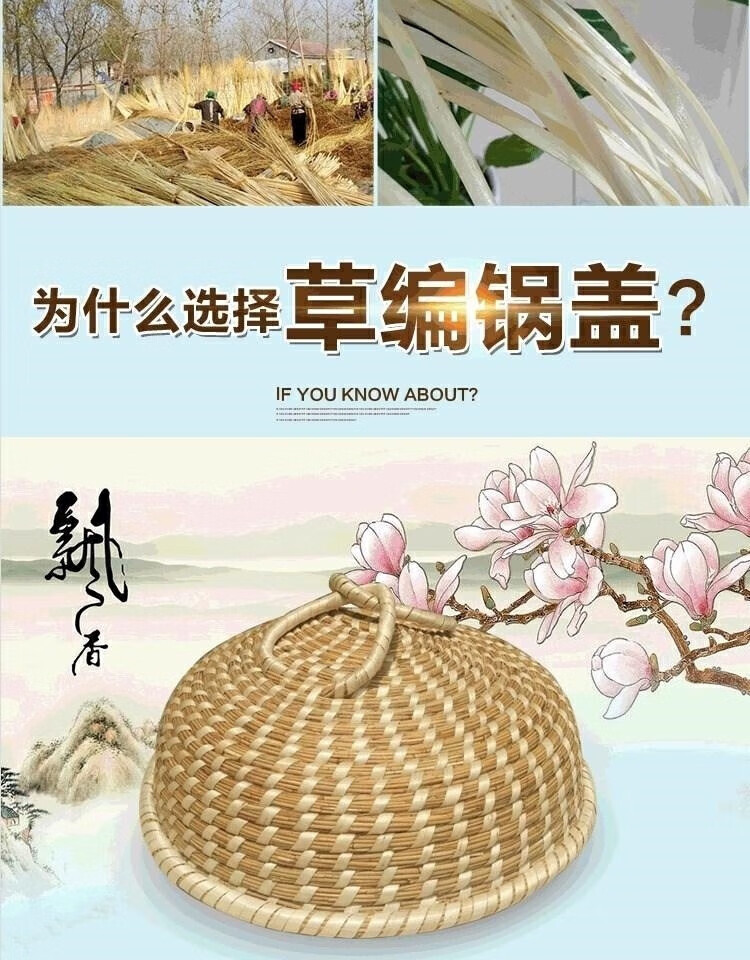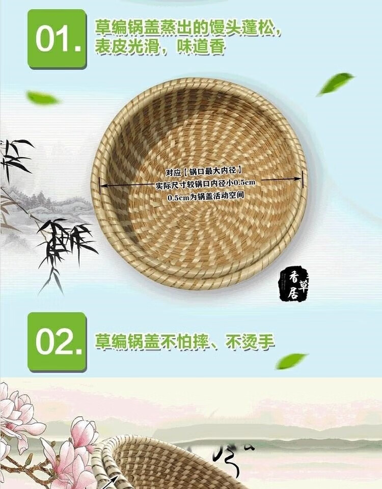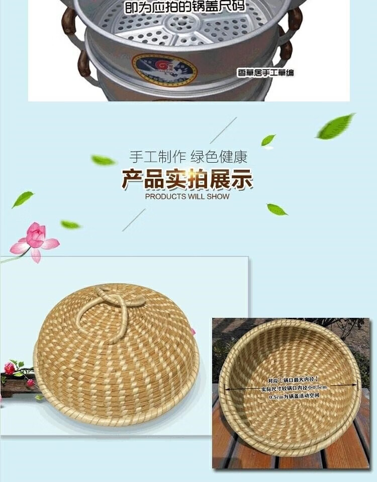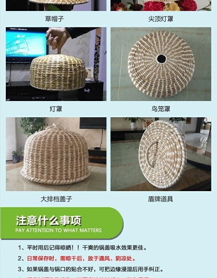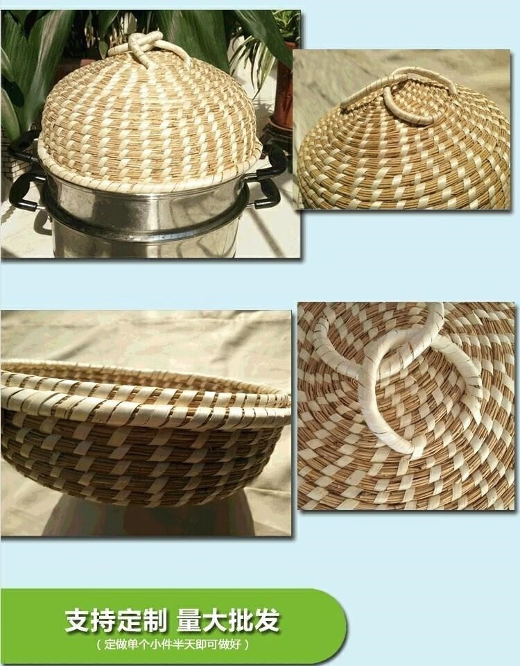 Chiweng reed woven pot lid steamer straw hat anti-scalding large pot steamer straw pot lid purely handmade no dripping no steam basic model 24CM-pot inner diameter size shot