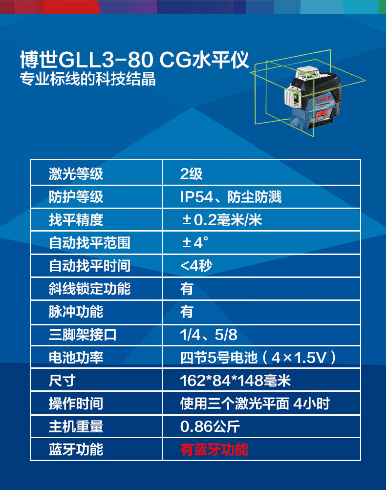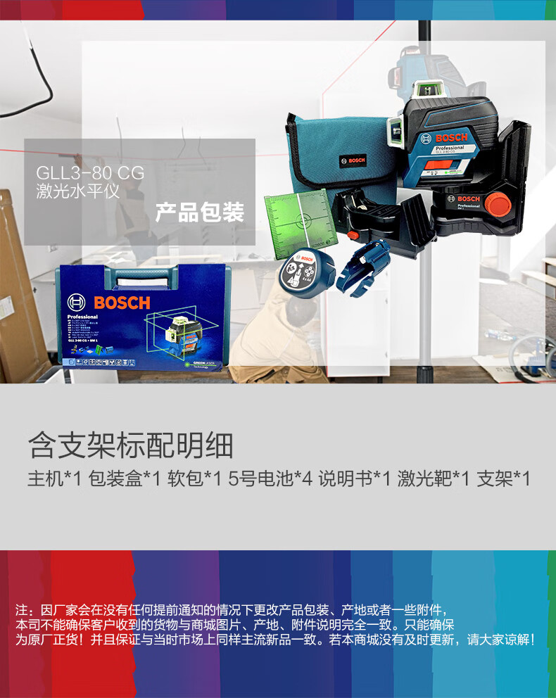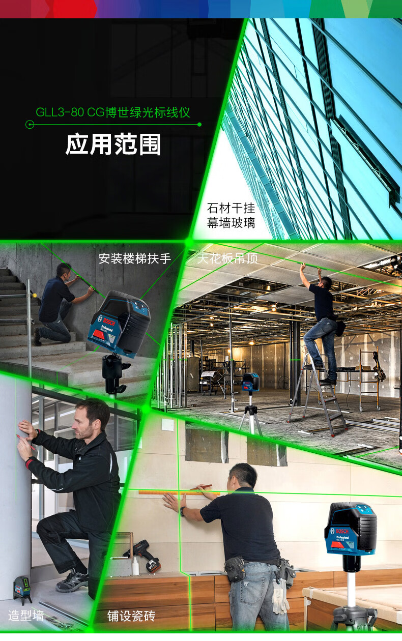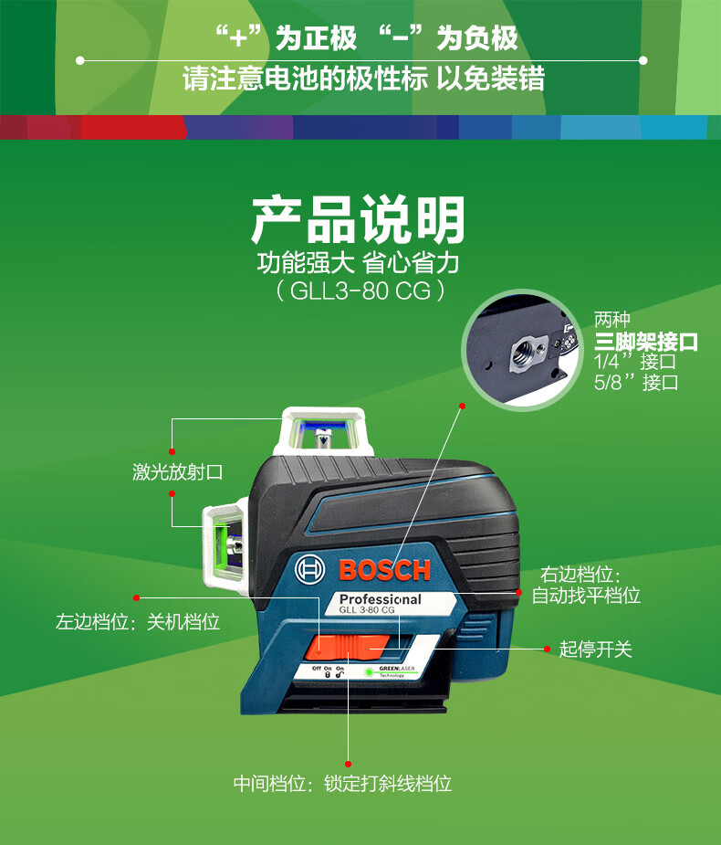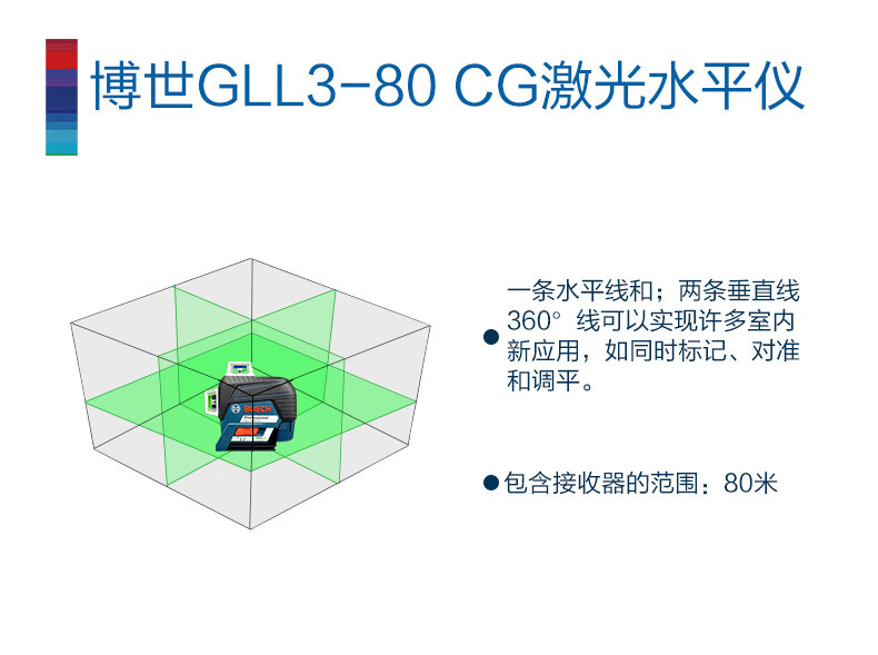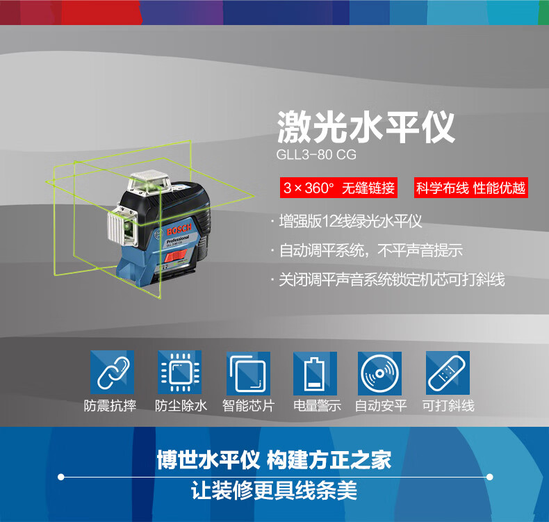 Bosch (BOSCH) Bosch laser level green light GLL380CG wall-mounted instrument high-precision automatic anping line 12 lines GLL3-80CG12-bracket set single electric
