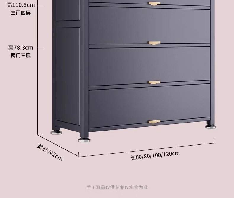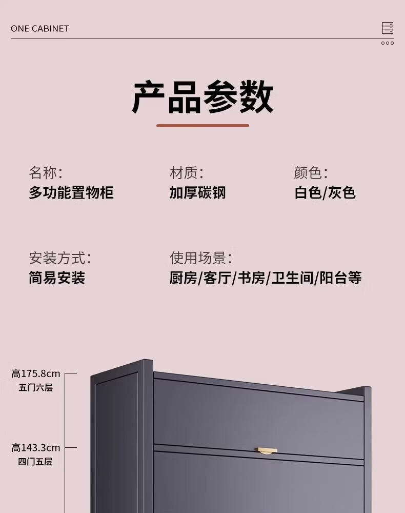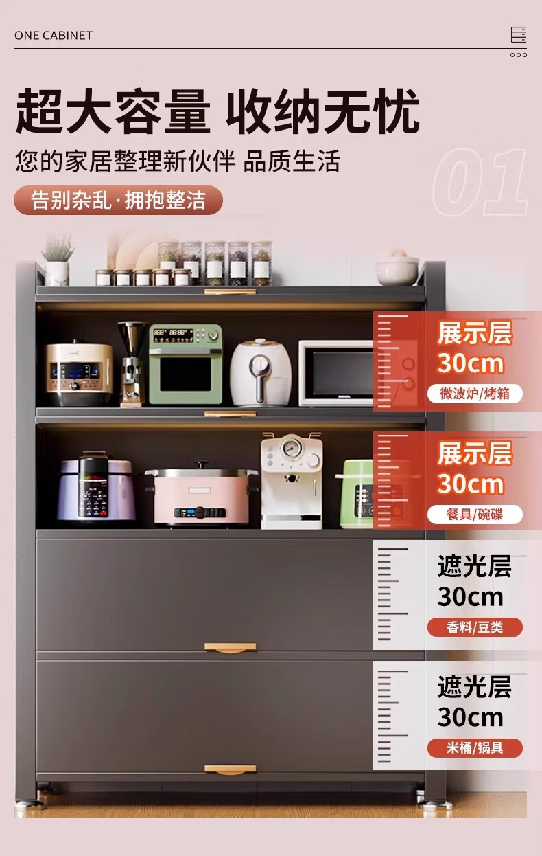 Kitchen rack floor-standing multi-layer simple dining side storage cabinet household slate microwave storage cabinet cupboard cabinet gray all-iron door style 4 doors 5 layers high 149 long 60 wide 42