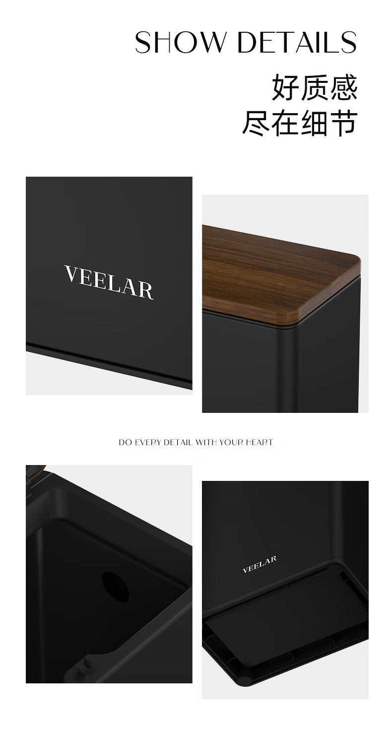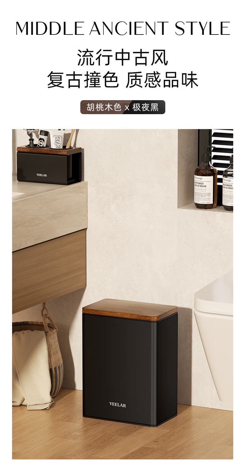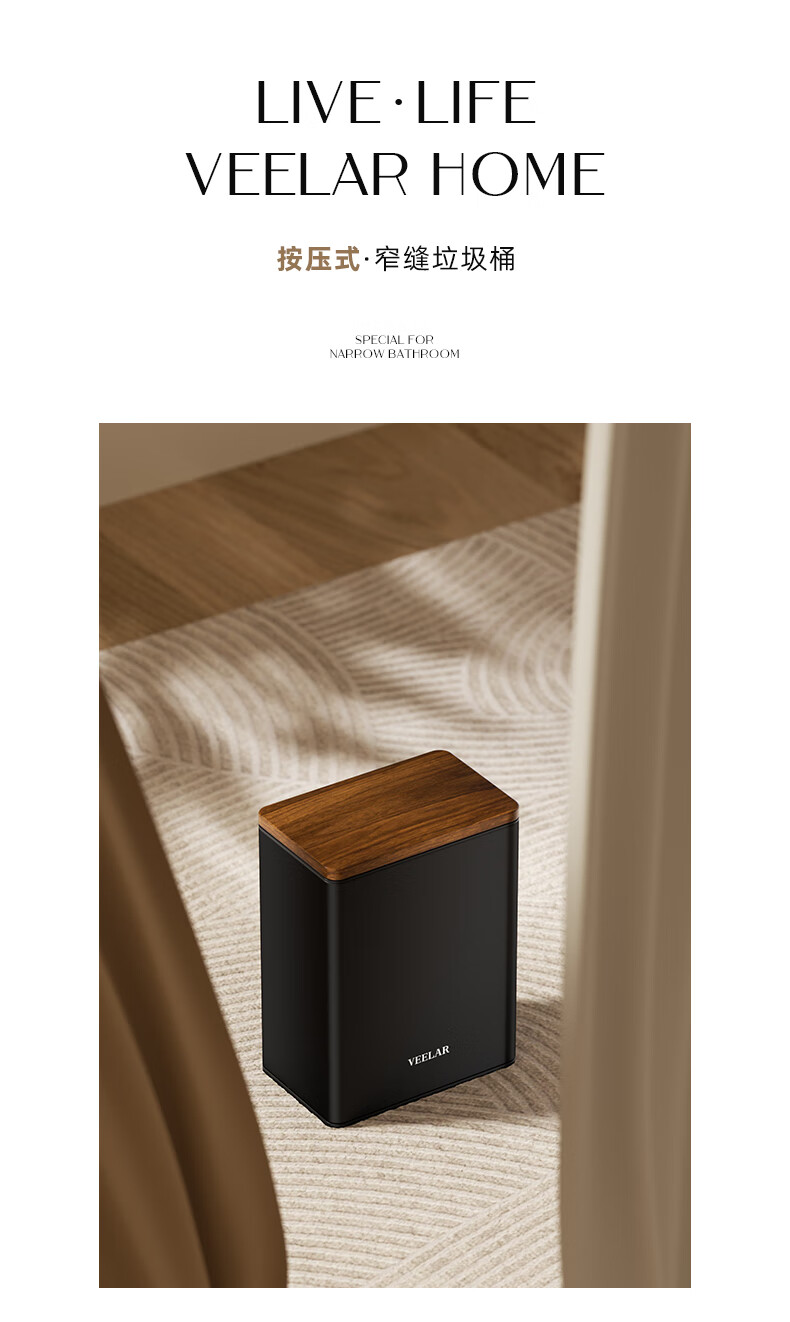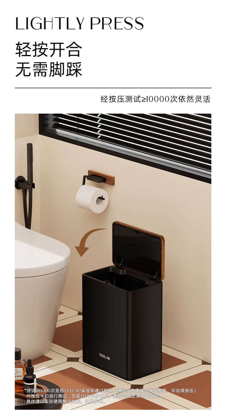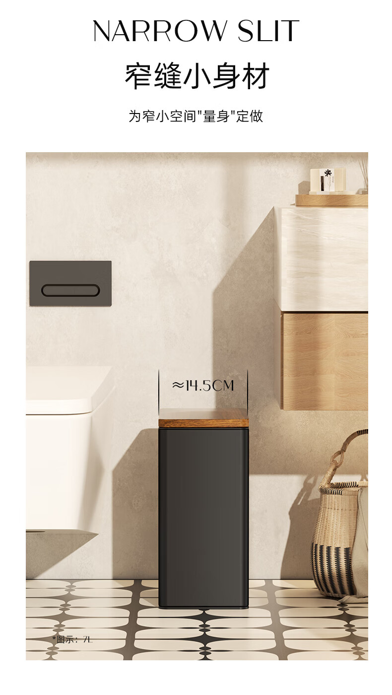 VEELAR push-type trash can bathroom toilet household living room bedroom sandwich paper basket middle and old style narrow slit new style 7L-extreme night black (new style of middle and old style)