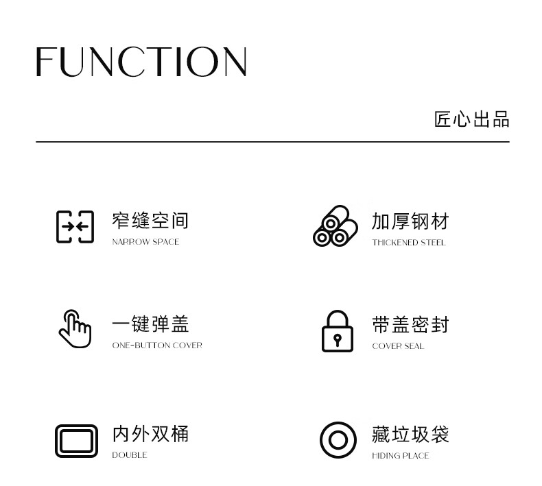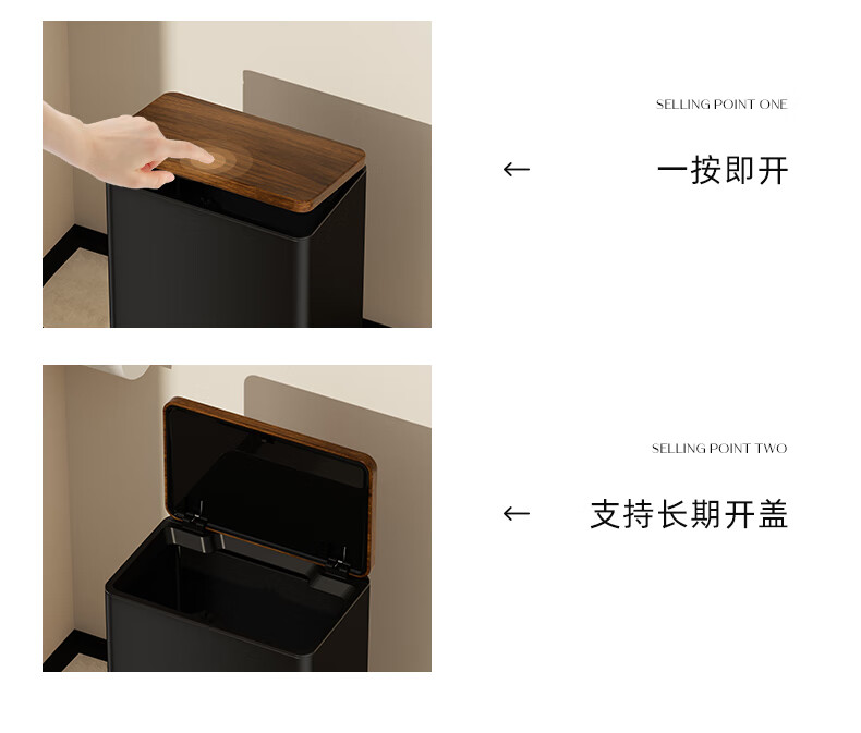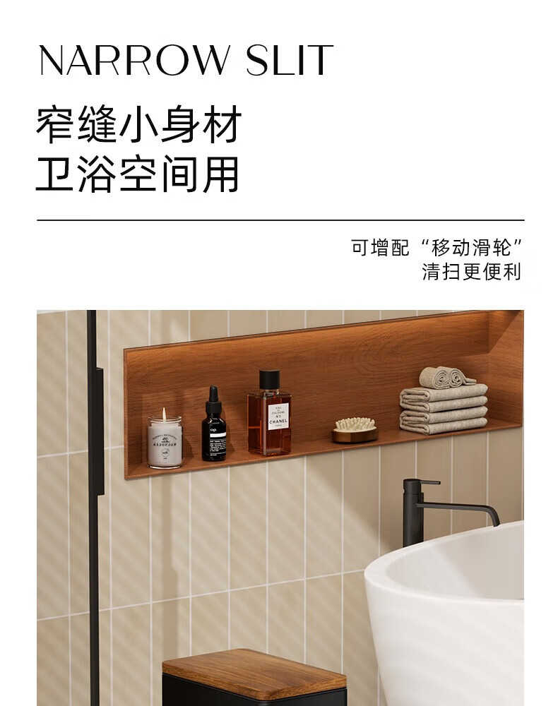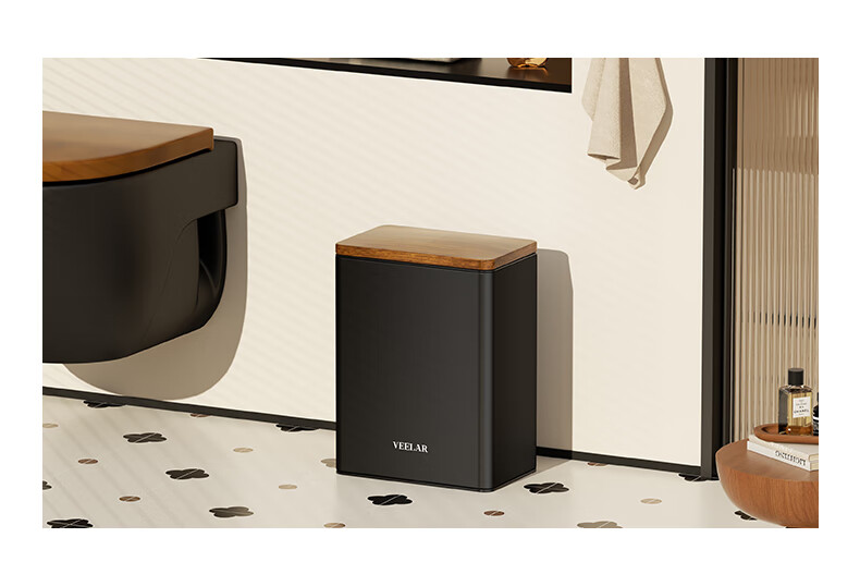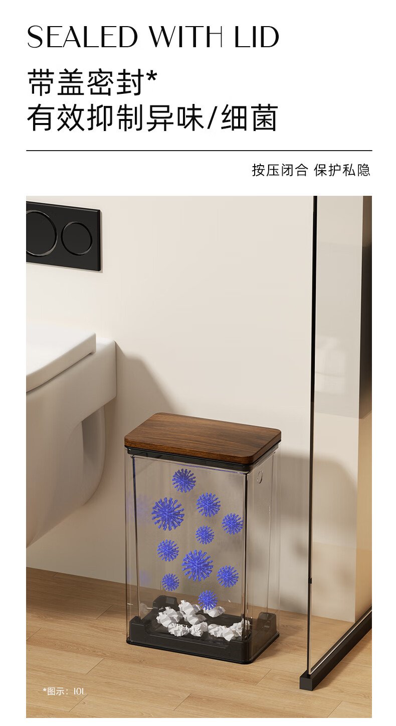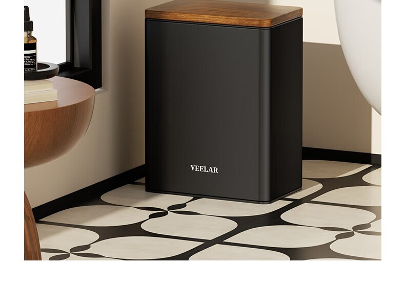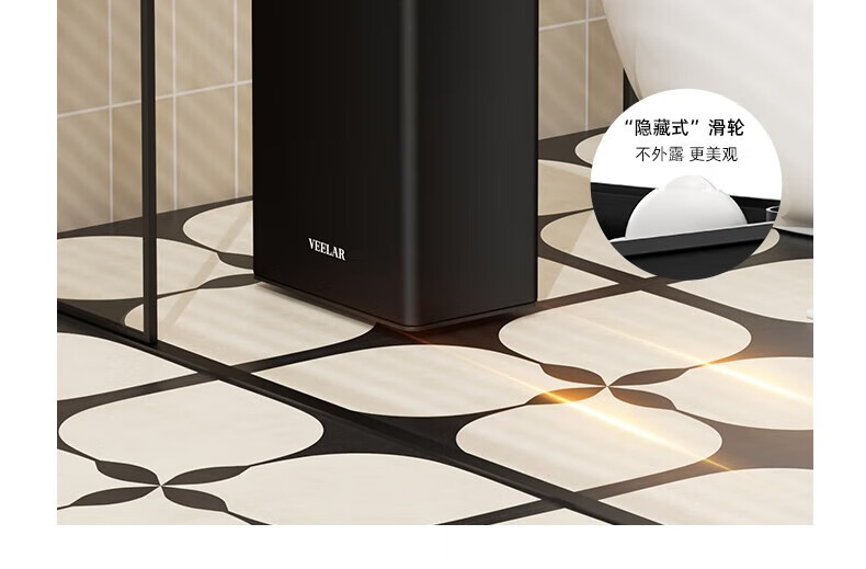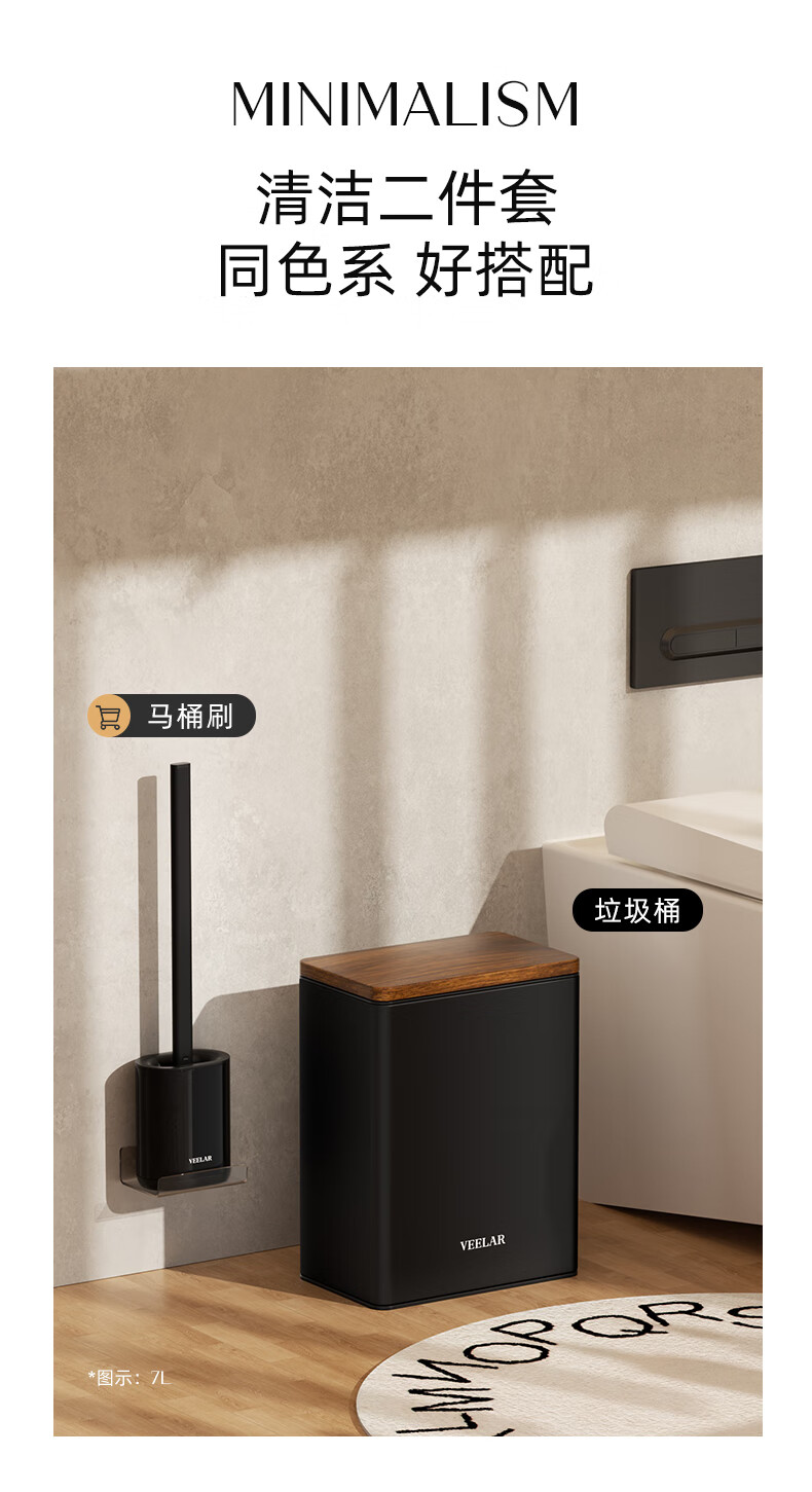 VEELAR push-type trash can bathroom toilet household living room bedroom sandwich paper basket middle and old style narrow slit new style 7L-extreme night black (new style of middle and old style)