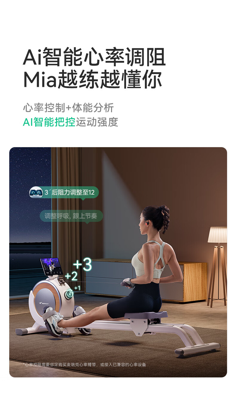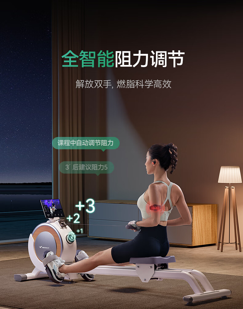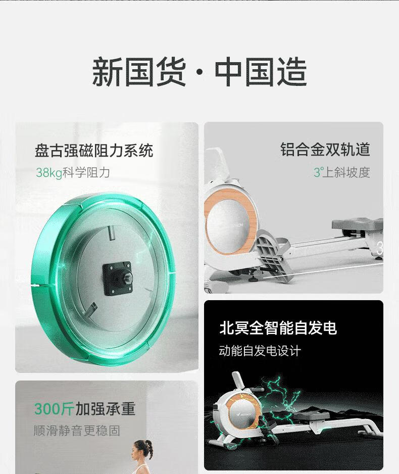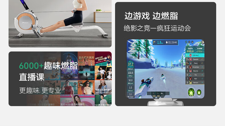 Merrick Super Fat Burning Rowing Machine Home Sports Intelligent Magnetic Silent Rowing Machine Sports Aerobic Fitness Q1S White Ecological Edition_32-stop Intelligent Variable Resistance_Exclusive Live Class_300 Jin Bearing