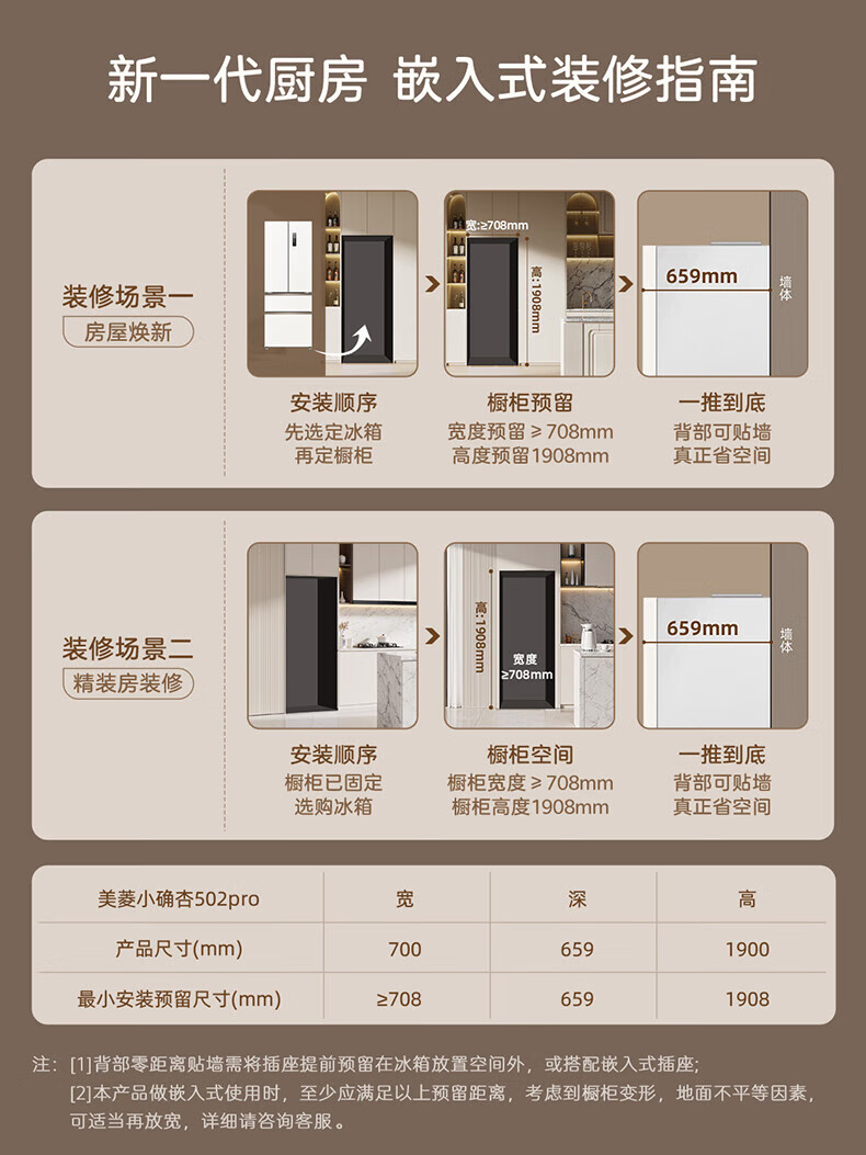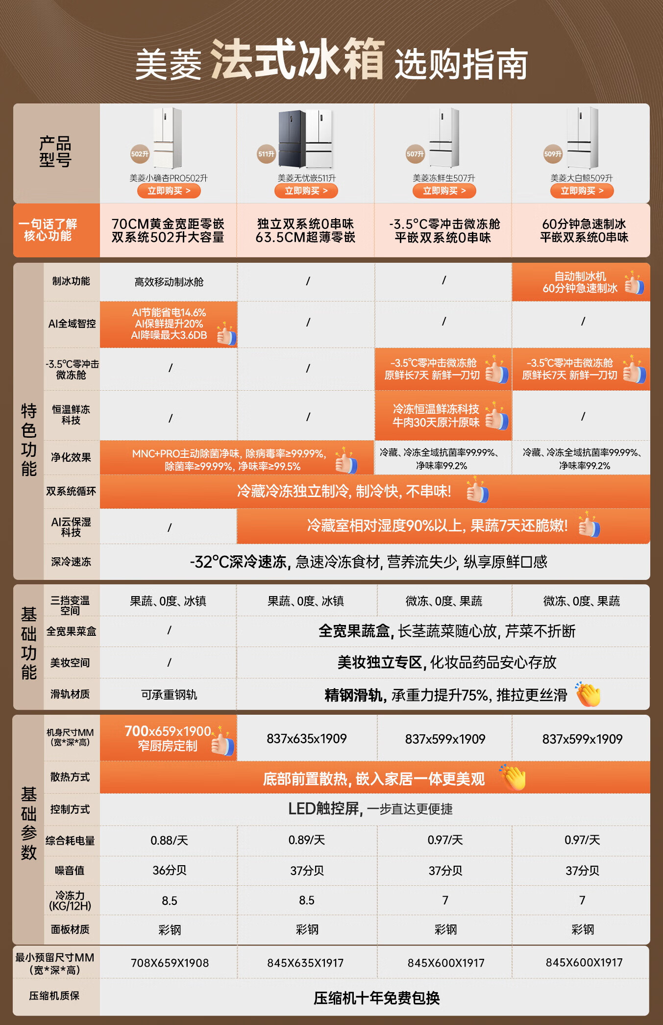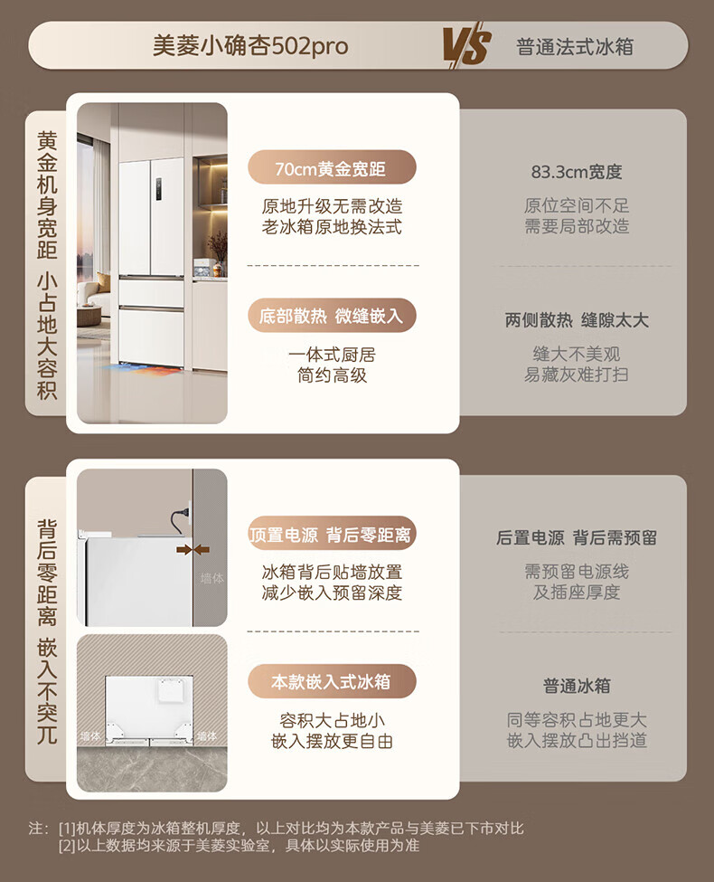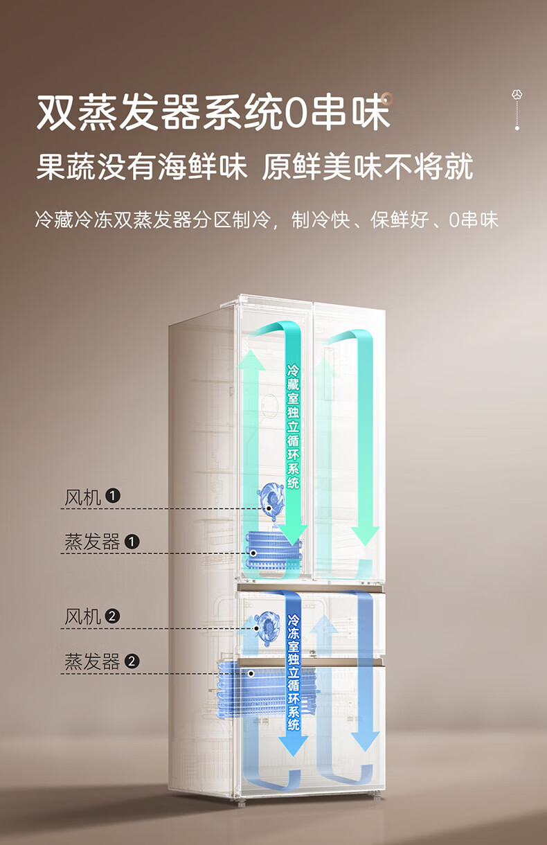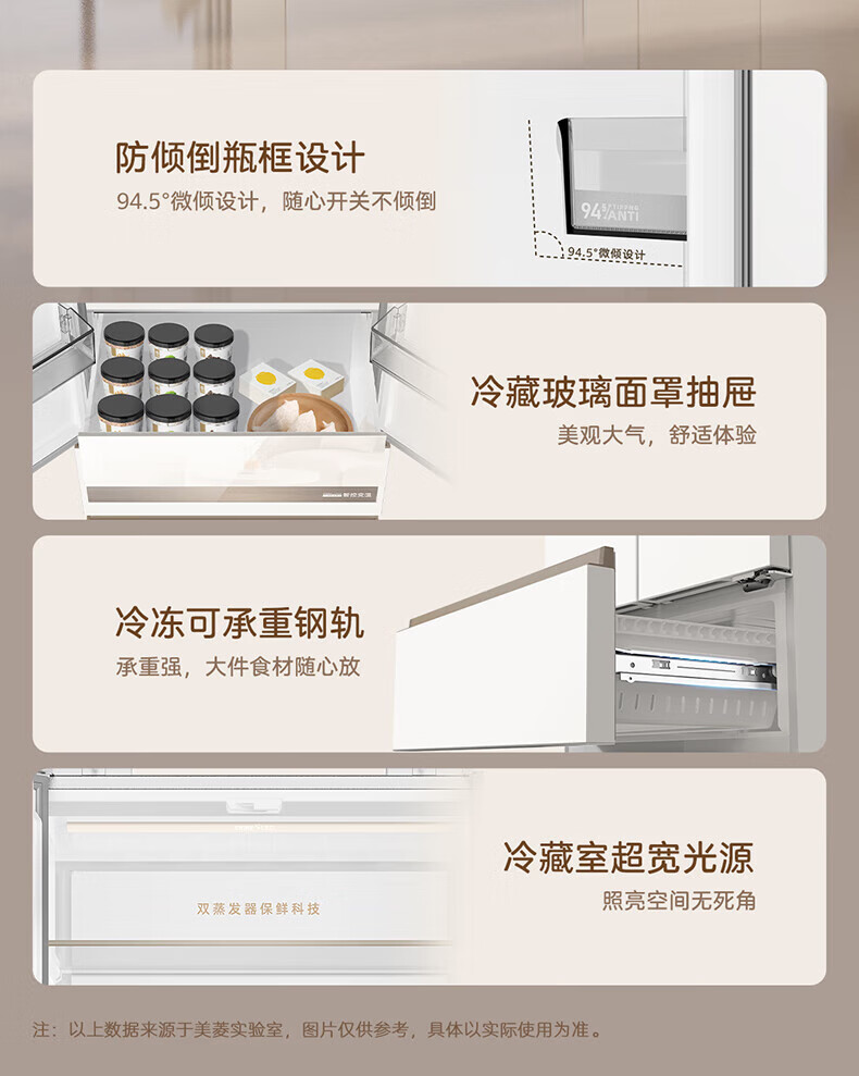 MeiLing Xiaoquexing 502-liter French multi-door dual-circulation dual-system active sterilization 70cm wide ultra-thin zero-embedded ice-making bottom cooling air-cooled frost-free household refrigerator subsidy