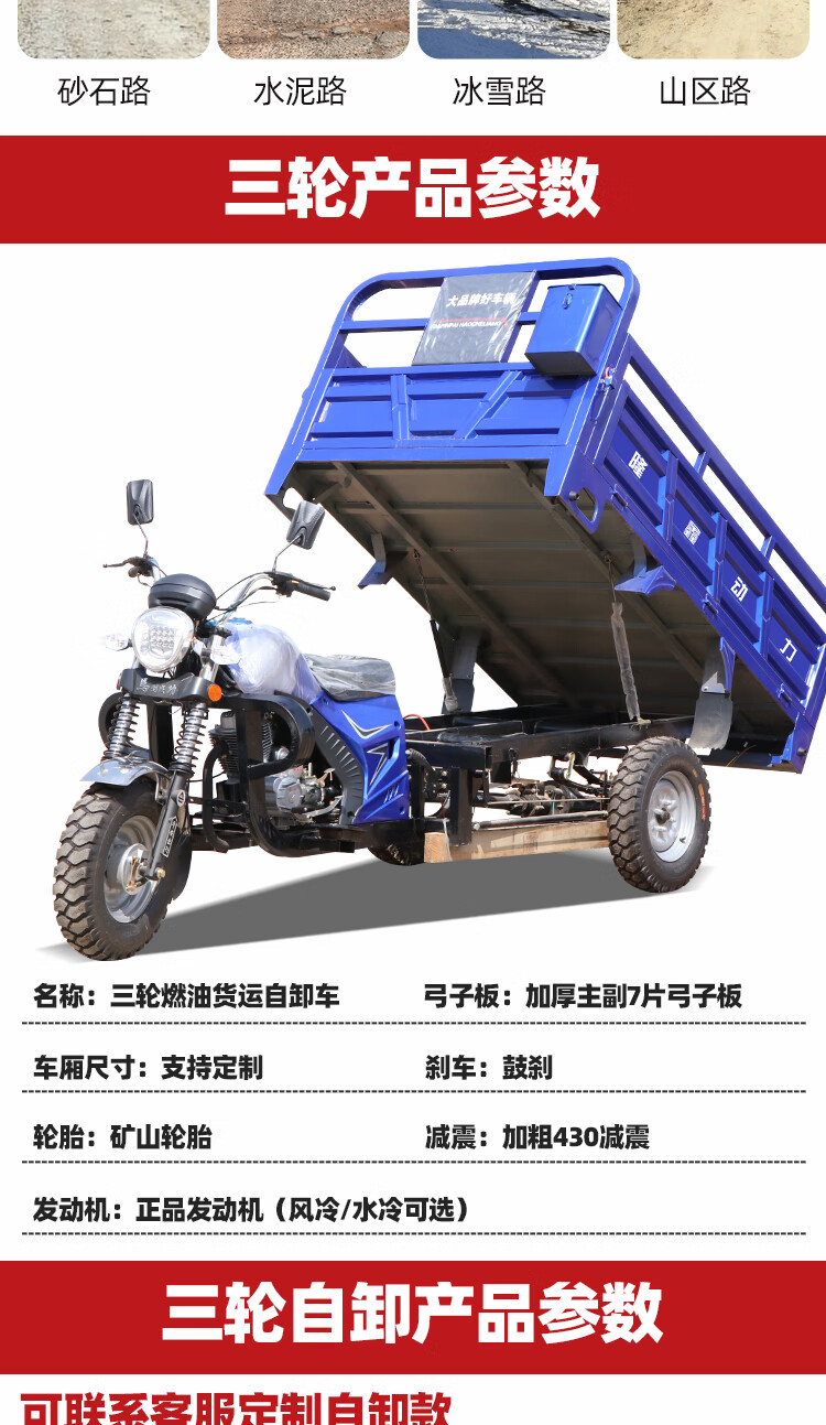 GUANGJUE gasoline three-wheel Loncin water-cooled engine fuel three-wheel motorcycle liter dump free shipping 150cc water-cooled 1.3 meters wide x 2 meters long