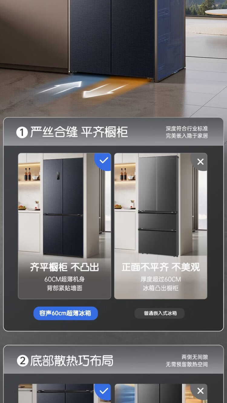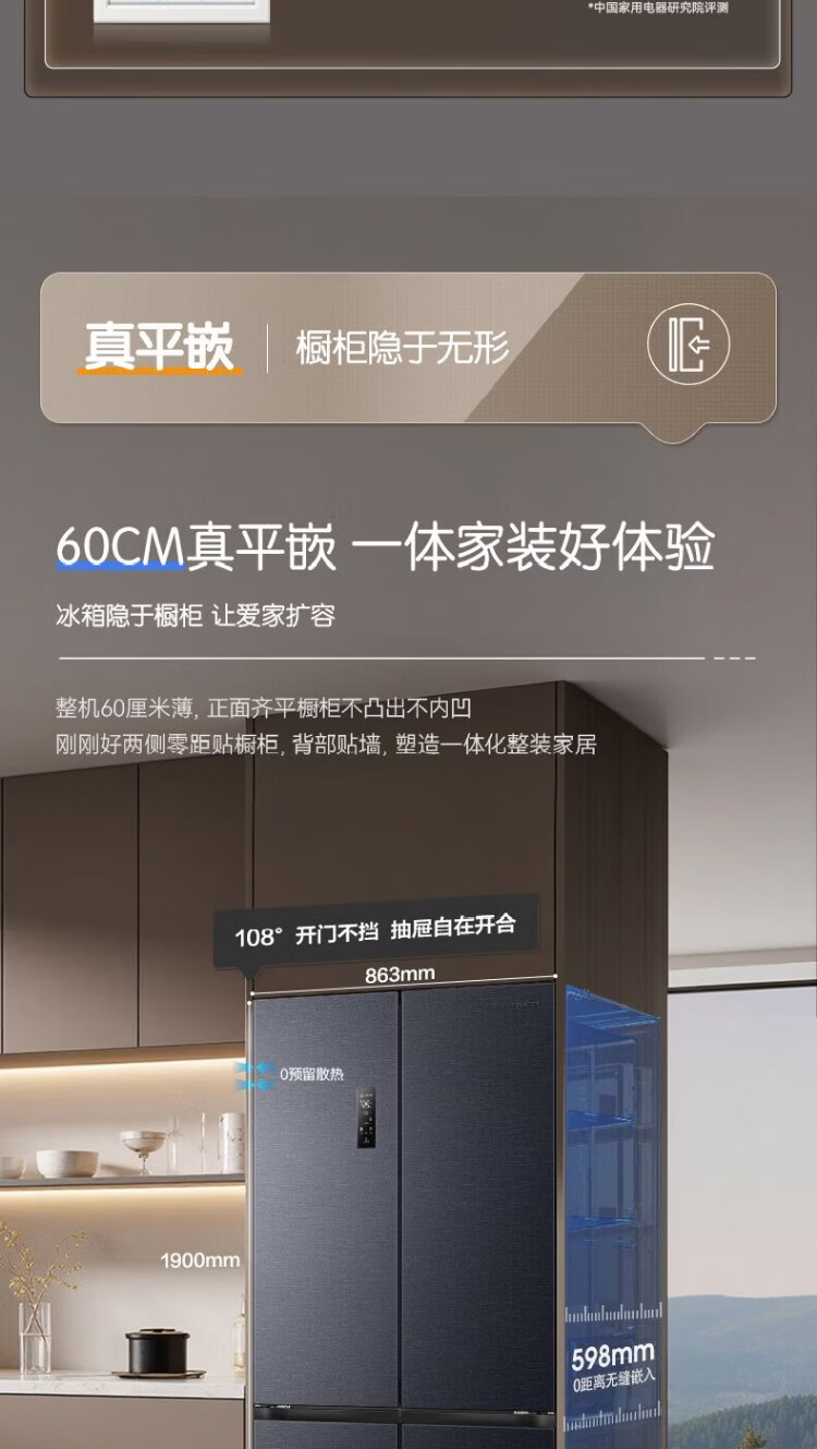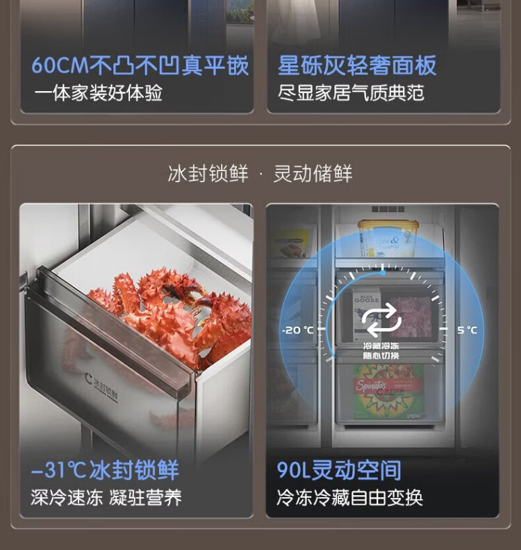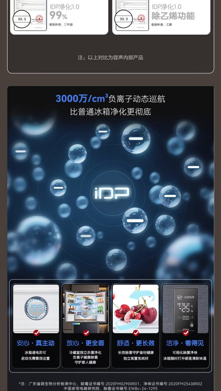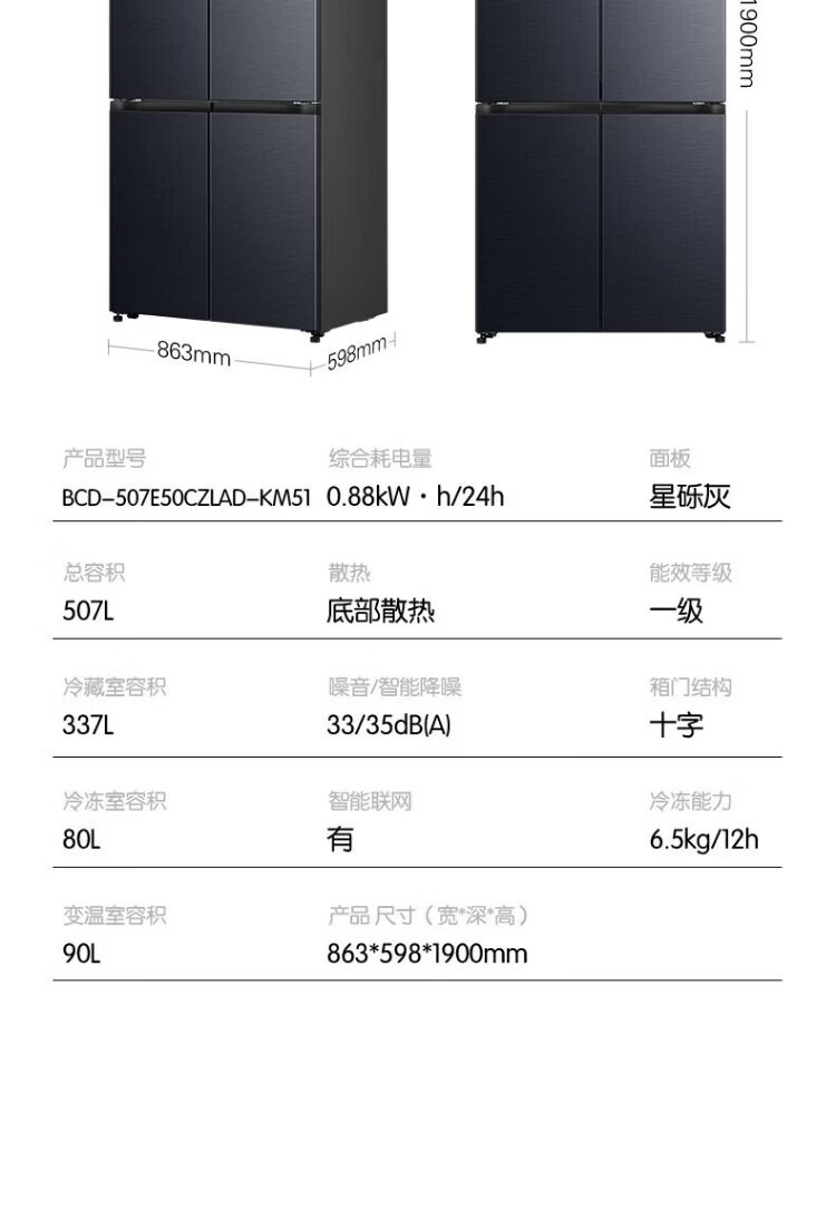 Rongsheng IDP net flavor 507L cross-door refrigerator active sterilization dual system ultra-thin zero embedded first-level energy efficiency air-cooled frost-free BCD-507E50CZLAD national subsidy dual system embedded | active sterilization | 507 cross