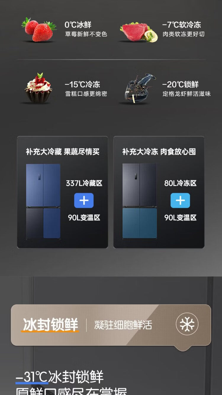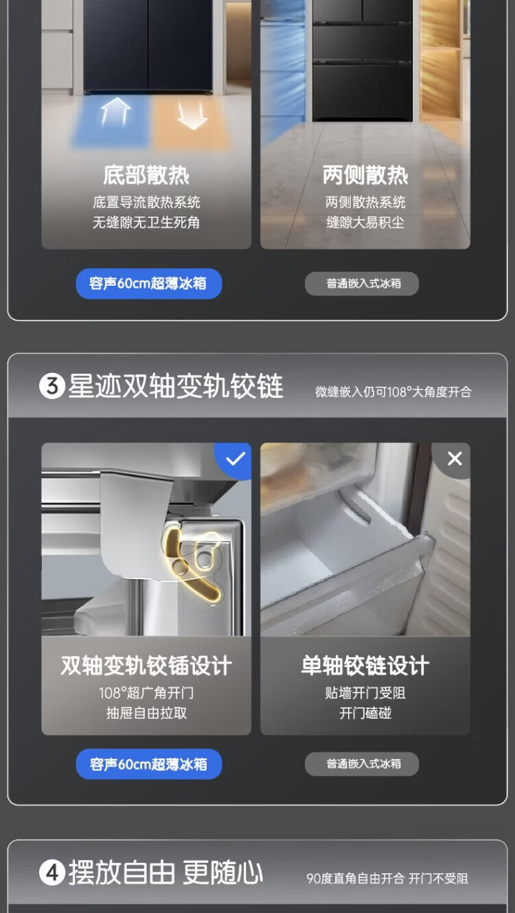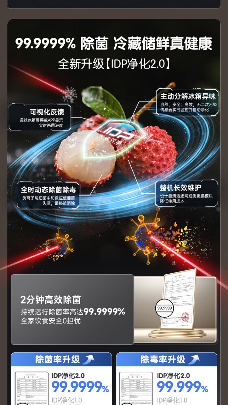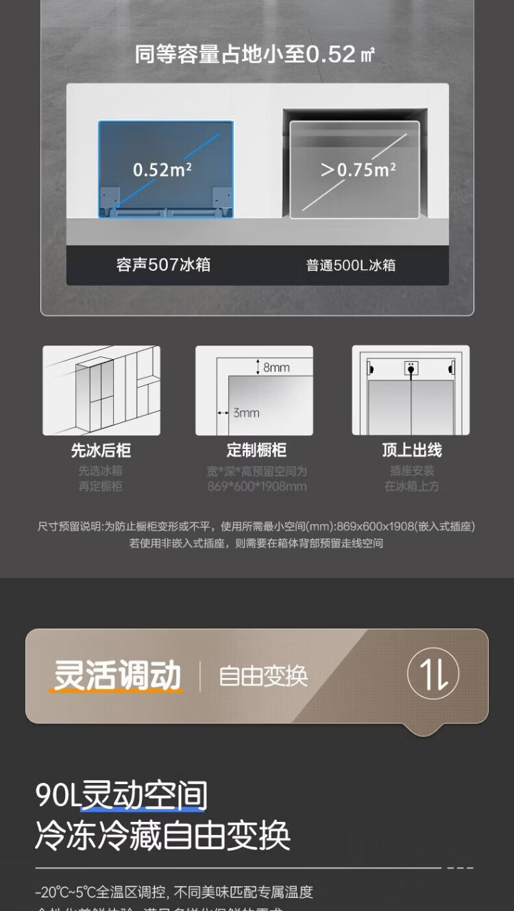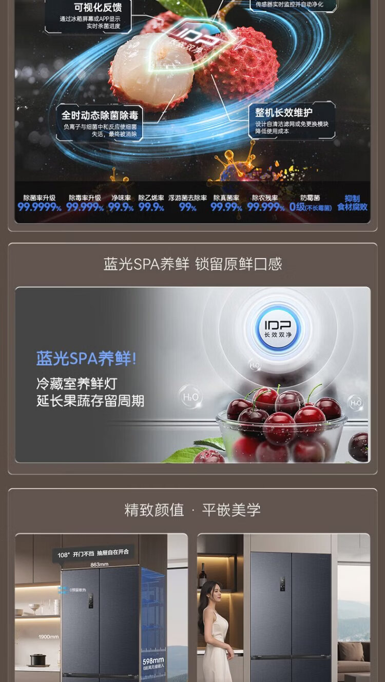 Rongsheng IDP net flavor 507L cross-door refrigerator active sterilization dual system ultra-thin zero embedded first-level energy efficiency air-cooled frost-free BCD-507E50CZLAD national subsidy dual system embedded | active sterilization | 507 cross