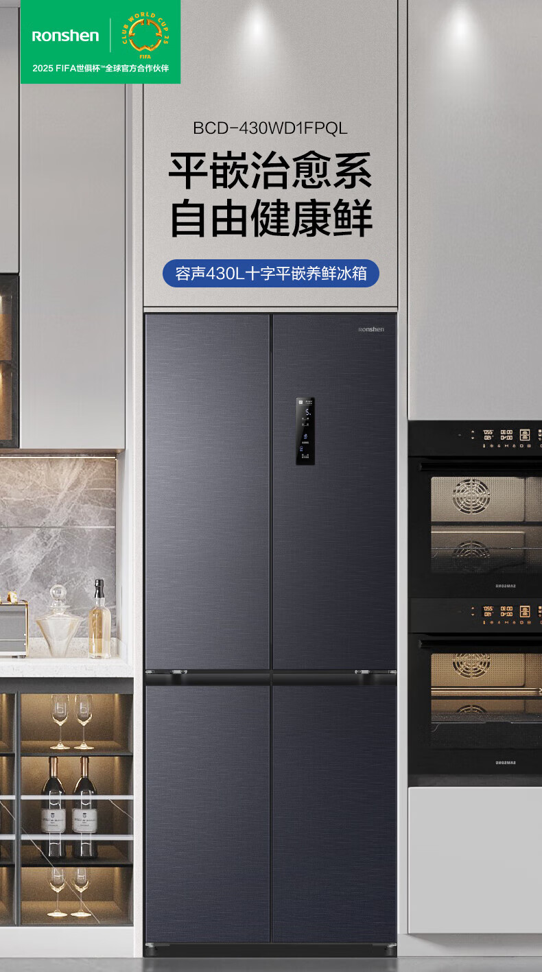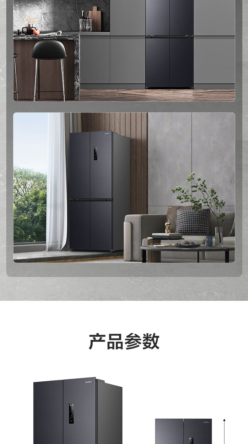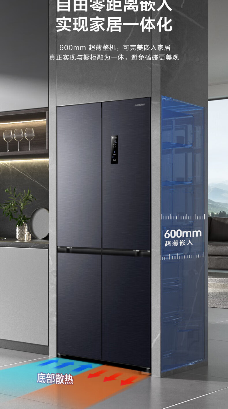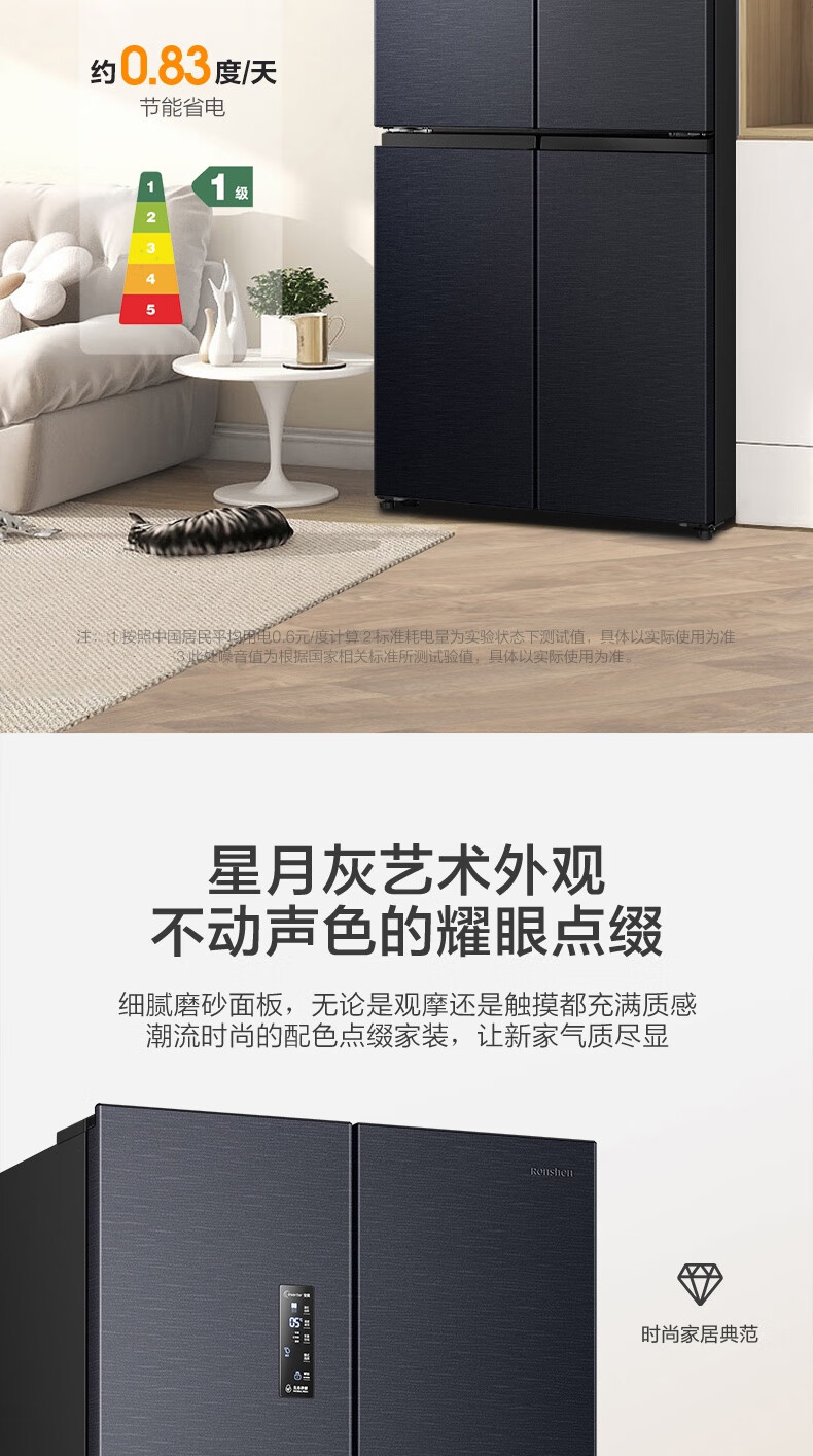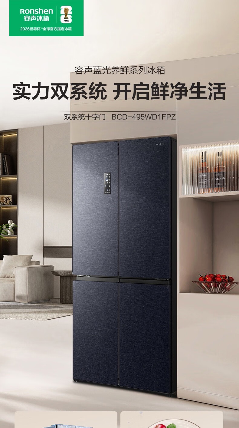 Ronshen Rongsheng cross door four-door double-door refrigerator first-class energy efficiency air-cooled frost-free household frequency conversion double cycle odor purification and sterilization 495 liters dual system active sterilization