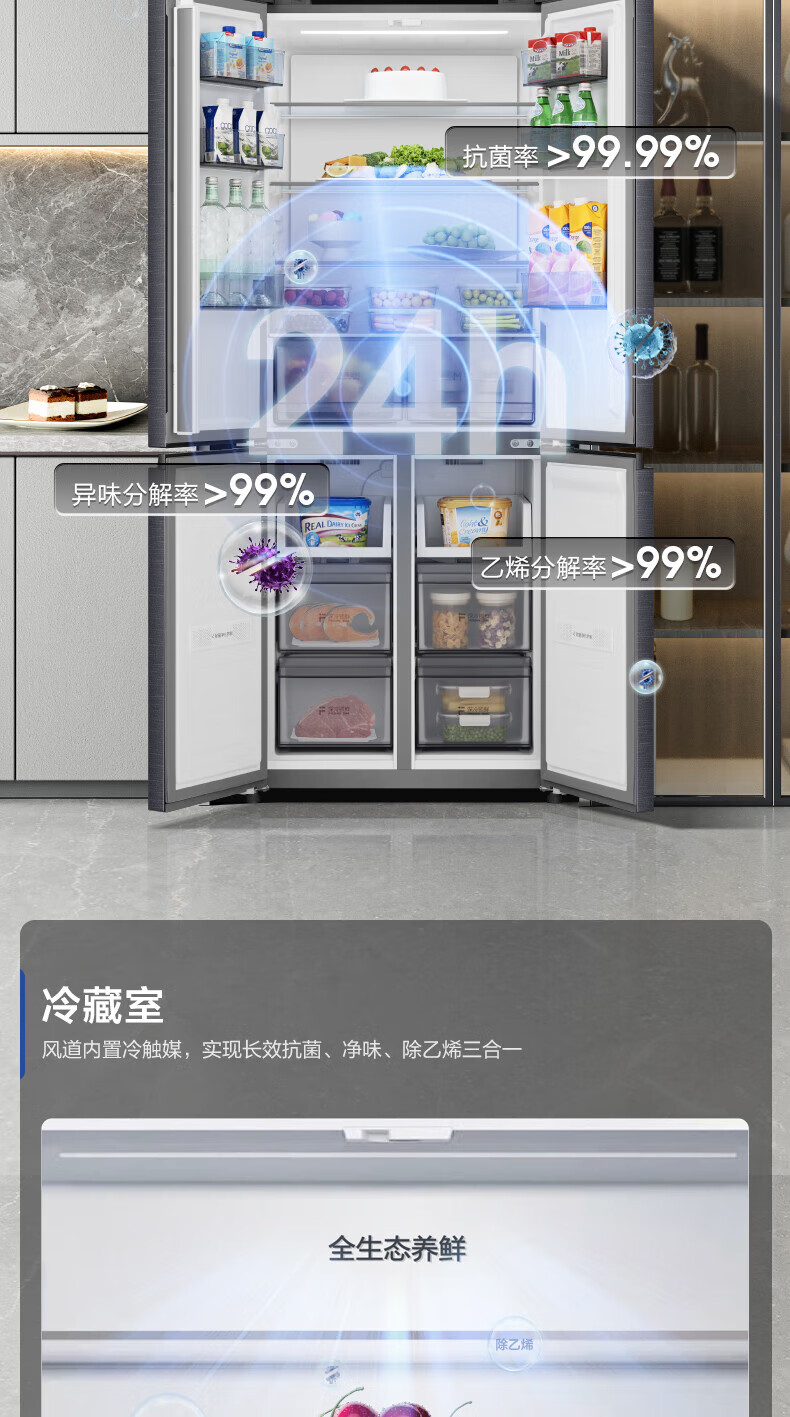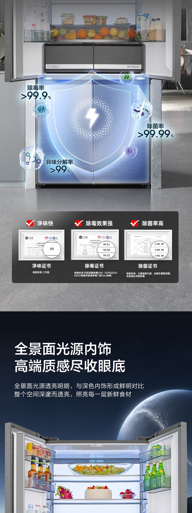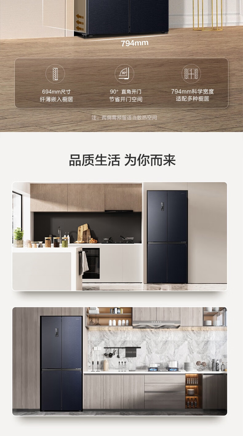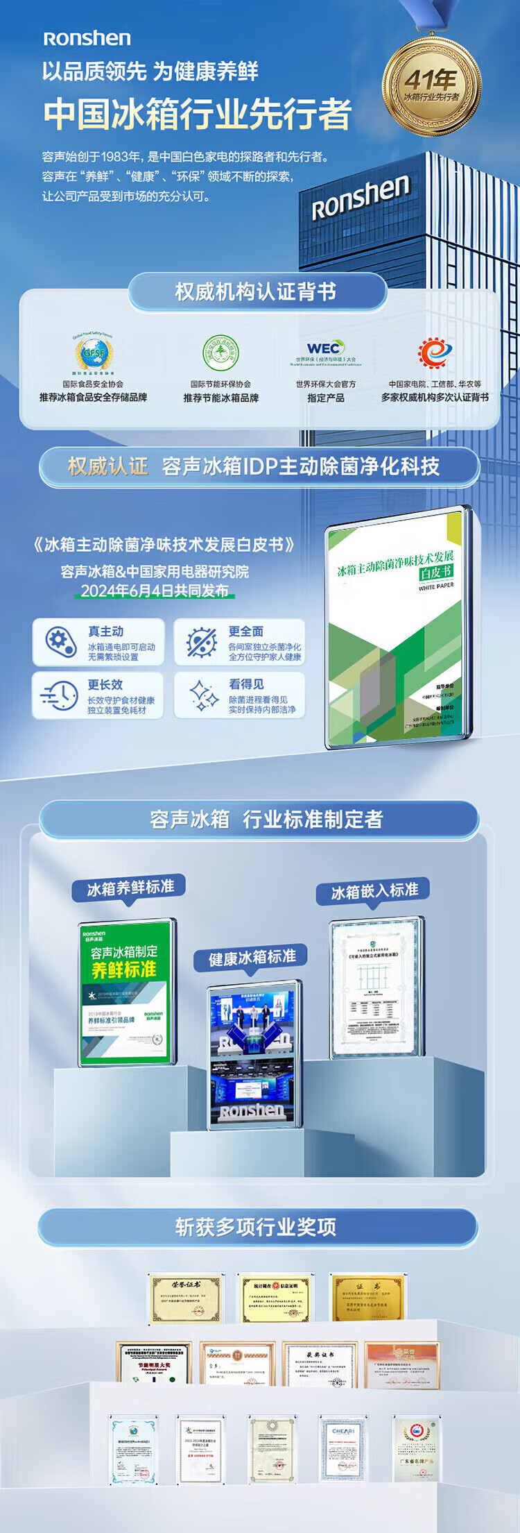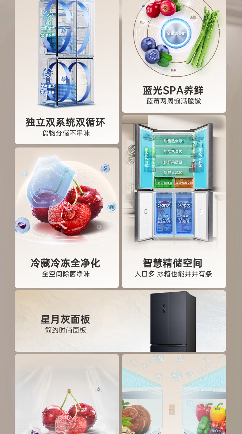 Ronshen Rongsheng cross door four-door double-door refrigerator first-class energy efficiency air-cooled frost-free household frequency conversion double cycle odor purification and sterilization 495 liters dual system active sterilization