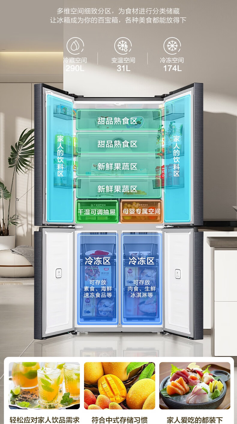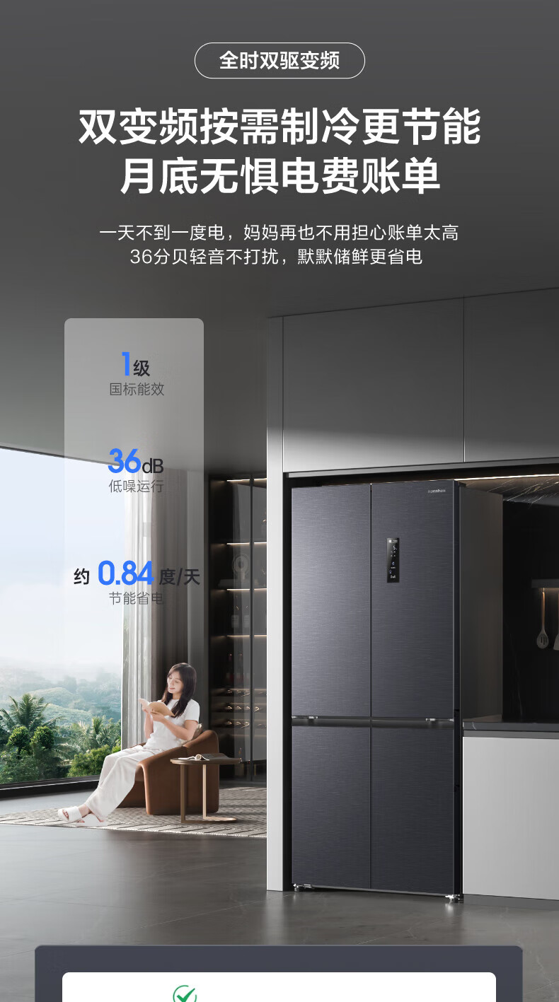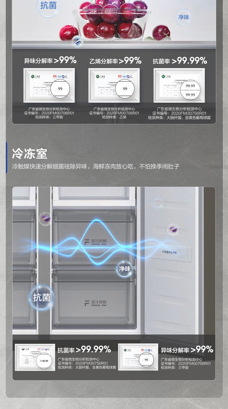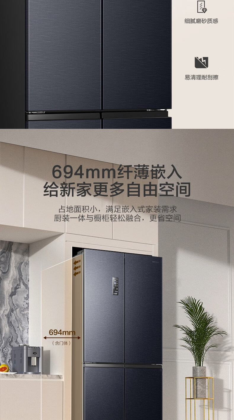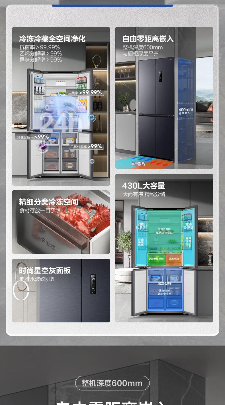 Ronshen Rongsheng cross door four-door double-door refrigerator first-class energy efficiency air-cooled frost-free household frequency conversion double cycle odor purification and sterilization 495 liters dual system active sterilization