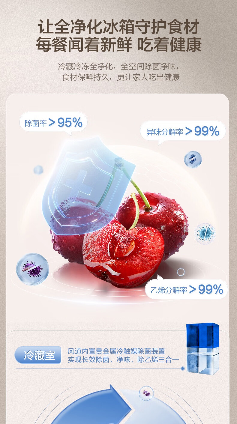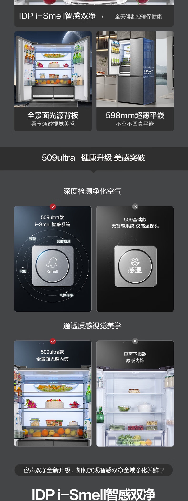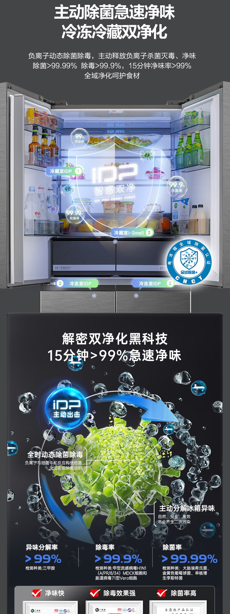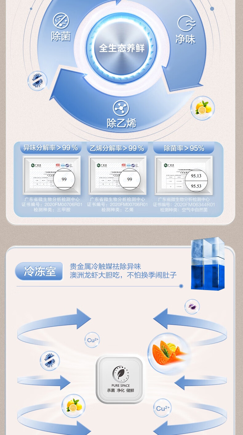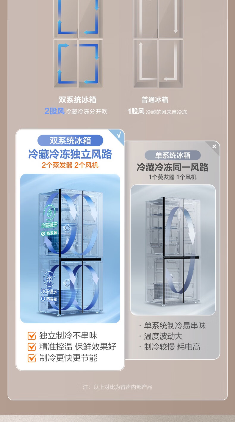 Ronshen Rongsheng cross door four-door double-door refrigerator first-class energy efficiency air-cooled frost-free household frequency conversion double cycle odor purification and sterilization 495 liters dual system active sterilization