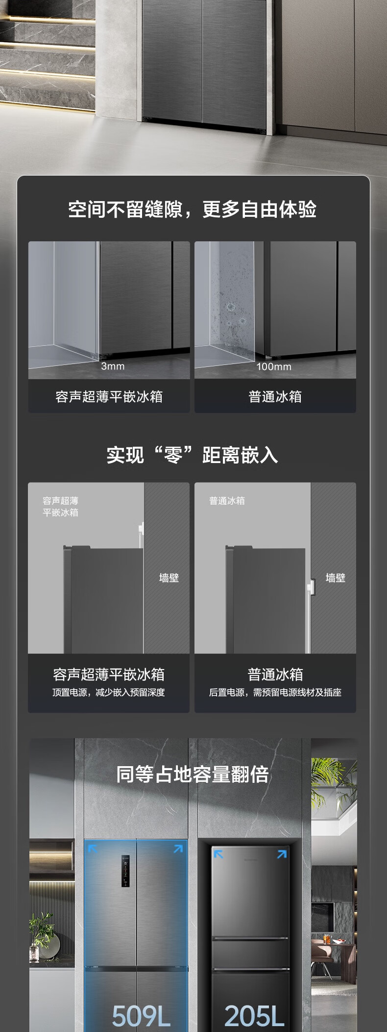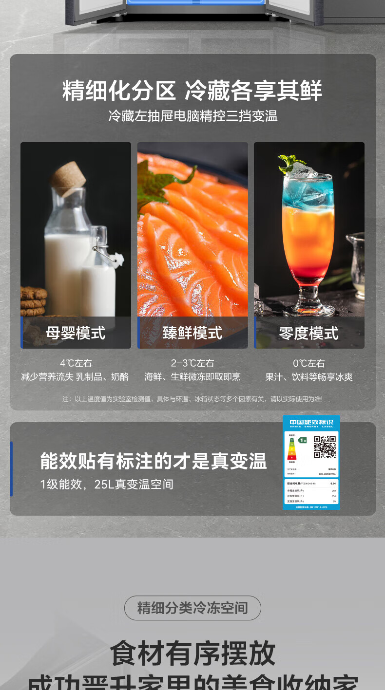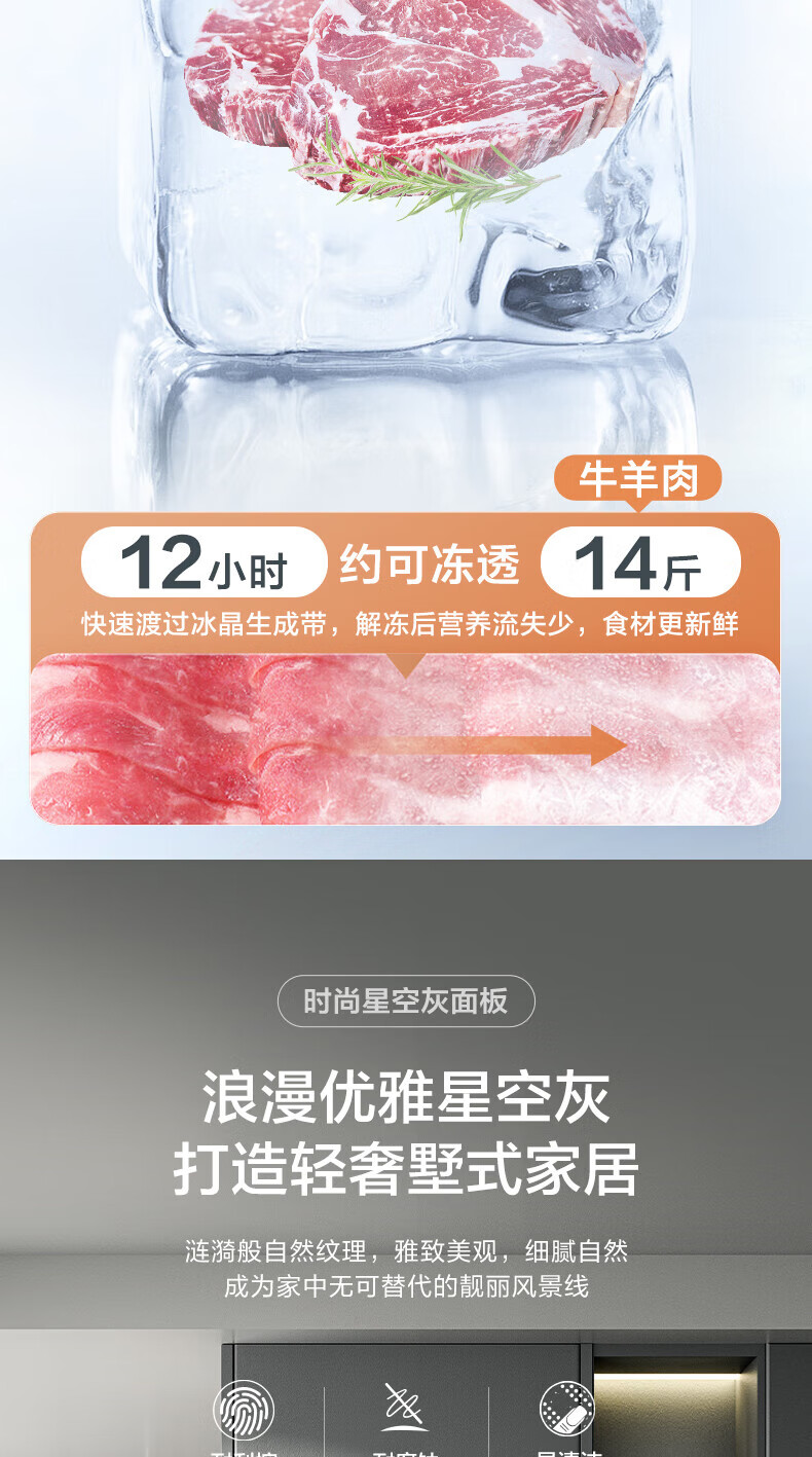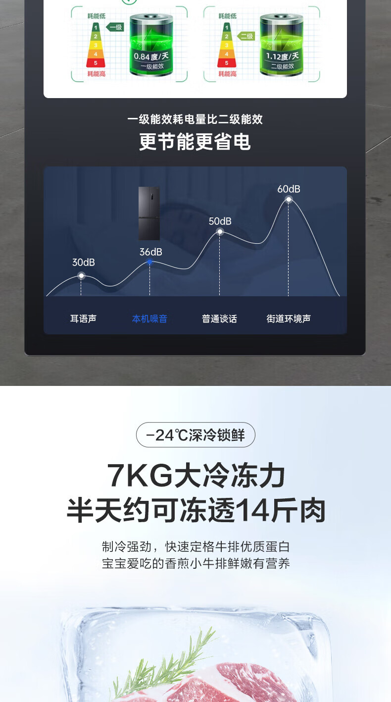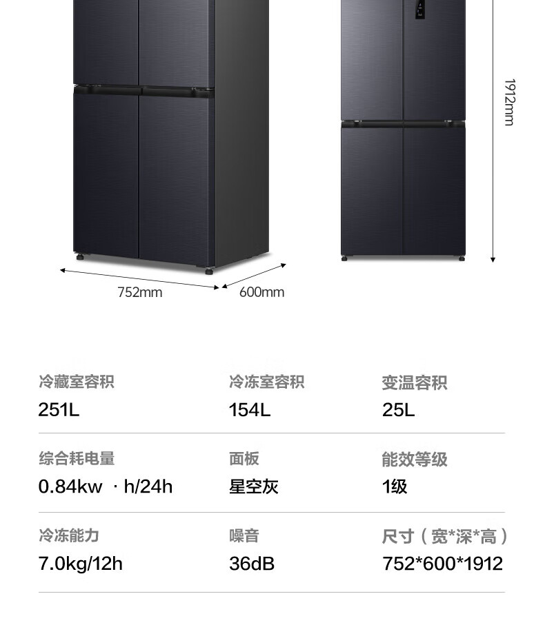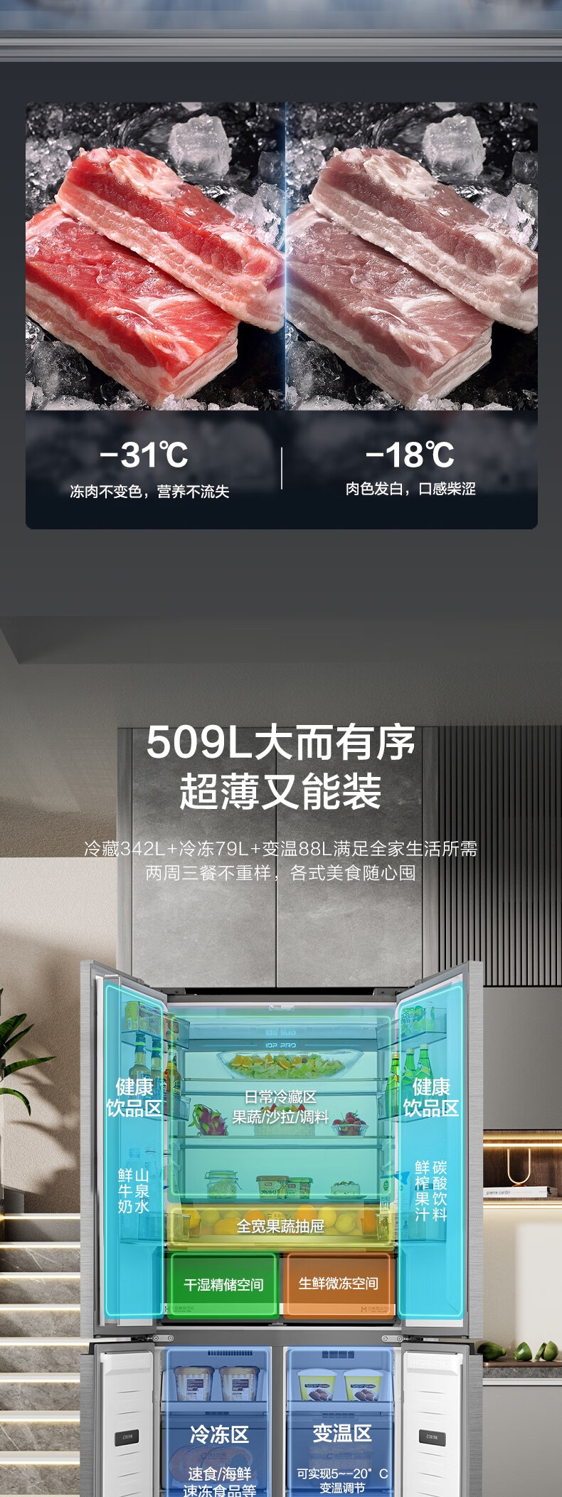 Ronshen Rongsheng cross door four-door double-door refrigerator first-class energy efficiency air-cooled frost-free household frequency conversion double cycle odor purification and sterilization 495 liters dual system active sterilization