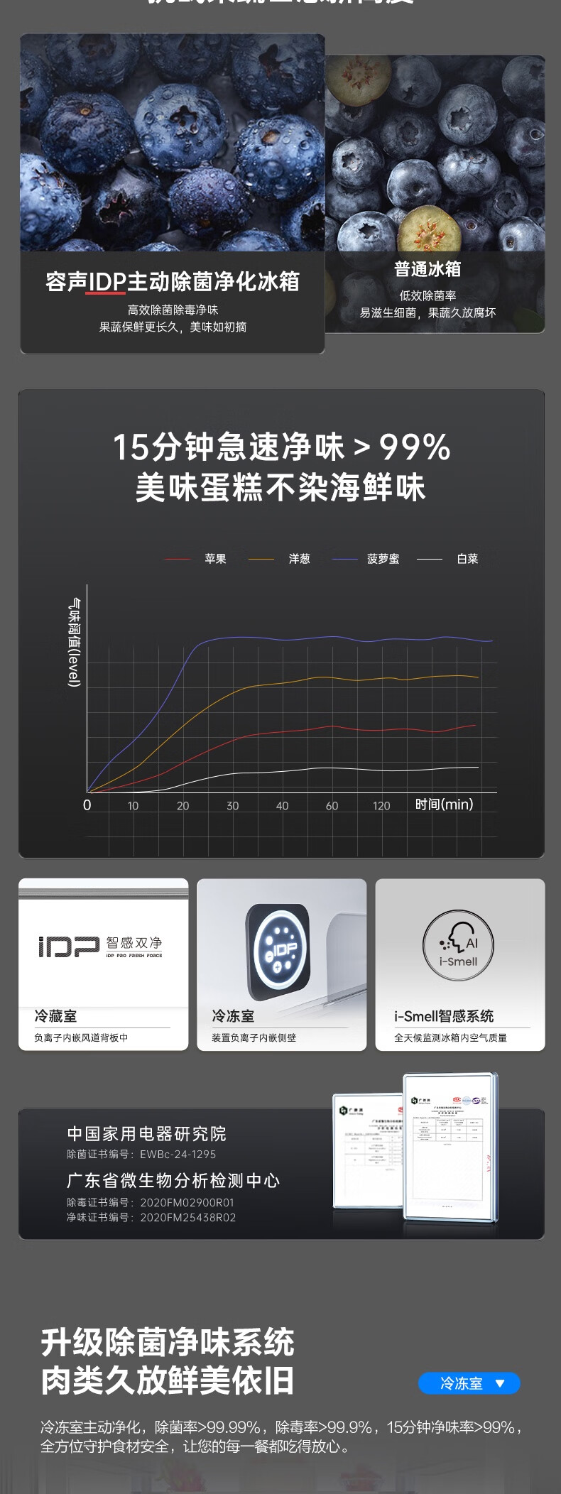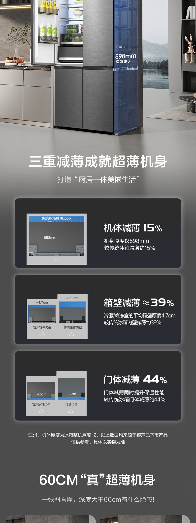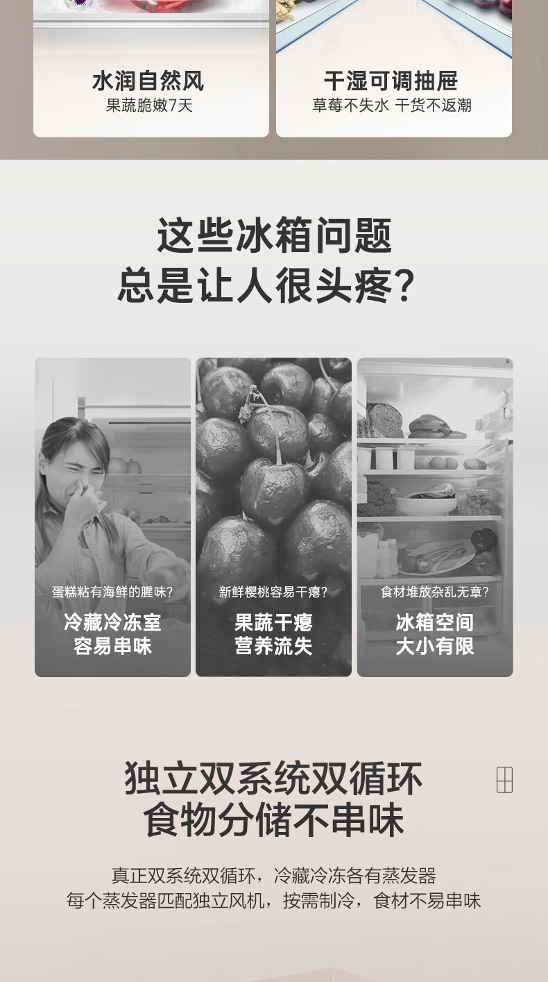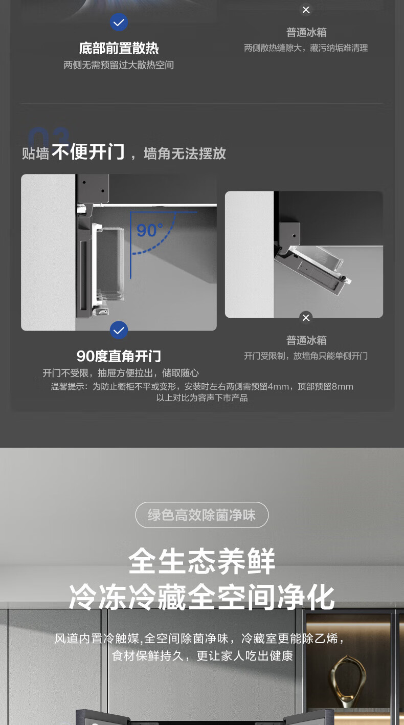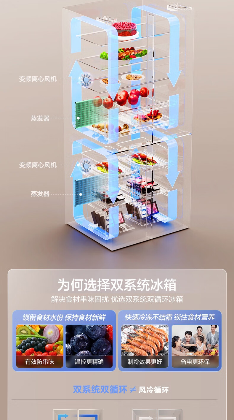 Ronshen Rongsheng cross door four-door double-door refrigerator first-class energy efficiency air-cooled frost-free household frequency conversion double cycle odor purification and sterilization 495 liters dual system active sterilization