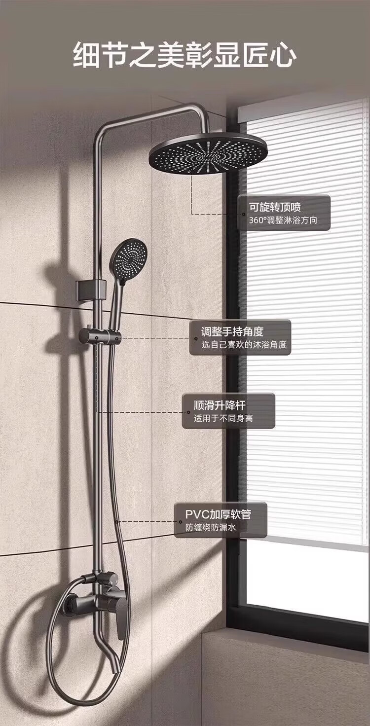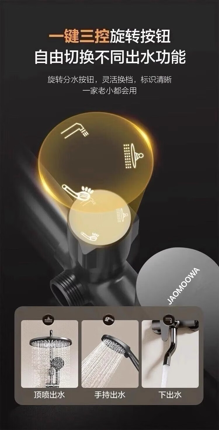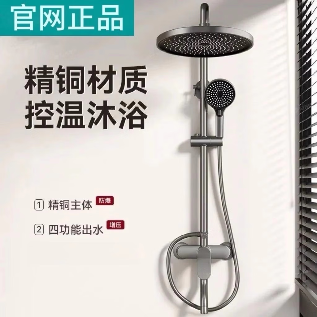 ARROW all-copper all-in-one shower set for home bathroom bathroom shower constant temperature booster nozzle faucet bright silver all-copper three-speed round shower set