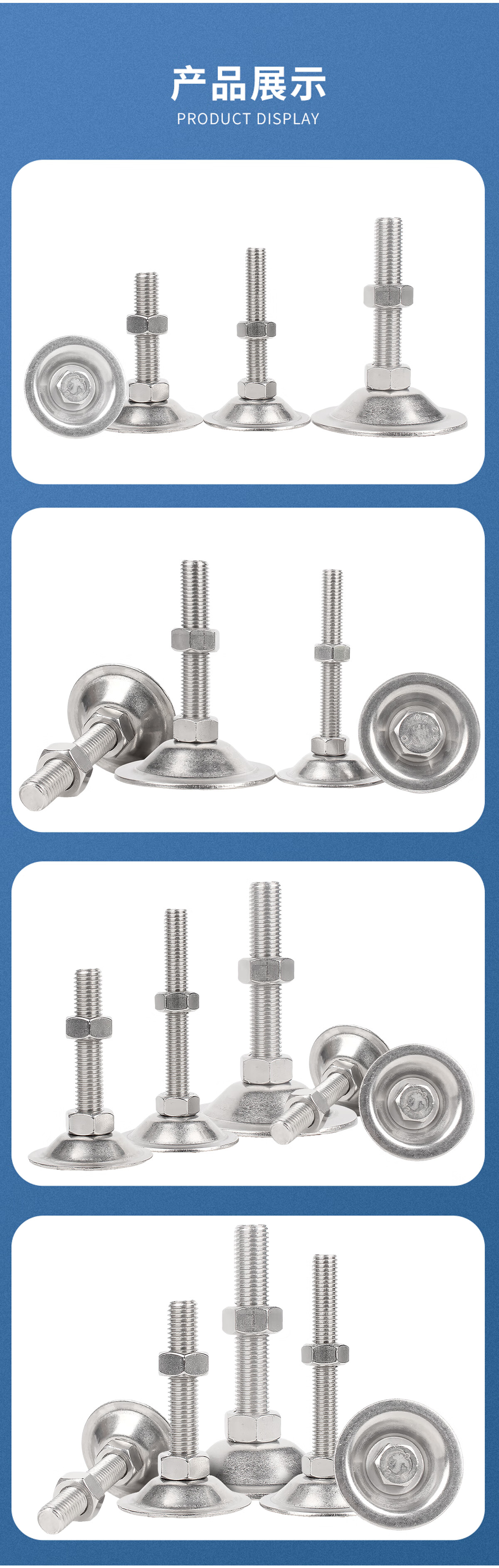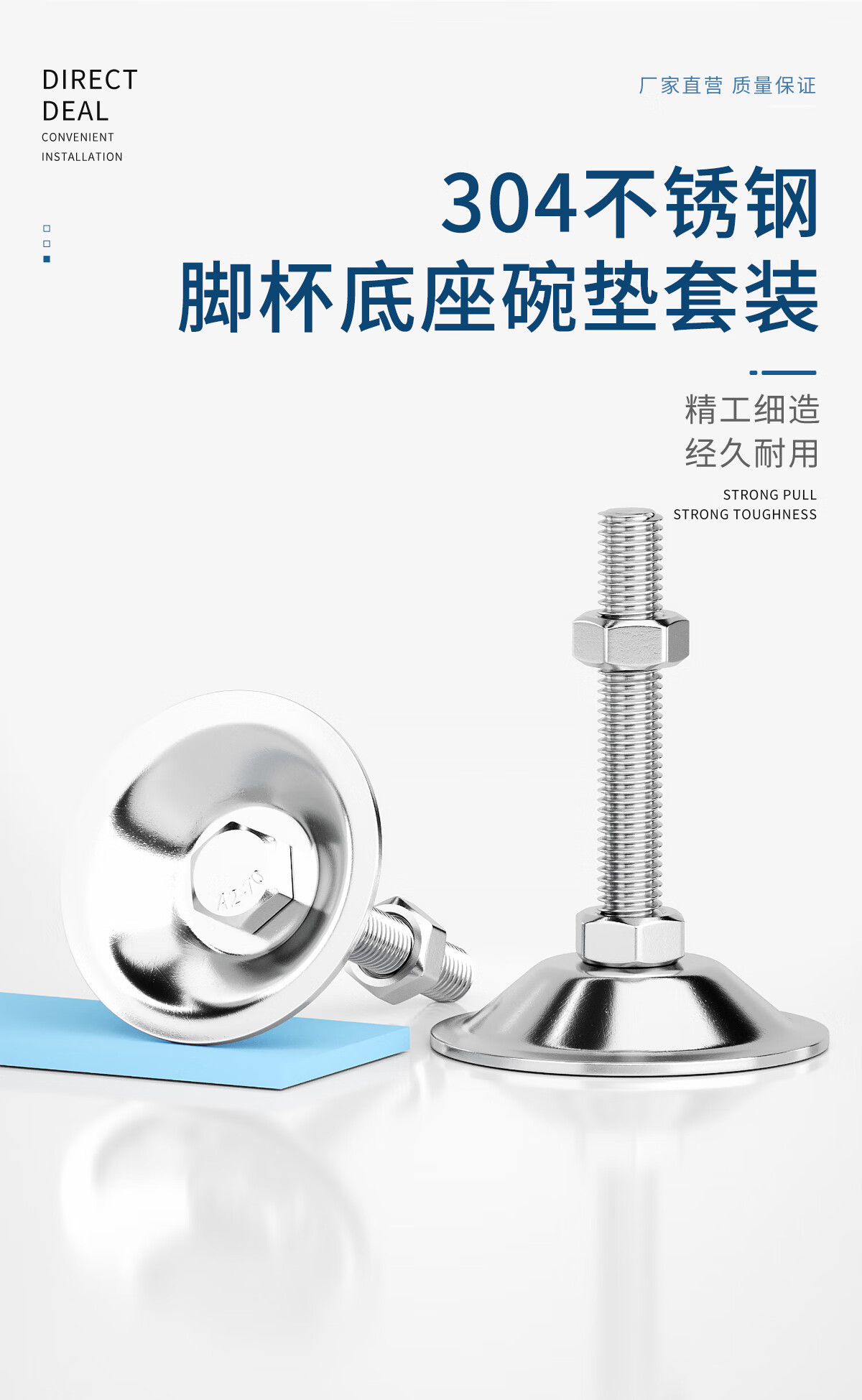 GUWANJI 304 stainless steel foot cup fixed adjustable cabinet furniture foot flat bottom support M5M6M8M10M12M16M20 60xM12x160mm 1 set
