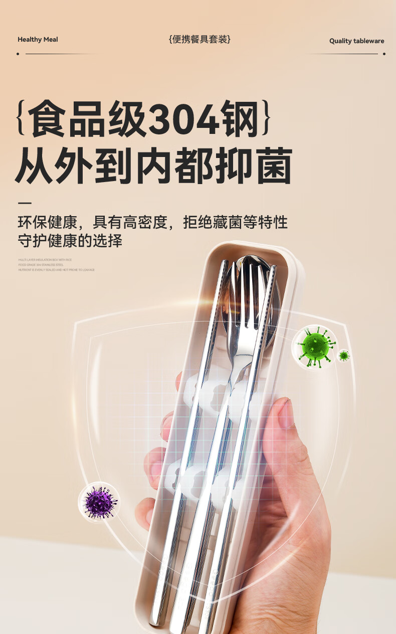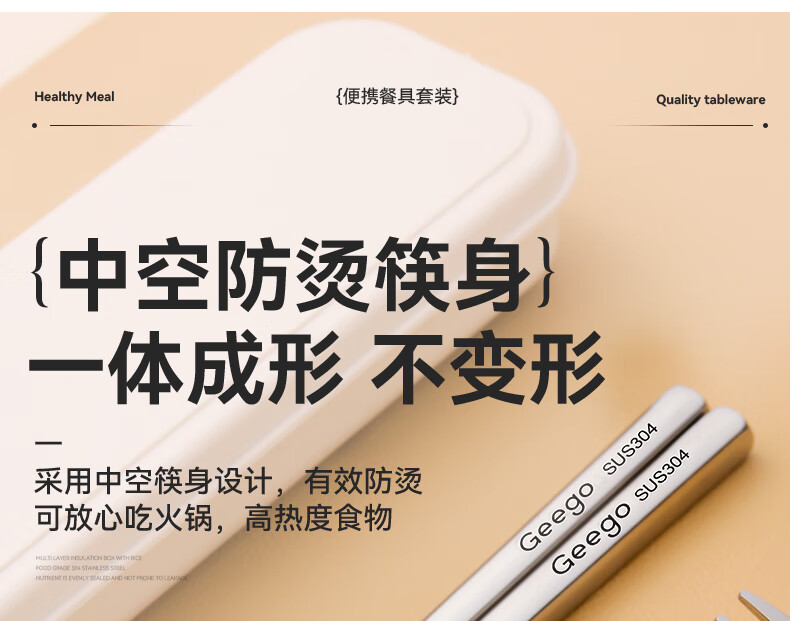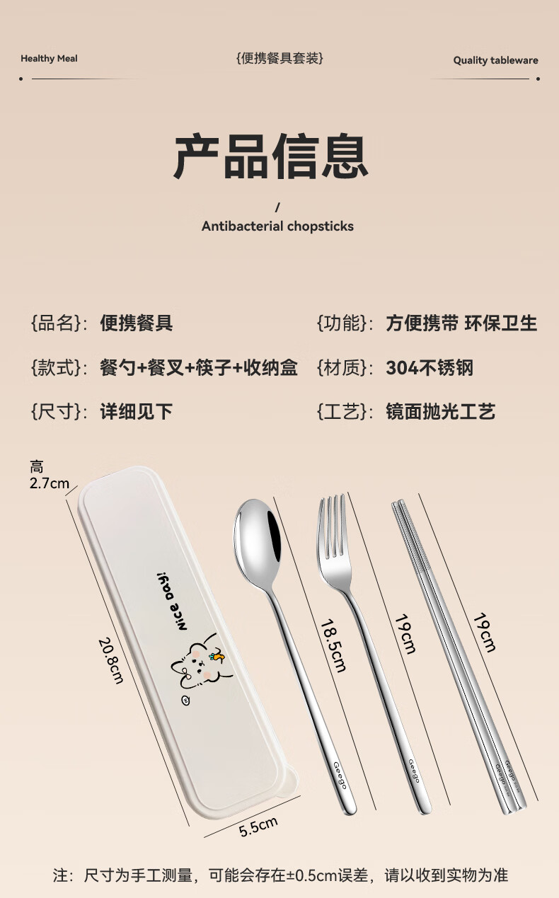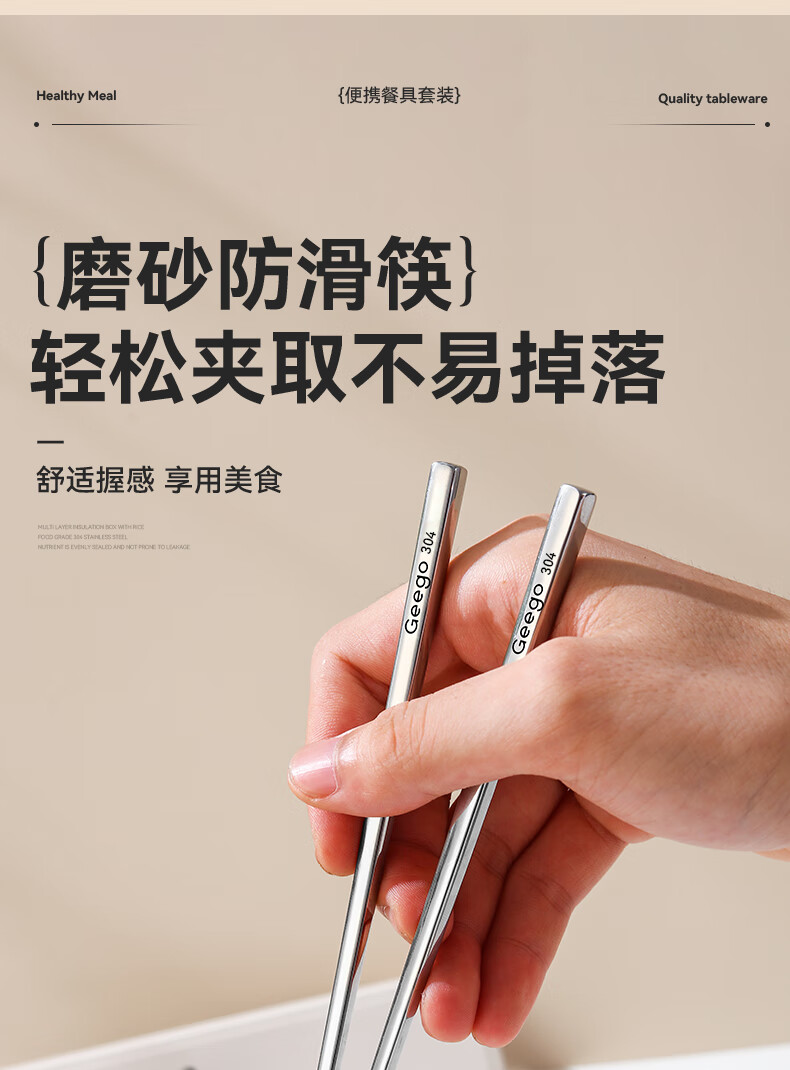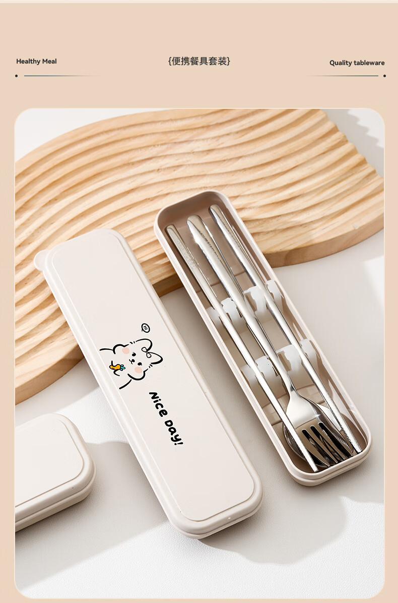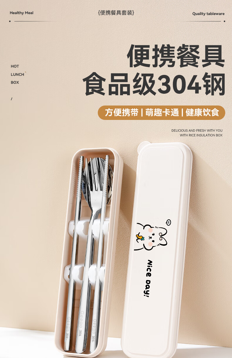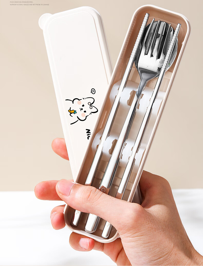 GEEGO304 stainless steel chopsticks and spoon set portable tableware set for office workers and students portable storage box 304 steel spoon and chopsticks + pp box puppy