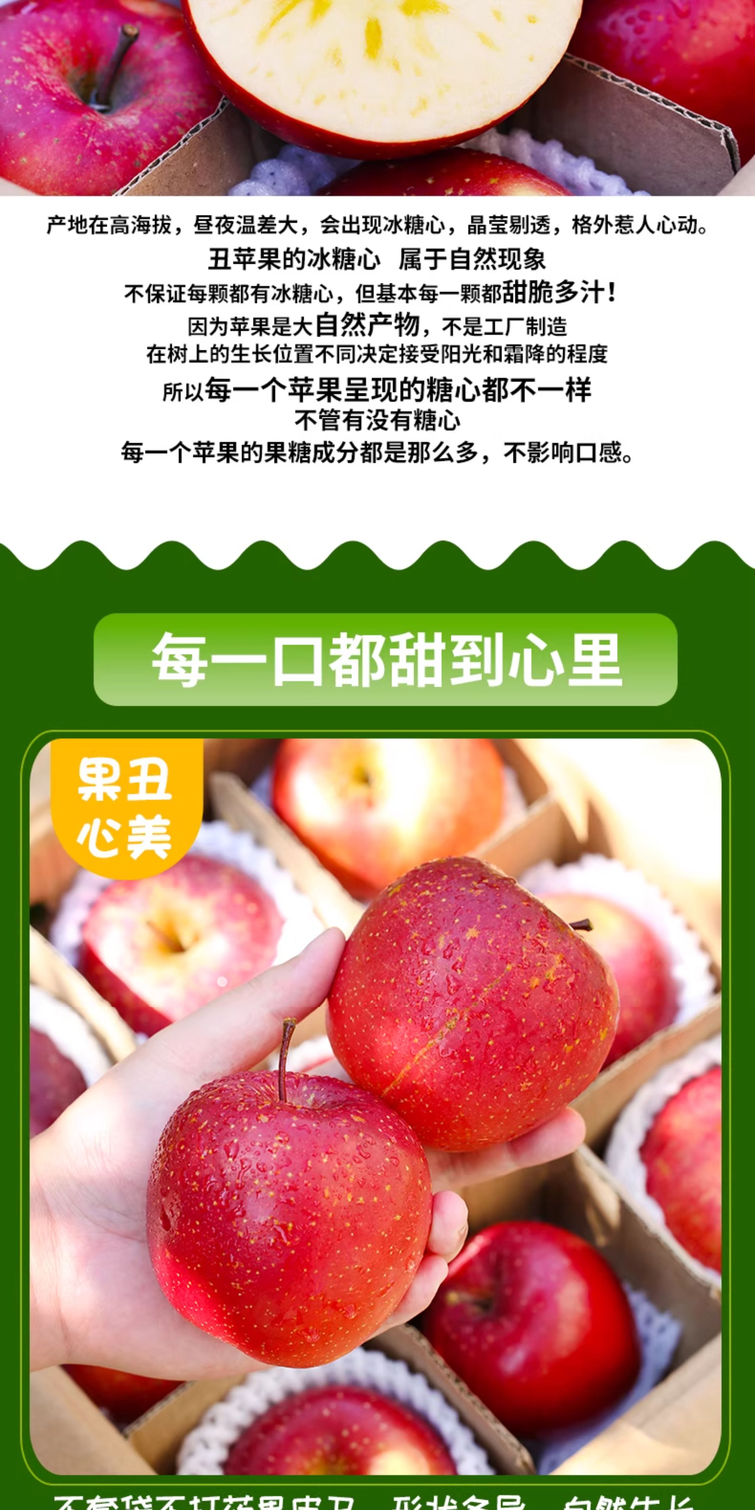 Authentic Yunnan Zhaotong Rock Candy Heart-Ugly Apple Fresh Fruit Zhaotong Apple Seasonal Crisp Sweet Fruit Origin Straight Hair 5 Jin 80-85mm Large Fruit l High Cost Performance