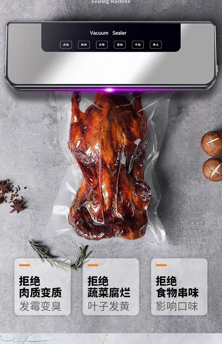 Vacuum sealing machine imported from Germany, wet and dry, household, large suction, fully automatic sealing machine, commercial, no bag selection, UV sterilization + (free 20*25) 100 bags