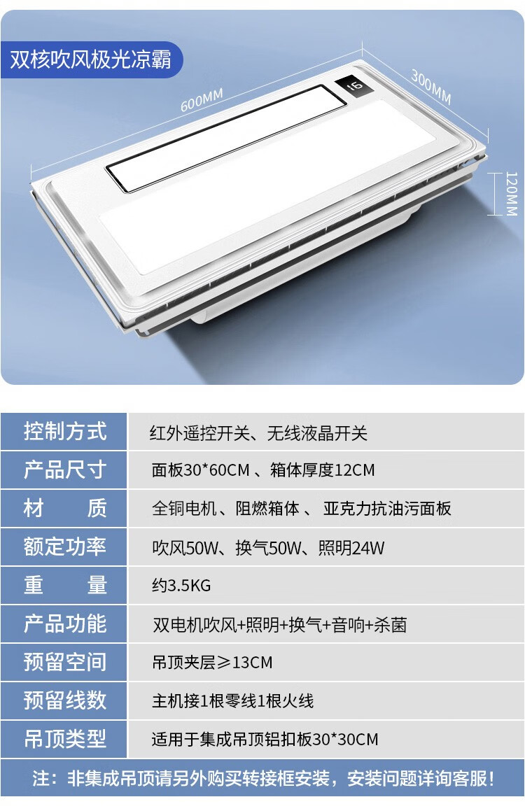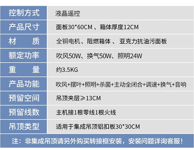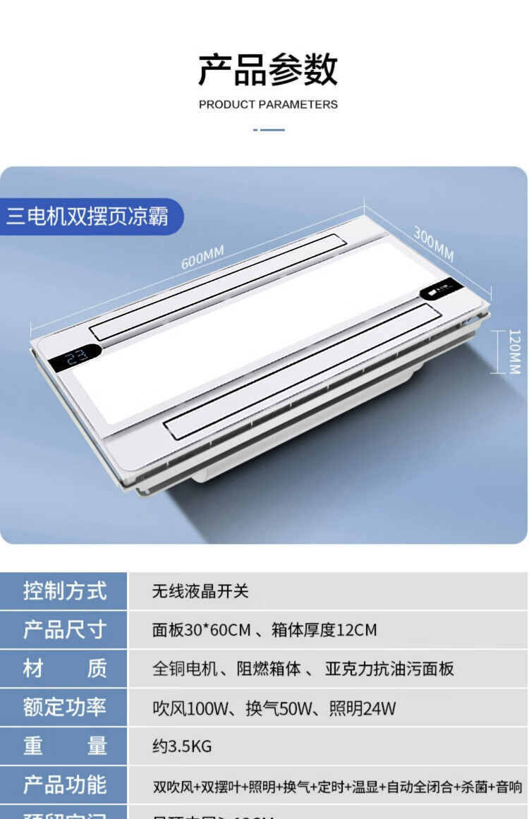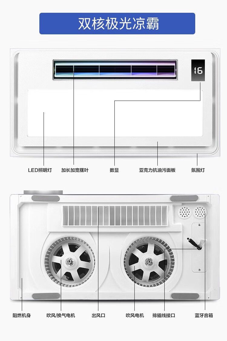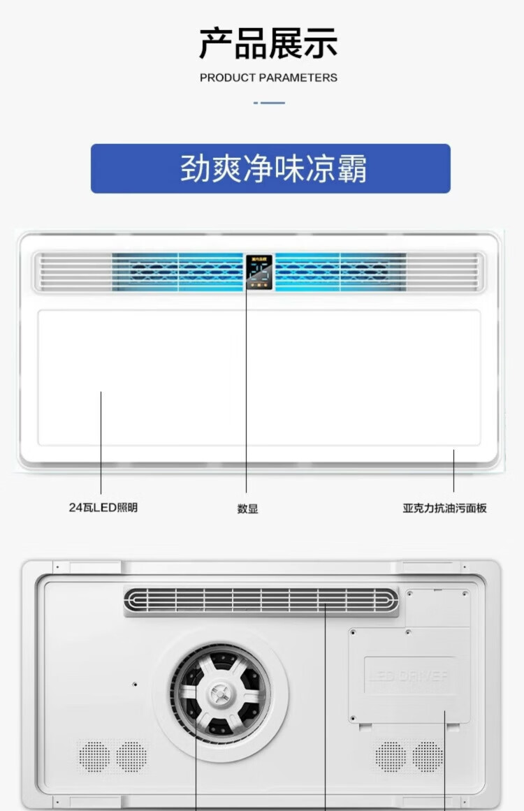 Opda Smart Kitchen Special Cooler Cooler Ceiling Embedded Lighting Ventilation Air Conditioner Cooler Three Motors Extra Large Double Blower Double Swing Page *Nine Functions 120mm High