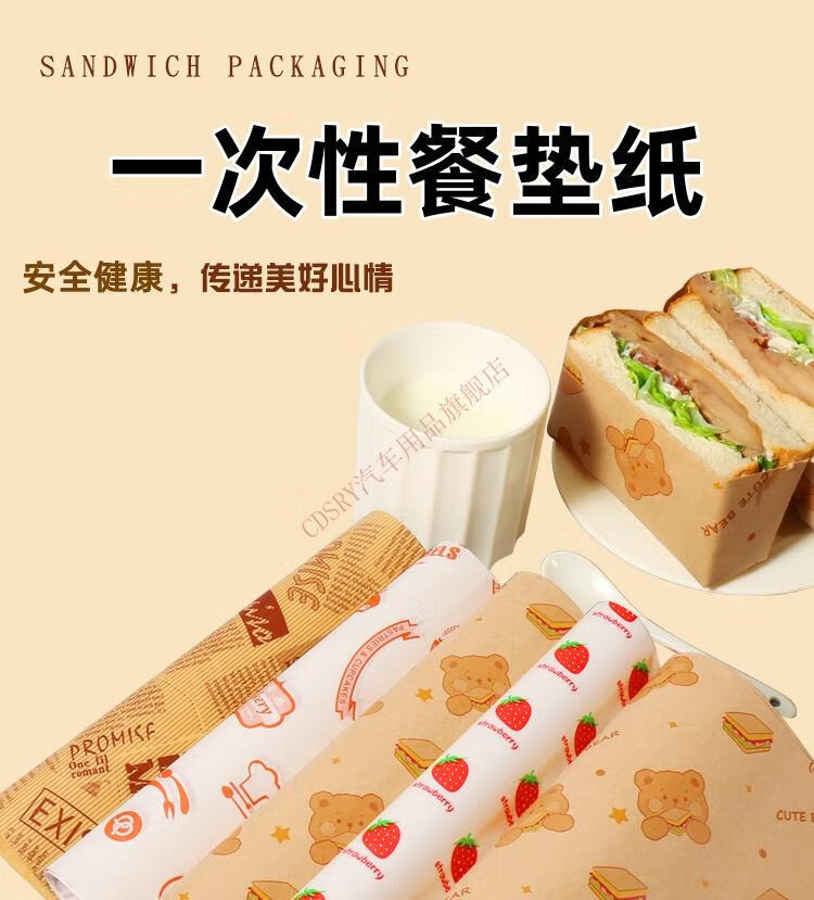 CLCEY disposable placemat paper thickened large coated anti-penetration western food dormitory office takeaway dining table paper kraft newspaper 50 sheets placemat paper (including stickers)