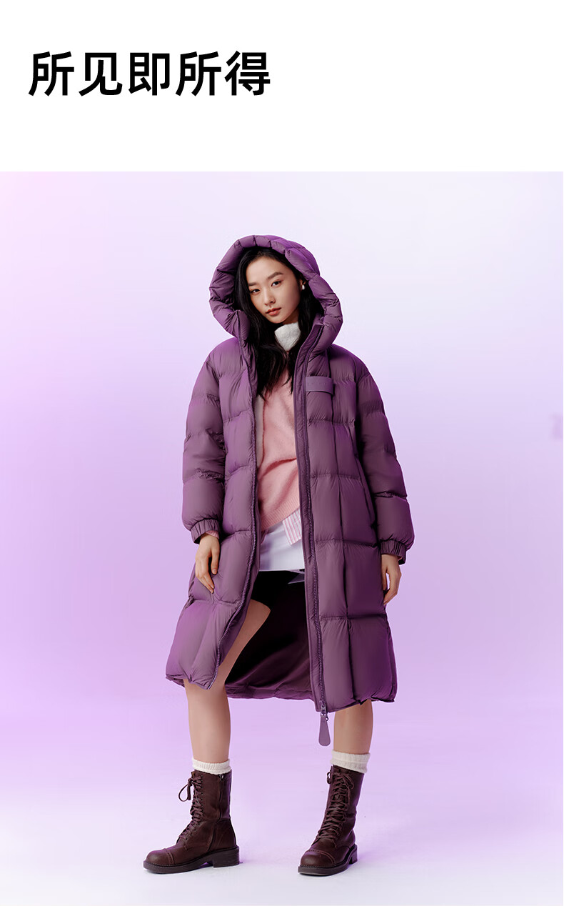 Qianrenggang Ding Yuxi's same style 2025 winter new down jacket, goose down, same style cold weather clothing for men and women Y318179Y Prune Purple S (160) Recommended 110-120 catties