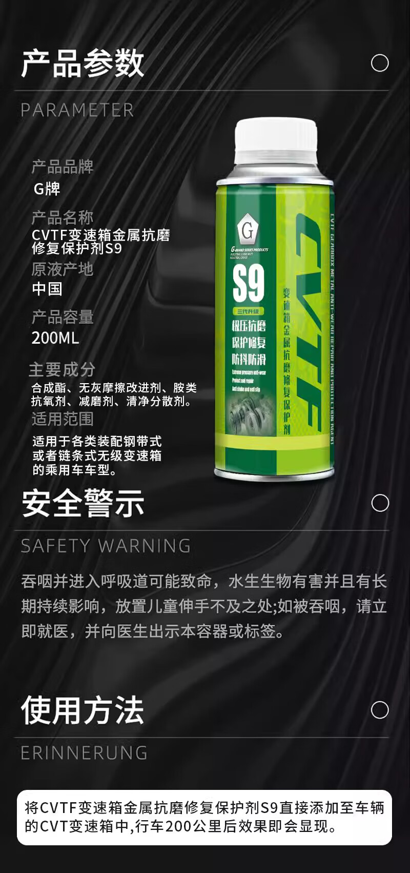 GS9 upgraded version of CVT lubricated continuously variable transmission anti-wear repair protective agent additives to improve friction and slipping S9CVT continuously variable transmission special 200ml*1 bottle