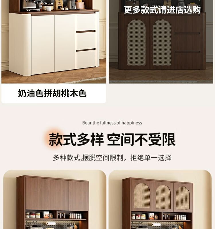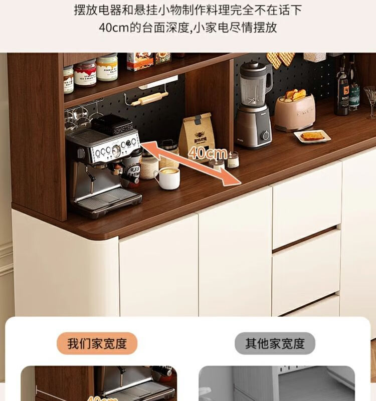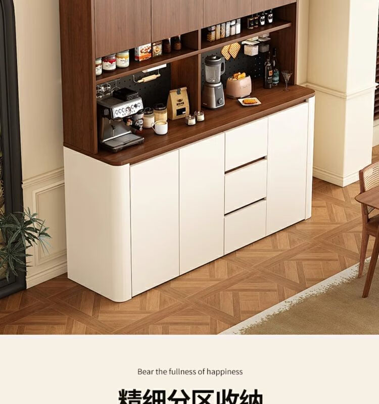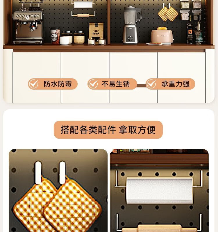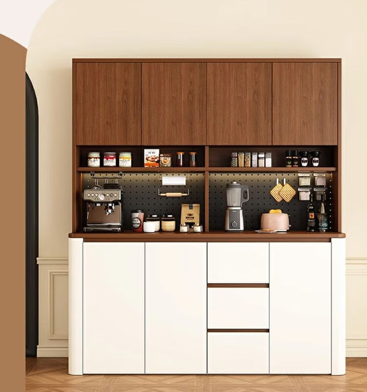 Quanyou Furniture, second-hand sideboard, wine cabinet, storage rack, multi-functional perforated board against the wall, same style as You Furniture, 120*40*200, walnut+cream, high style