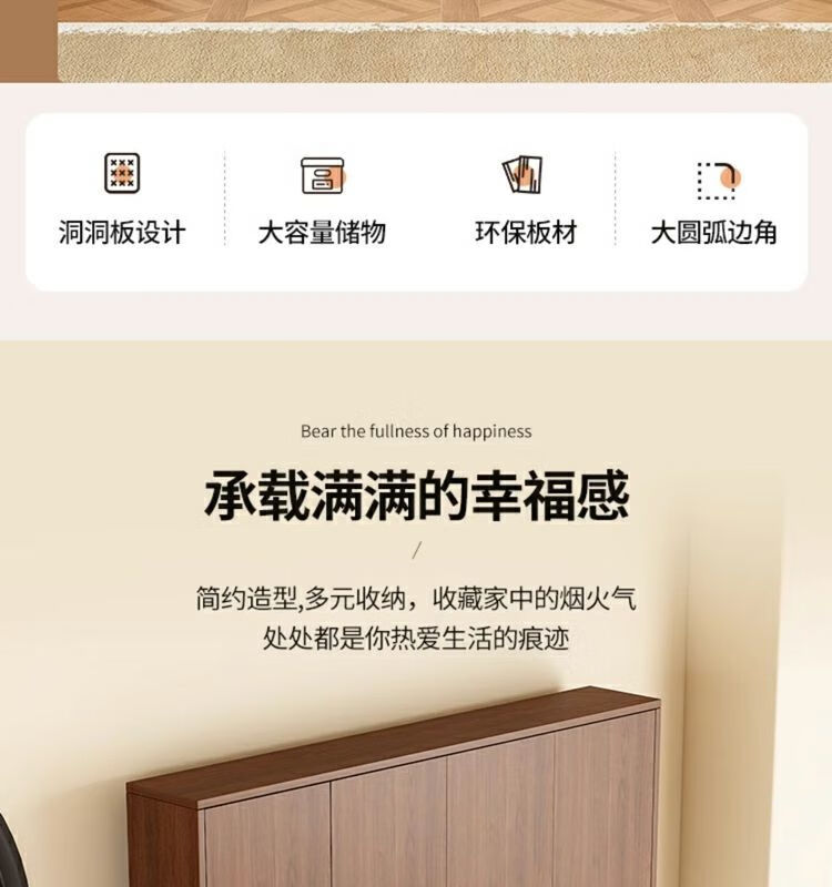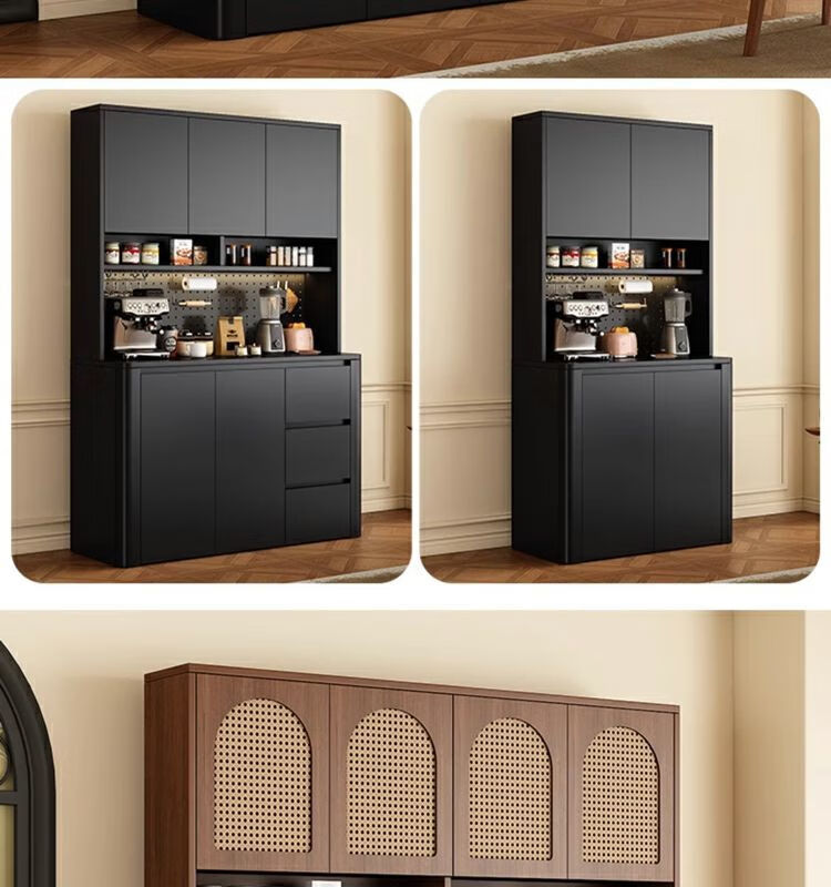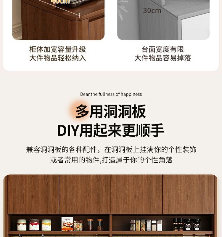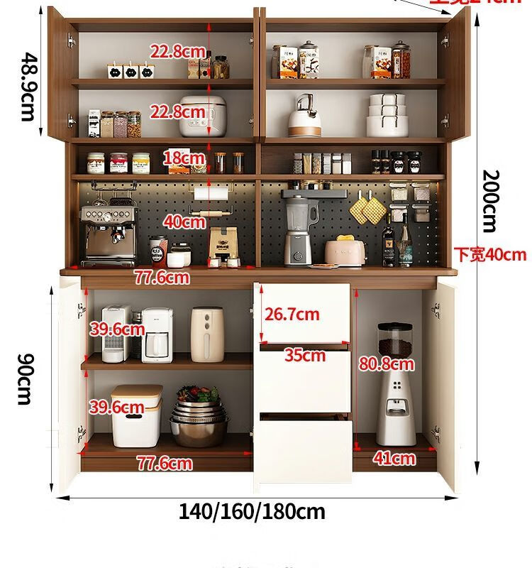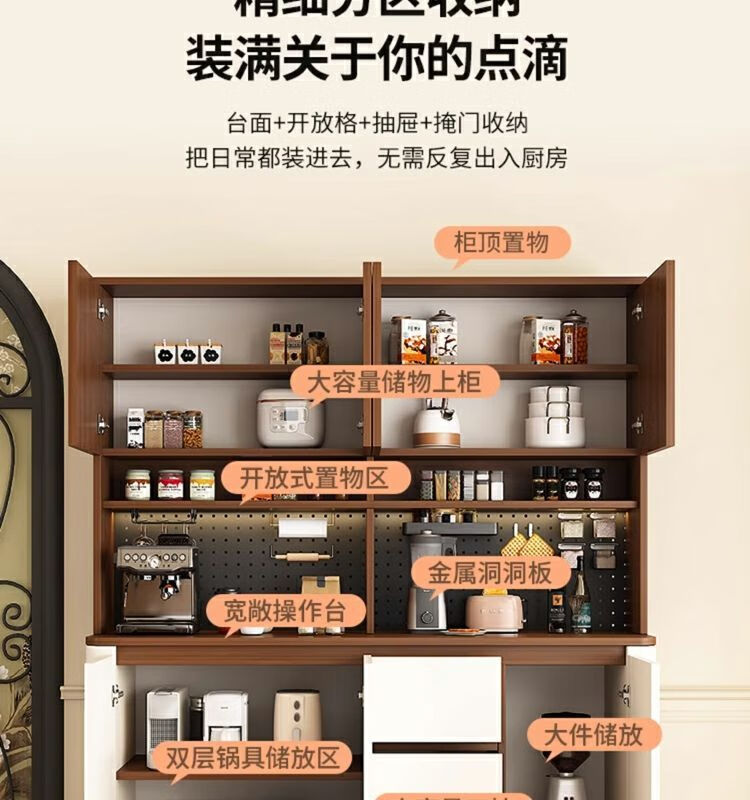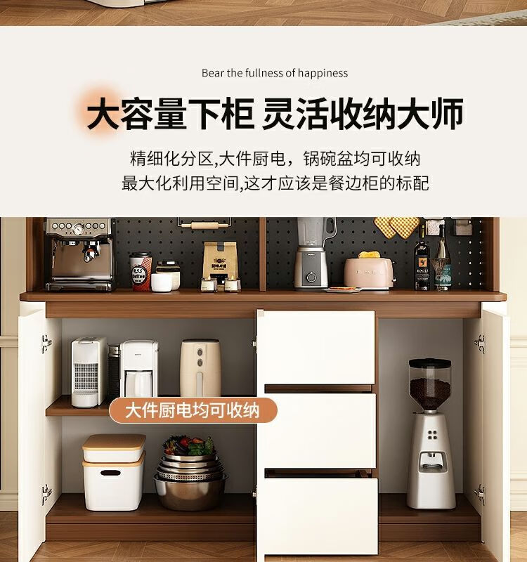Quanyou Furniture, second-hand sideboard, wine cabinet, storage rack, multi-functional perforated board against the wall, same style as You Furniture, 120*40*200, walnut+cream, high style