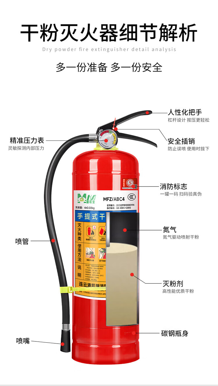 Mo Peng dry powder fire extinguisher 5kg new national standard 2025 new 5kg fire protection factory shop household portable 4KG 2025 new national standard-1KG dry powder fire extinguisher