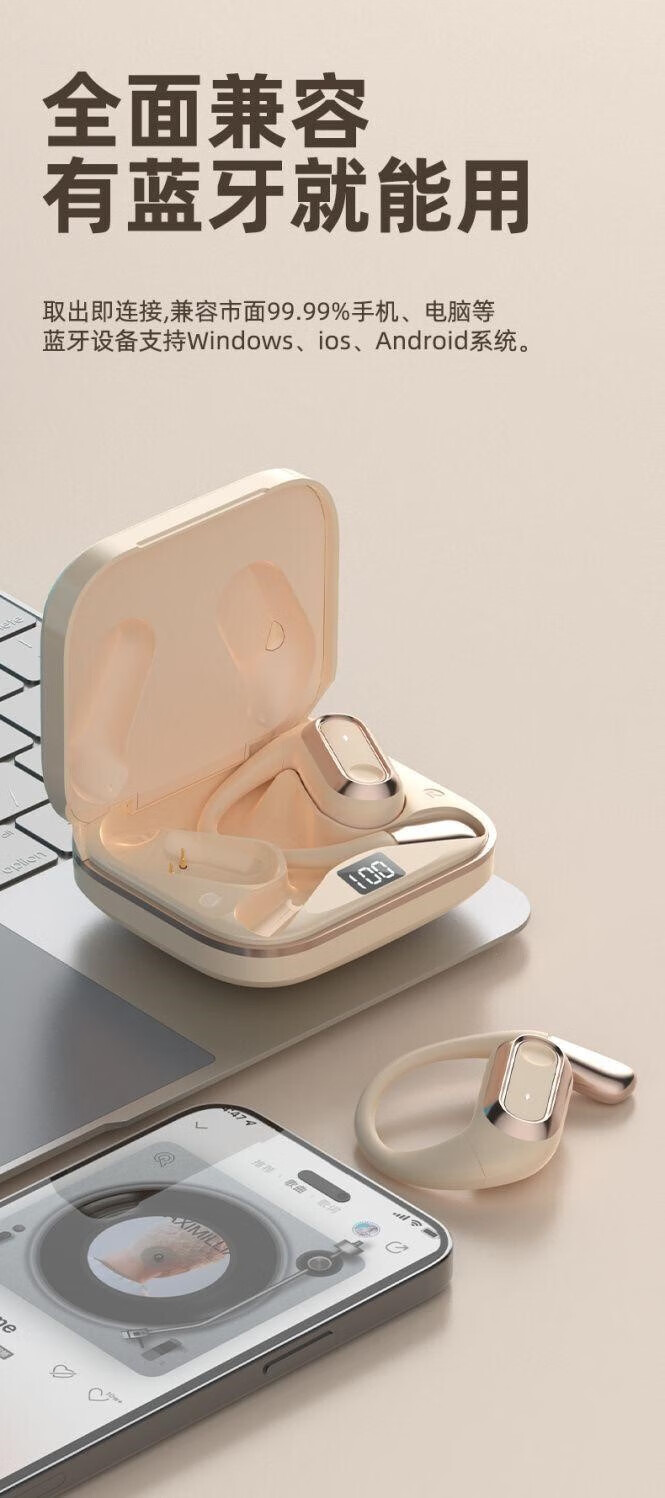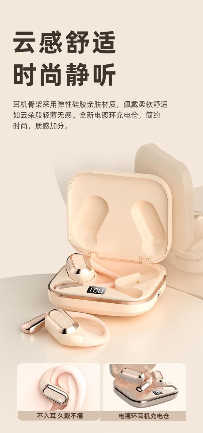 Huawei mobile phones are suitable for Berlin Sound wireless Bluetooth headsets, ear-mounted Ai voice control bone conduction, non-in-ear noise reduction, black version smart Ai voice control Bluetooth 5