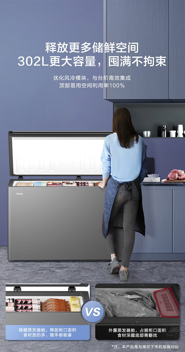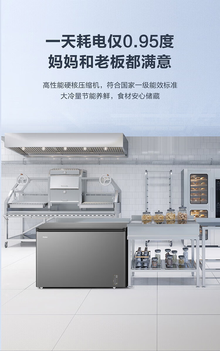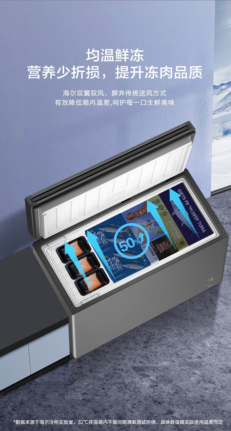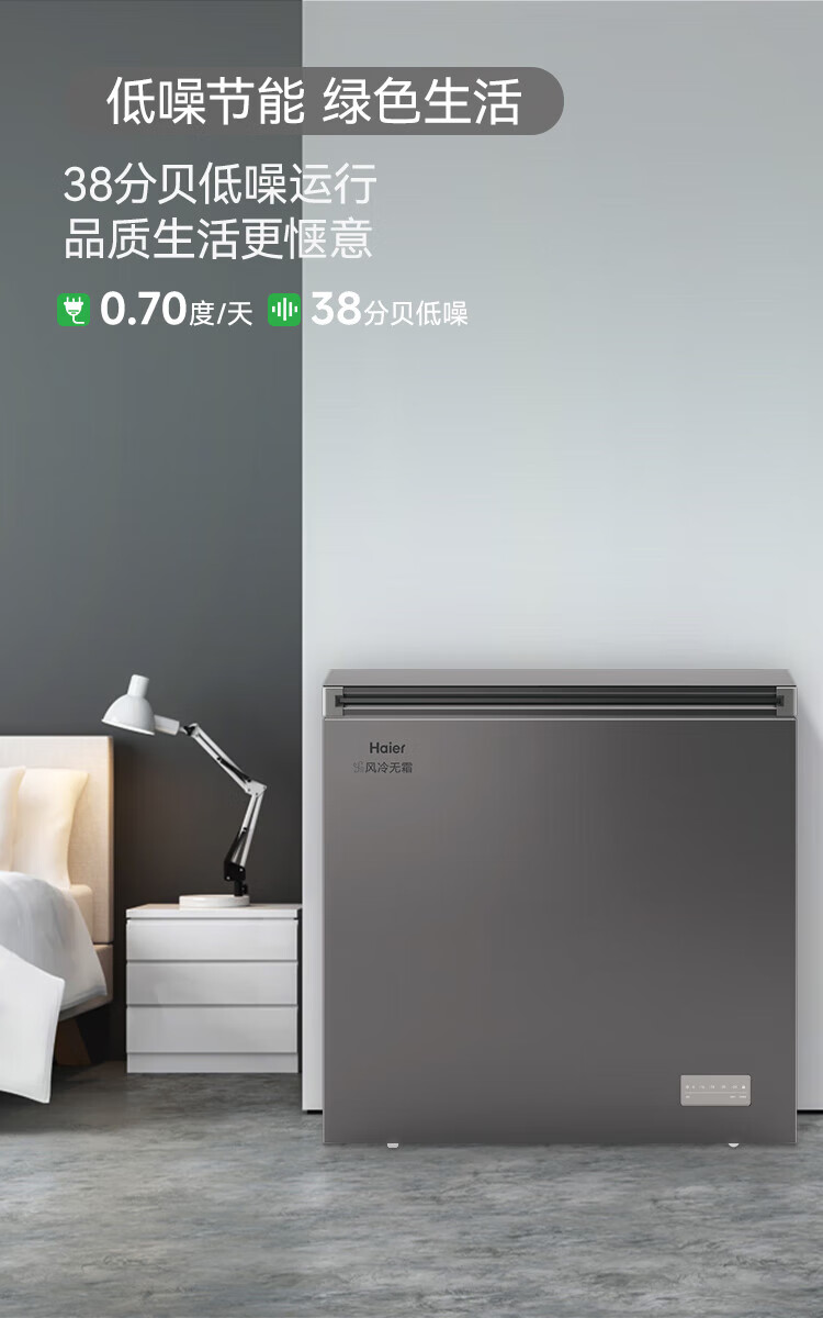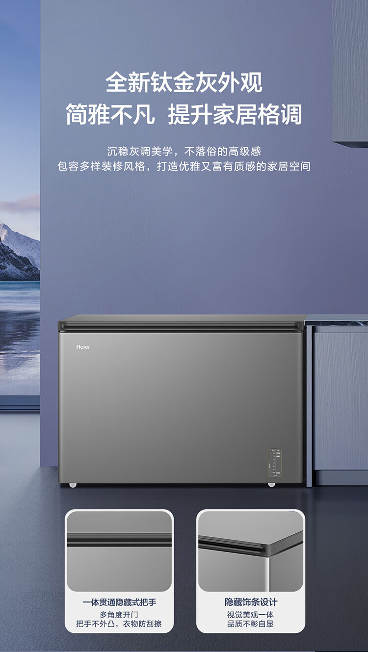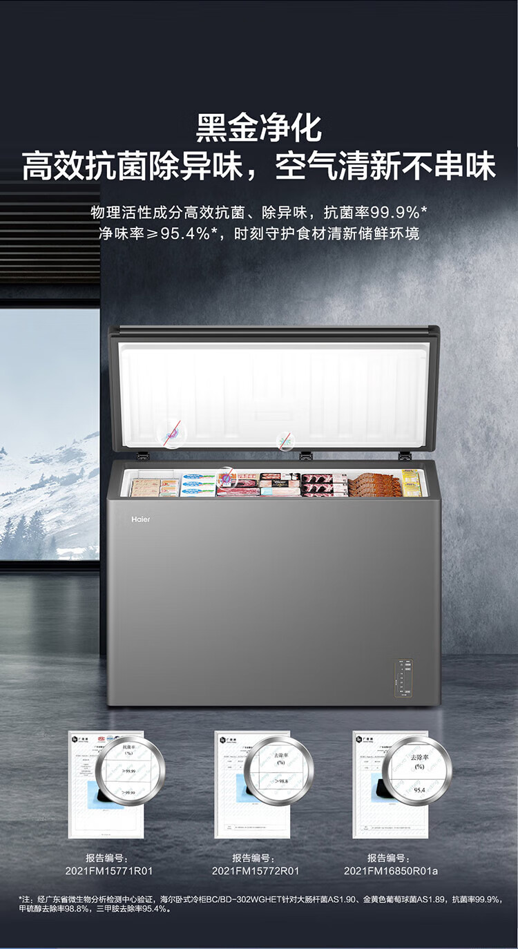 Haier air-cooled frost-free freezer 159/201/242/302L household freezer horizontal freezer deep-freezing quick-freezing refrigeration and freezing convertible no need for defrost bacteriostatic first-level energy efficiency and energy saving milk 132 liters air-cooled frost-free 150h power-off protection electronic temperature regulation