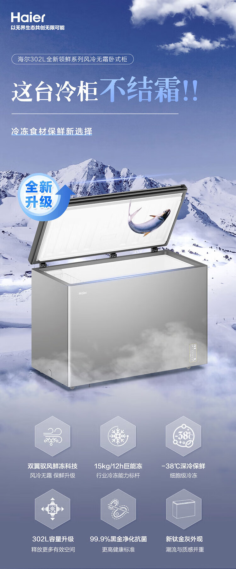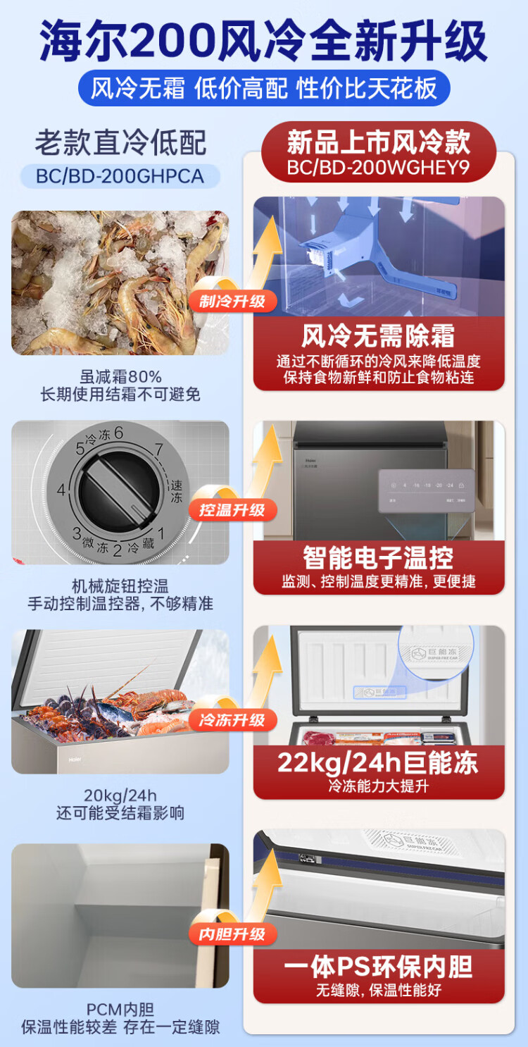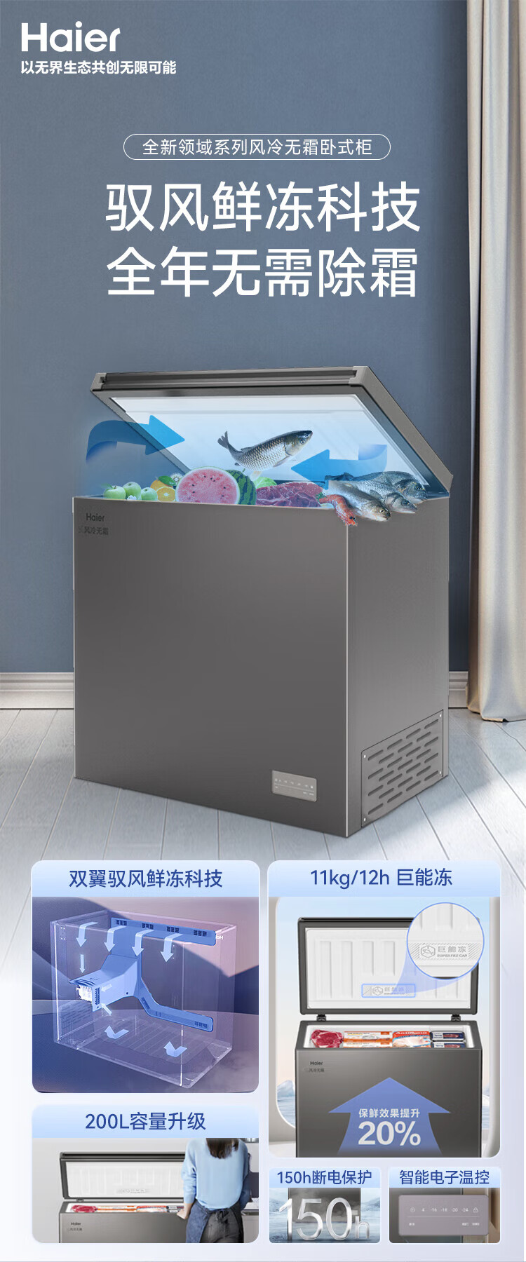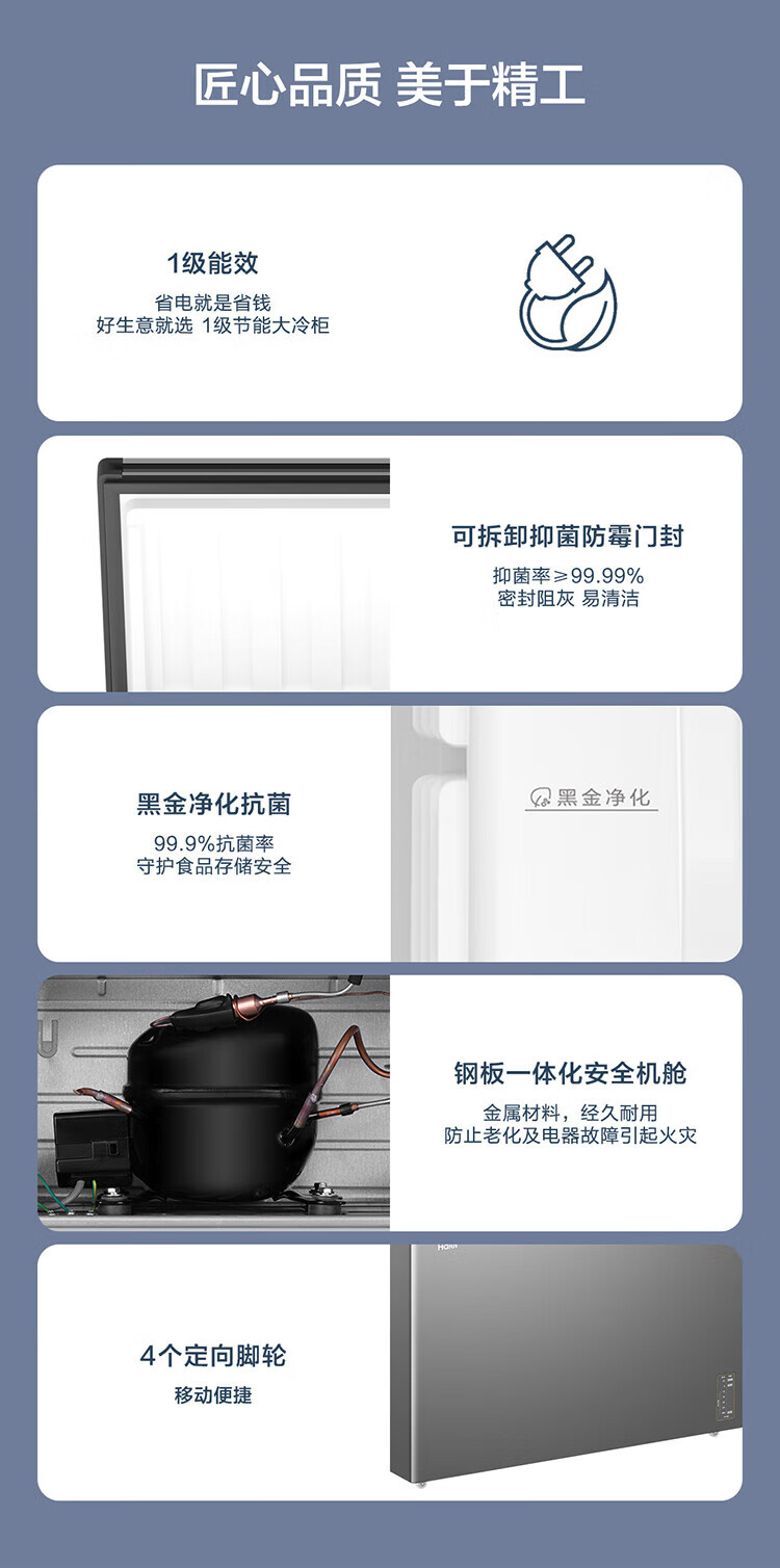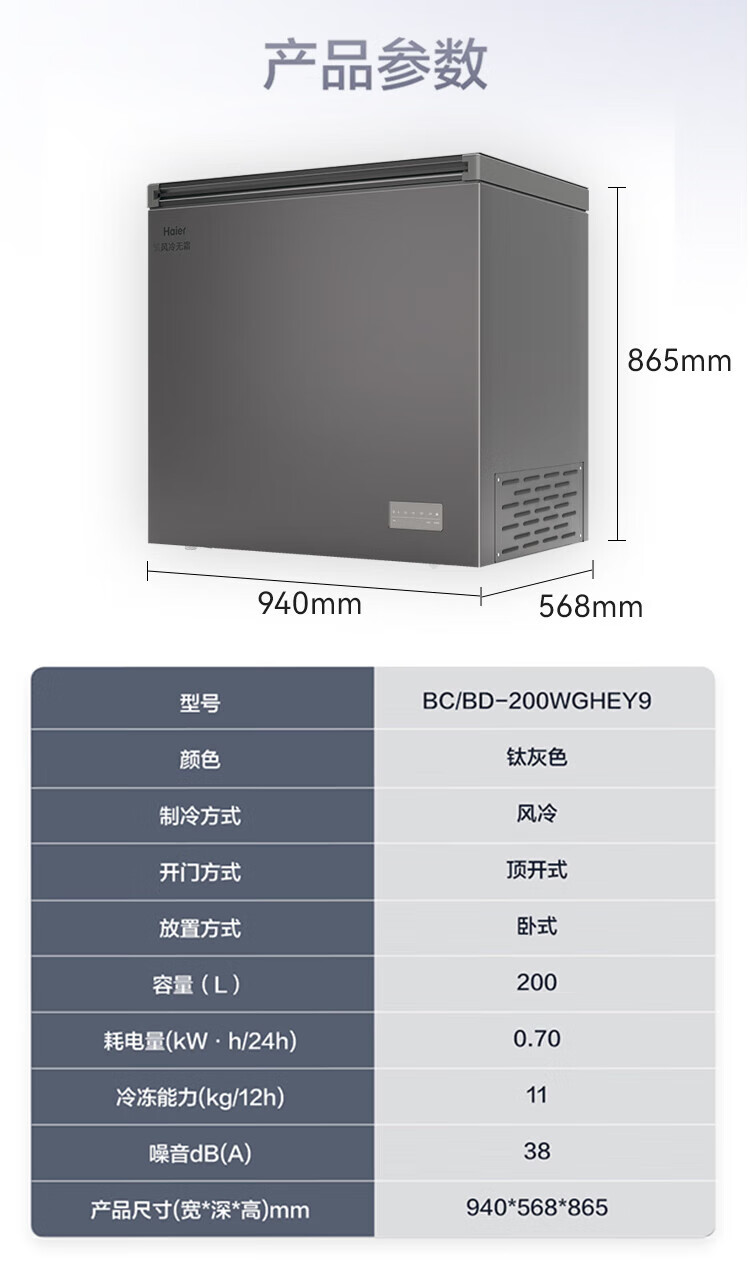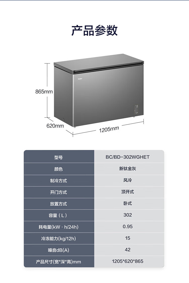 Haier air-cooled frost-free freezer 159/201/242/302L household freezer horizontal freezer deep-freezing quick-freezing refrigeration and freezing convertible no need for defrost bacteriostatic first-level energy efficiency and energy saving milk 132 liters air-cooled frost-free 150h power-off protection electronic temperature regulation