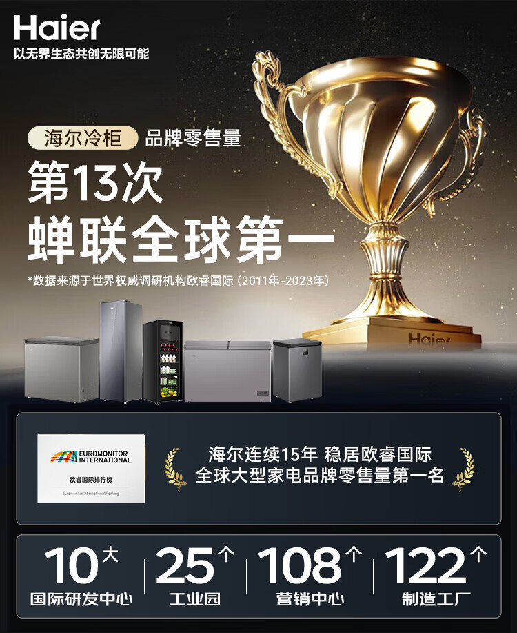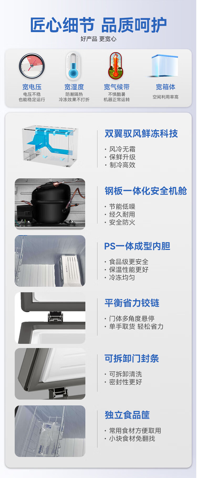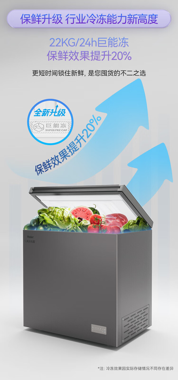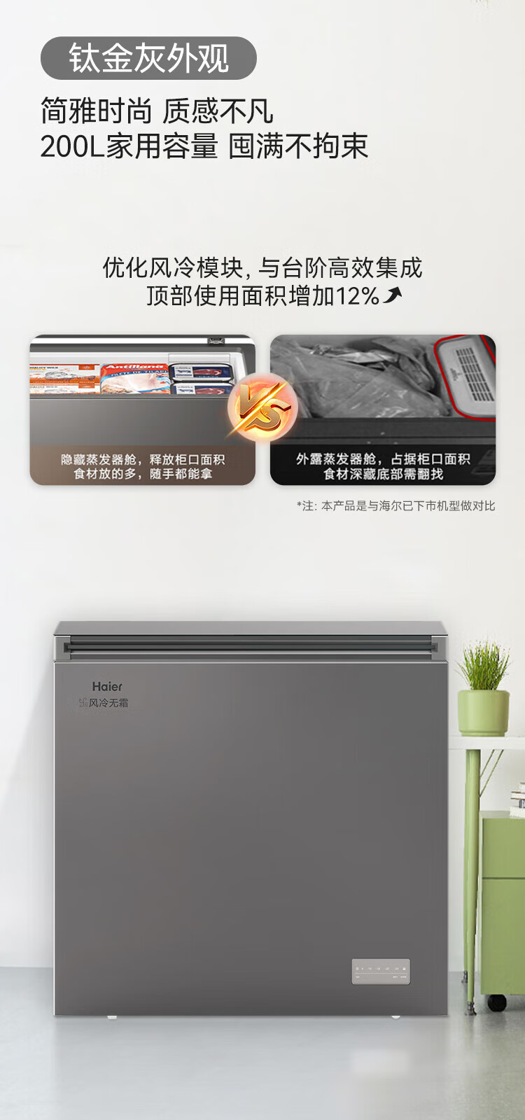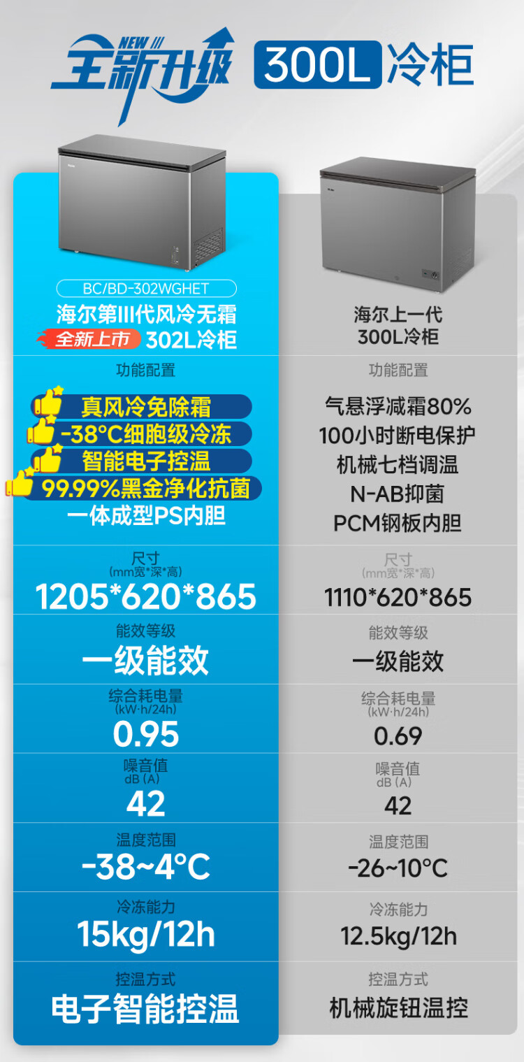 Haier air-cooled frost-free freezer 159/201/242/302L household freezer horizontal freezer deep-freezing quick-freezing refrigeration and freezing convertible no need for defrost bacteriostatic first-level energy efficiency and energy saving milk 132 liters air-cooled frost-free 150h power-off protection electronic temperature regulation