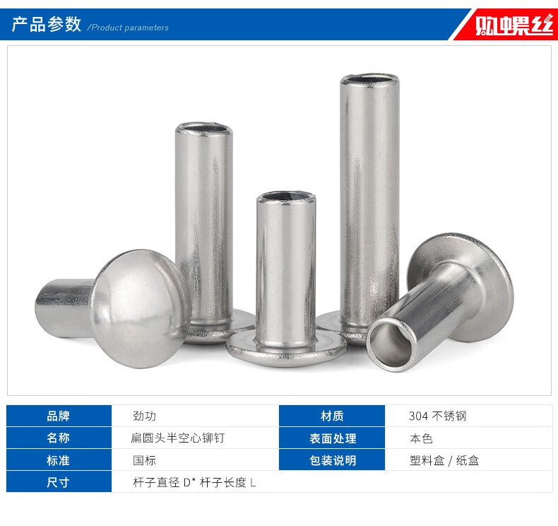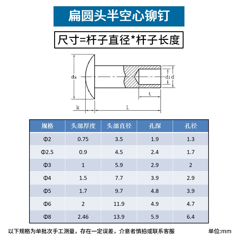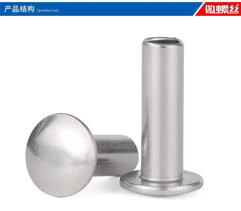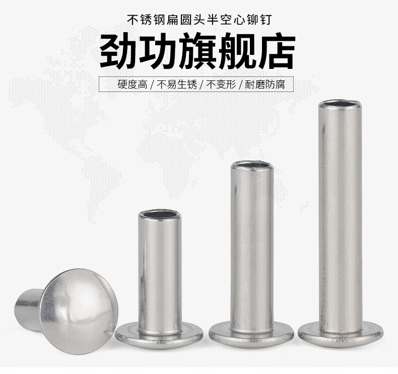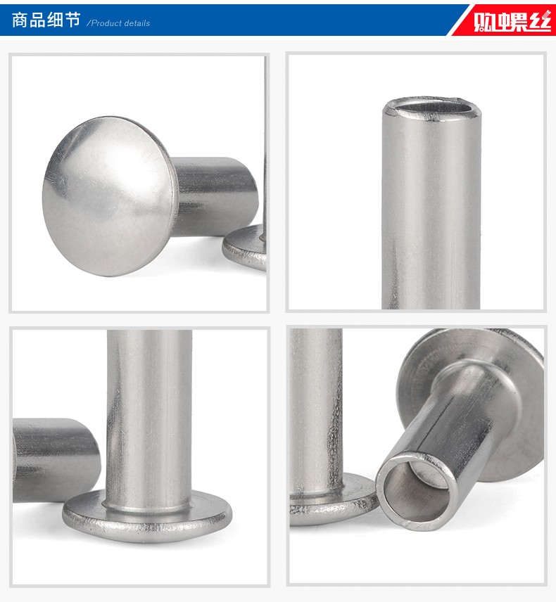 XMSJ304 stainless steel semi-hollow rivets flat round head hollow rivets diameter 2mm 50 pieces pole length 13mm