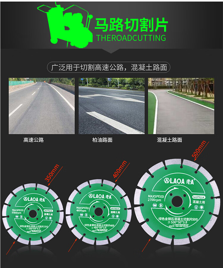 LAOA diamond cutting sheet tile marble sheet angle grinder cutting machine wall slot vitrified brick diamond steel saw blade road cutting sheet 500*50mm