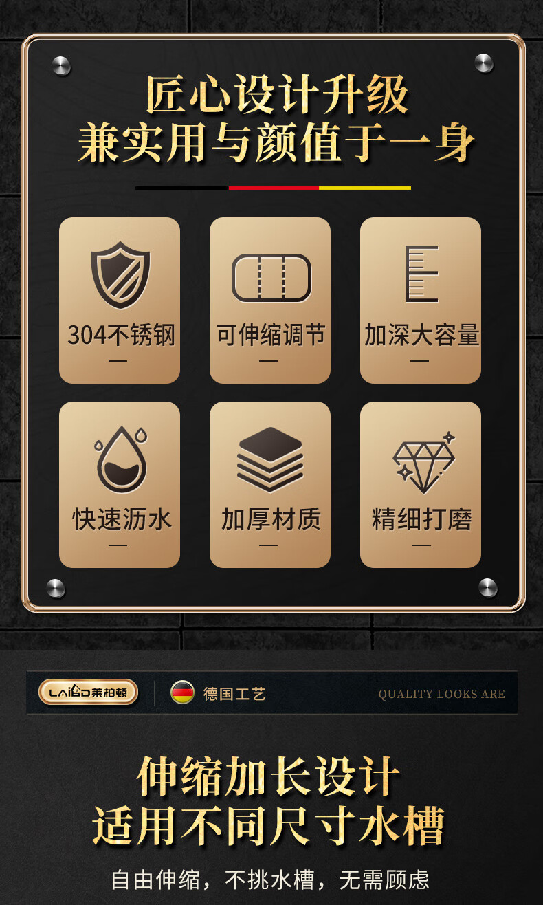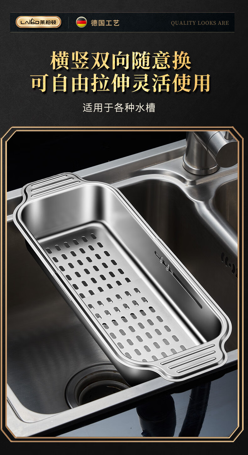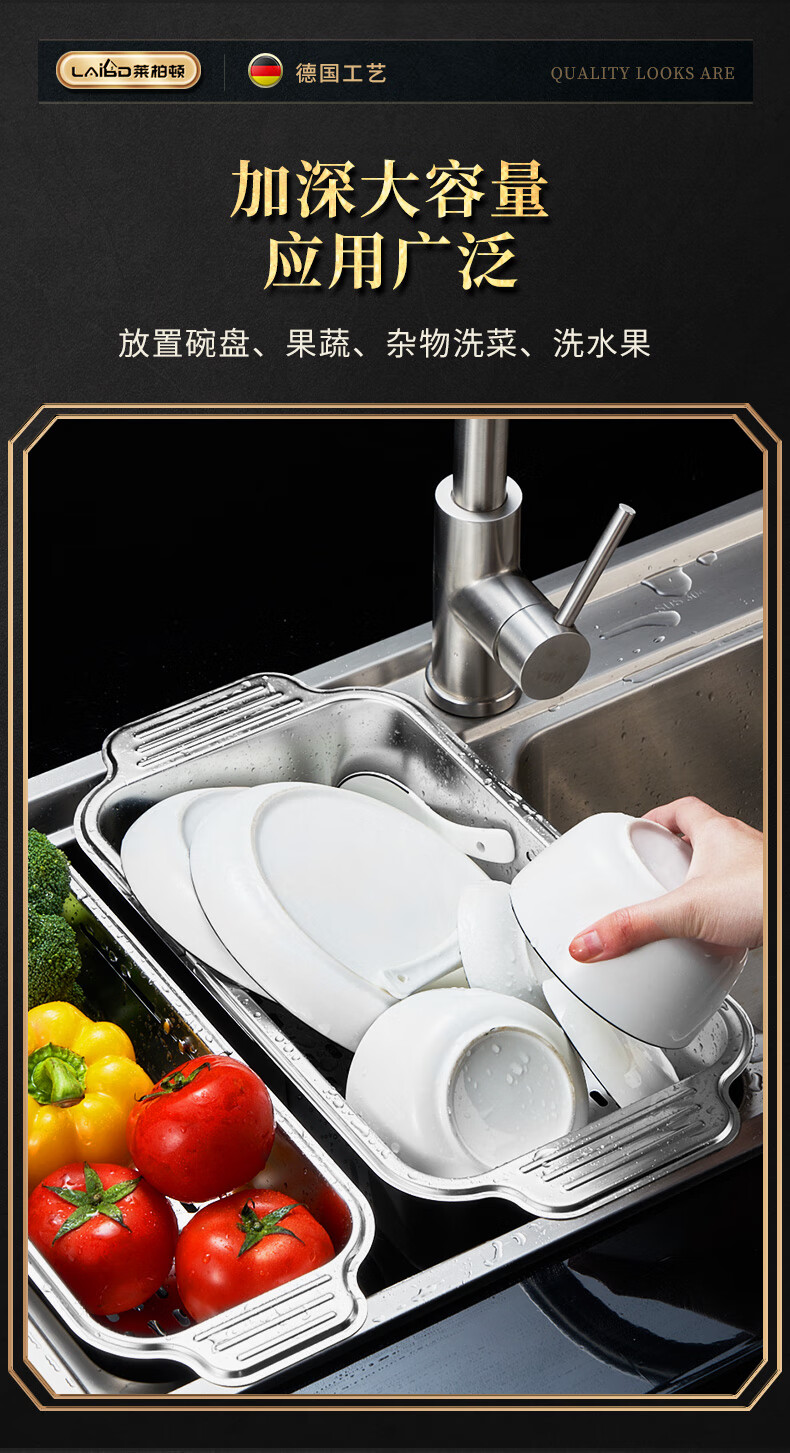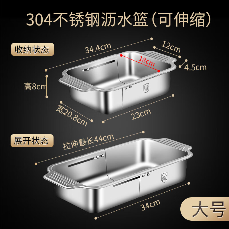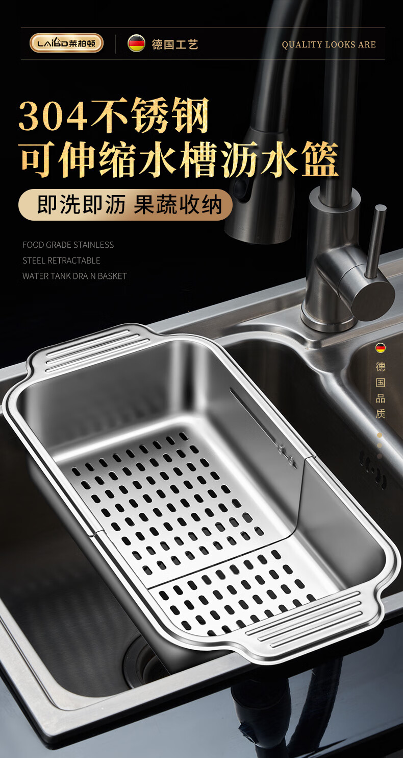 Laberton 304 stainless steel drain basket retractable kitchen sink pool filter basket dish and dish storage rack drain rack small telescopic model 304 stainless steel 1 piece