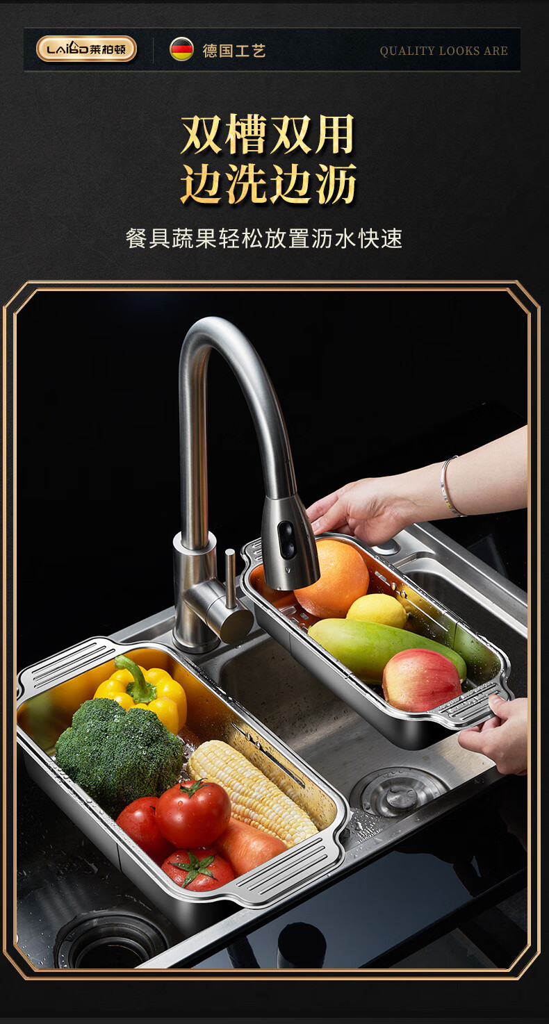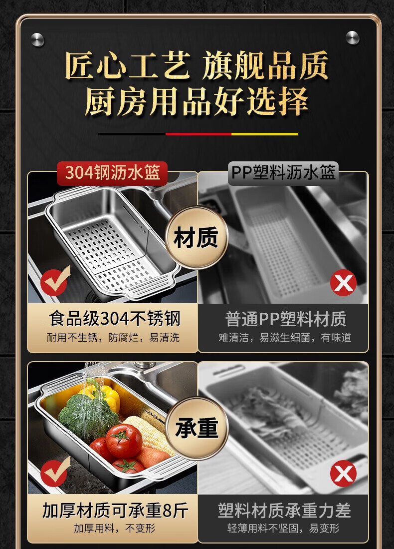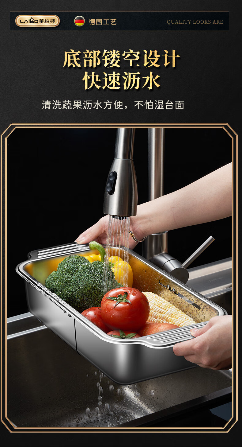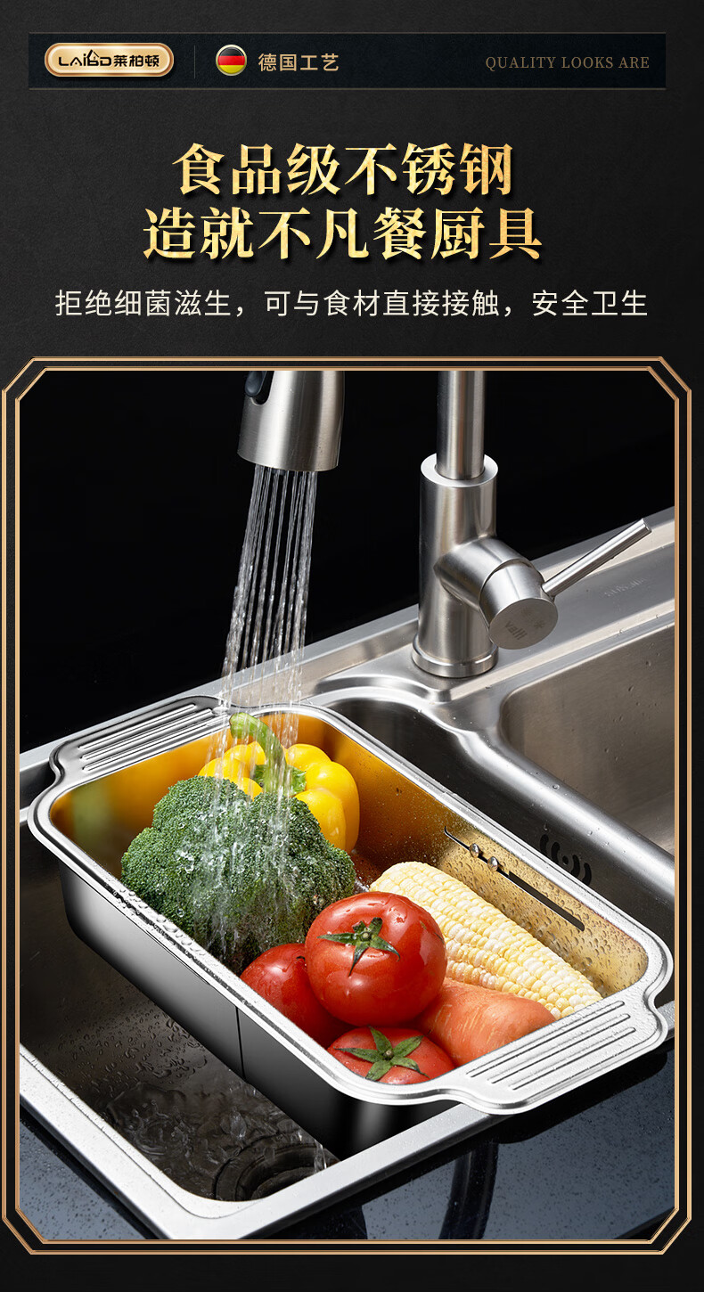 Laberton 304 stainless steel drain basket retractable kitchen sink pool filter basket dish and dish storage rack drain rack small telescopic model 304 stainless steel 1 piece