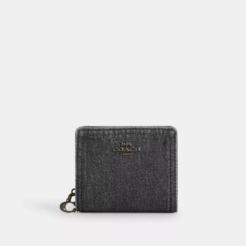 COACH Women's Mini Wallet Multi-Card Slots with ID Window Bill Slot Snap Button Closure Denim Blue Metal Buckle Silver/Indigo