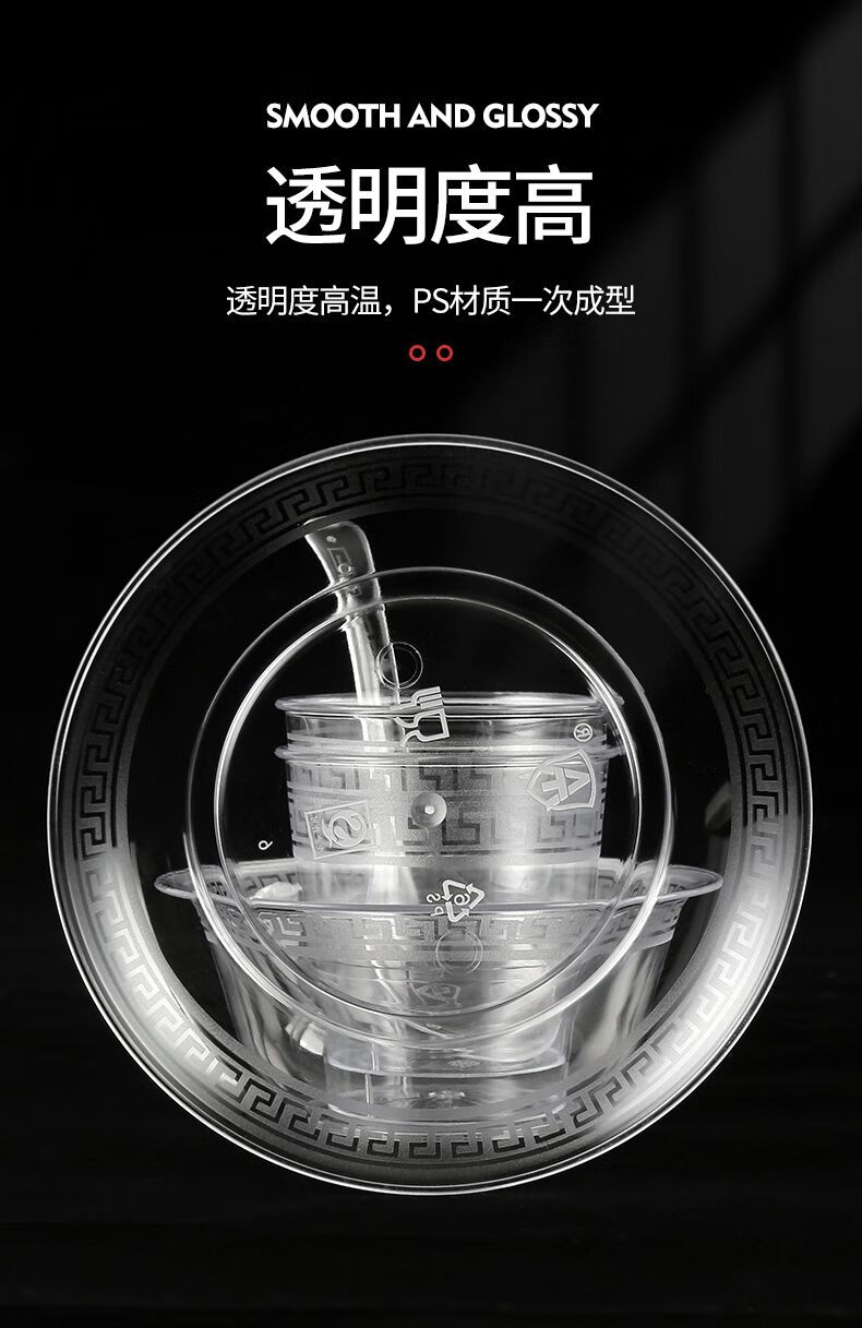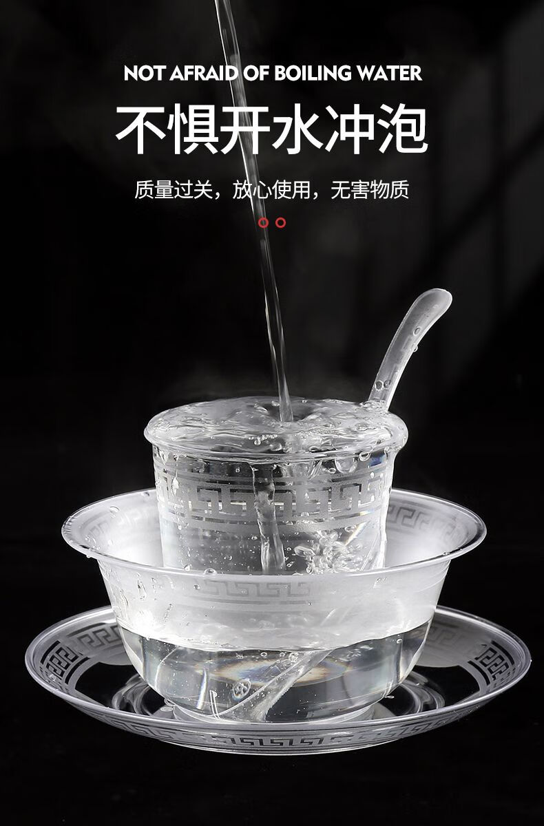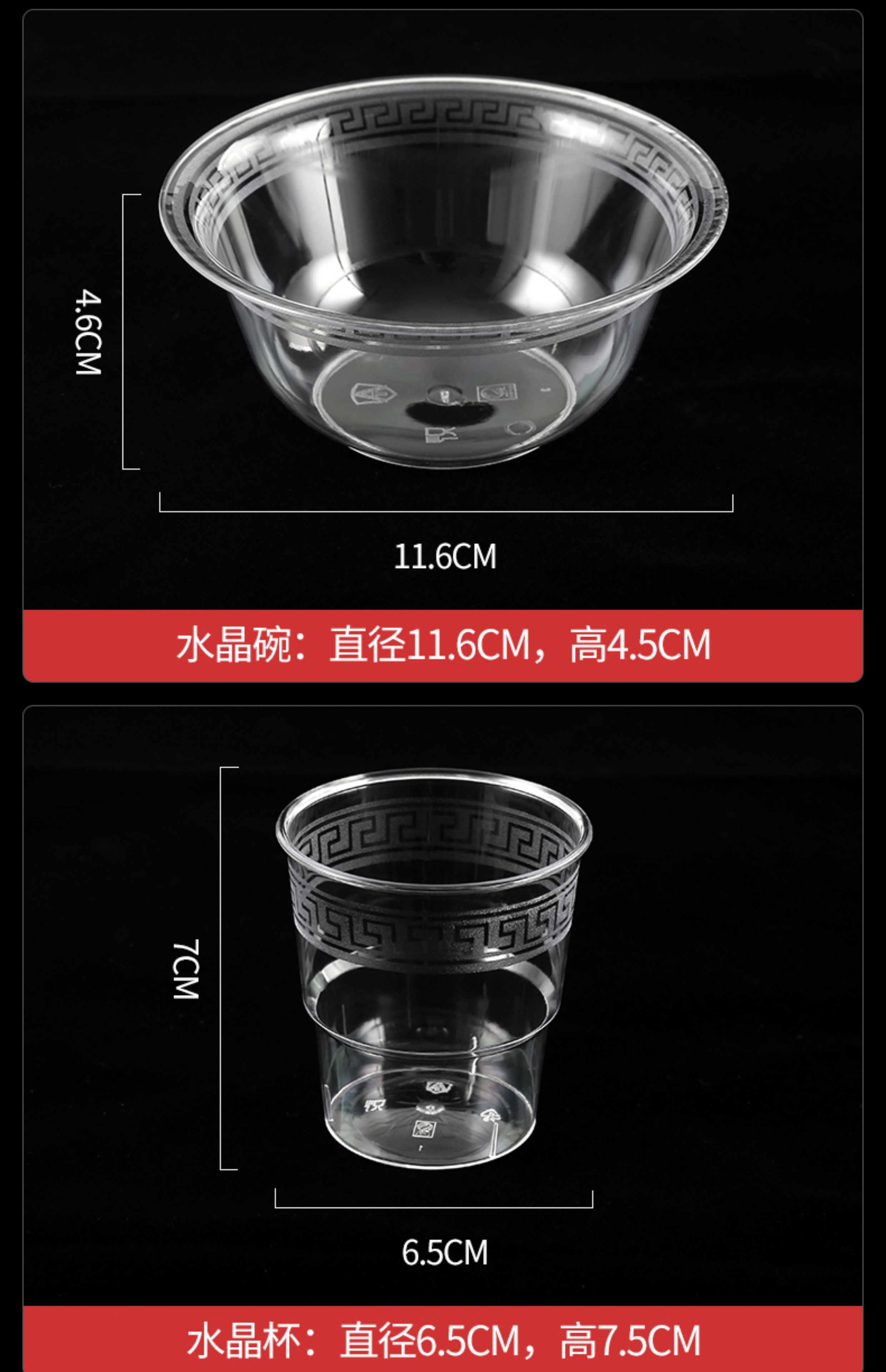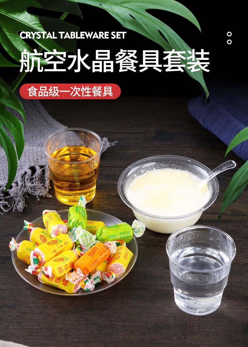 Wing Fantasy disposable aviation crystal tableware four-piece set, bowls and chopsticks set, hotel commercial butterfly cup, plate, three-piece set, high-end, thickened and hardened, bowl + cup + spoon, 50 pieces each, free chopsticks